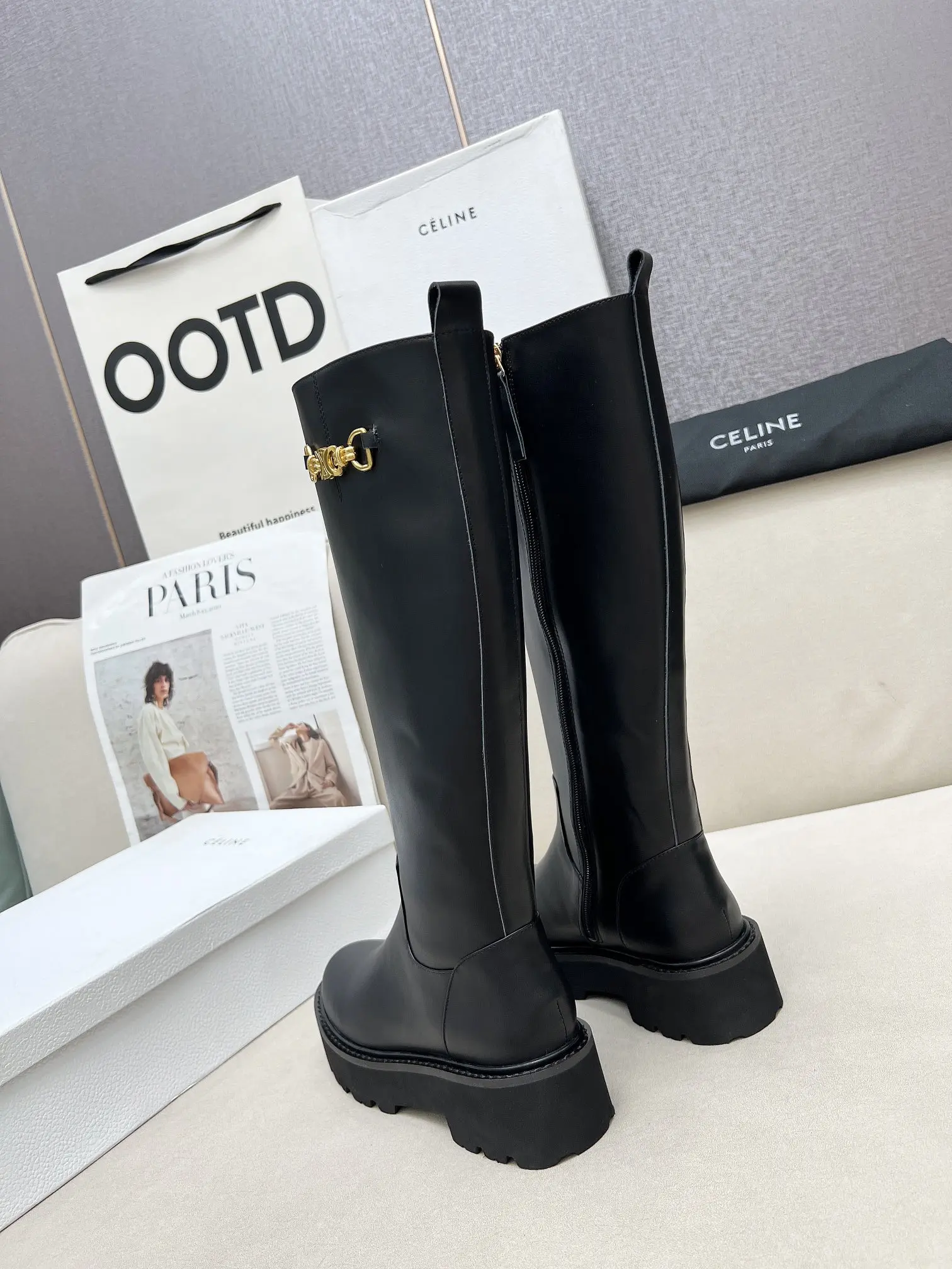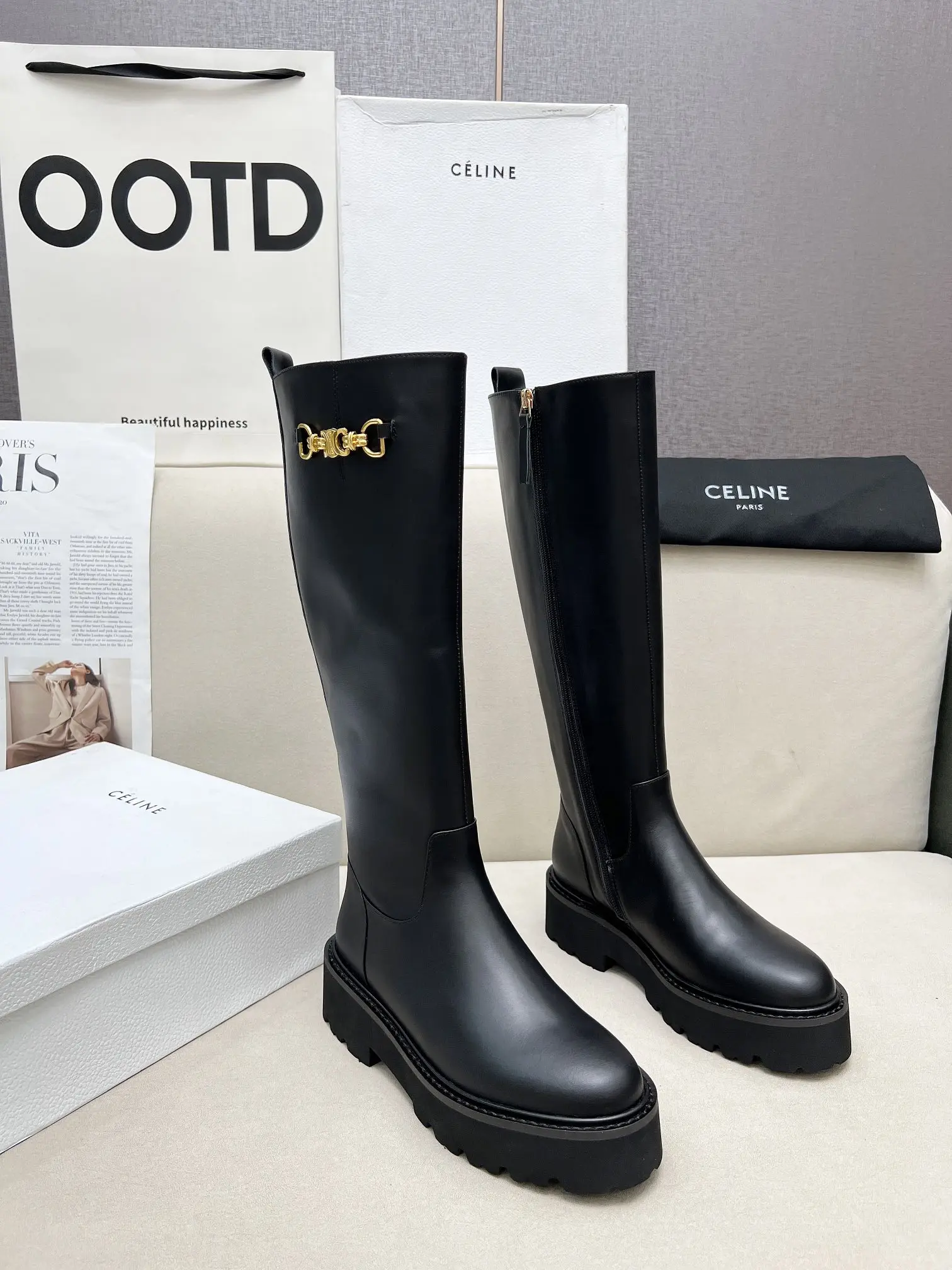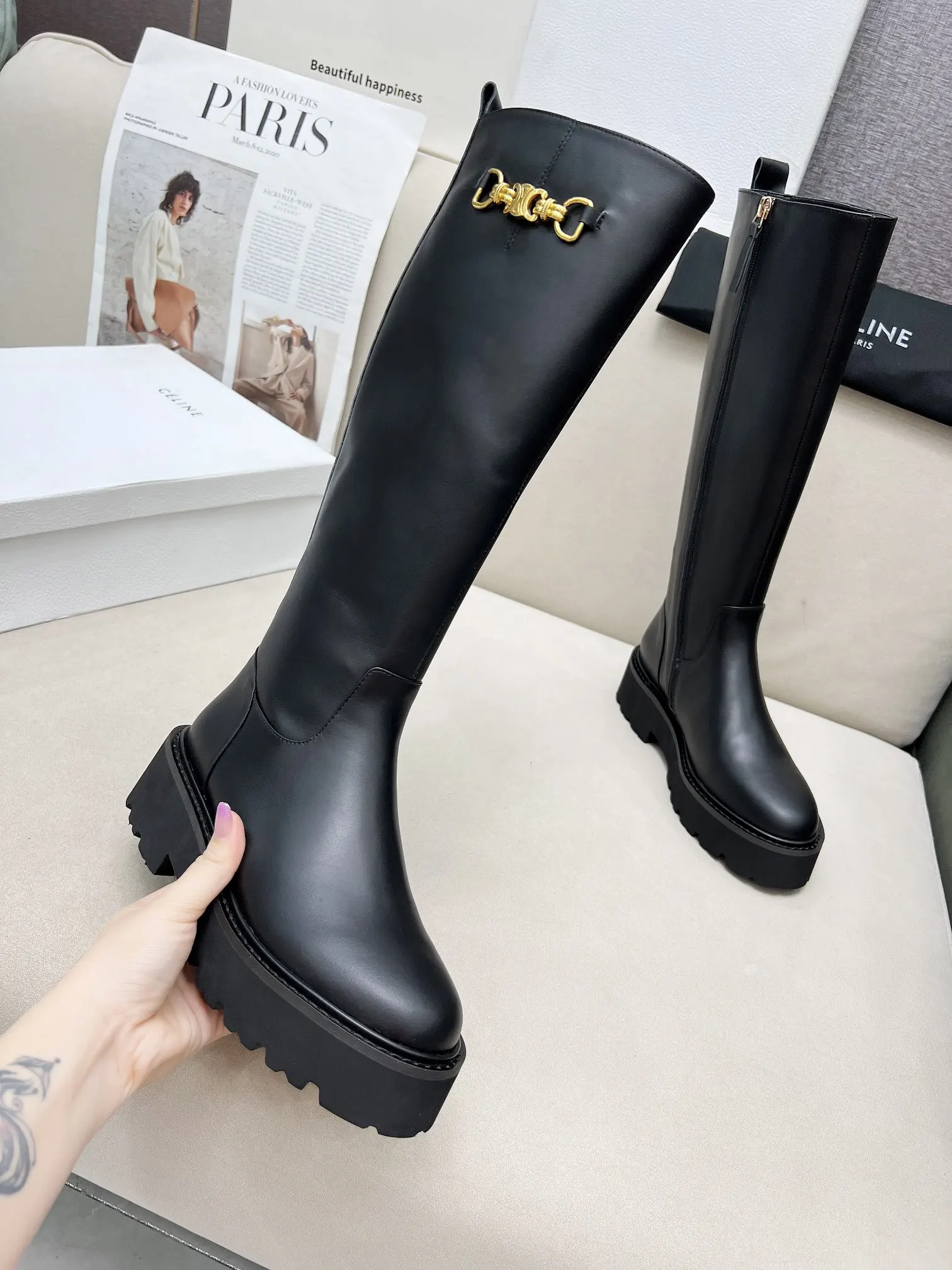 Celine 赛琳2024凯旋门时尚百搭舒适厚底靴 不退色五金扣面料头层牛皮 内里羊 发炮大底 标准码数35/40 41 42订做不退换