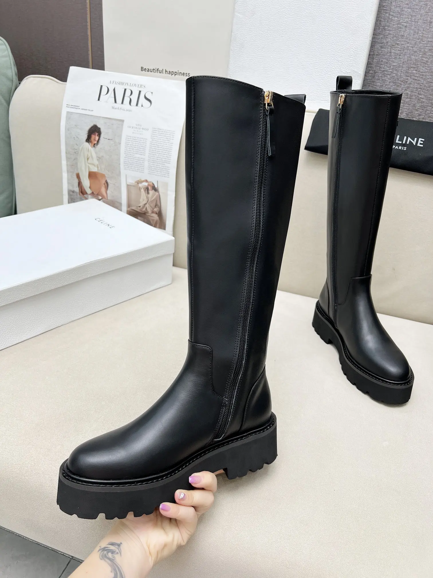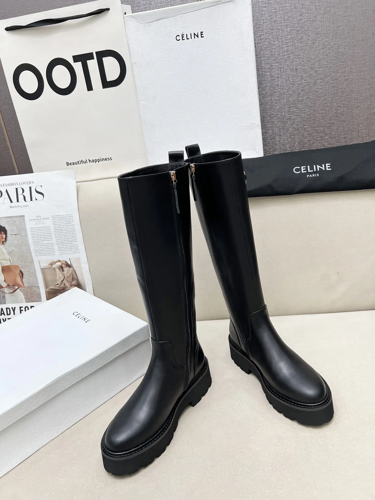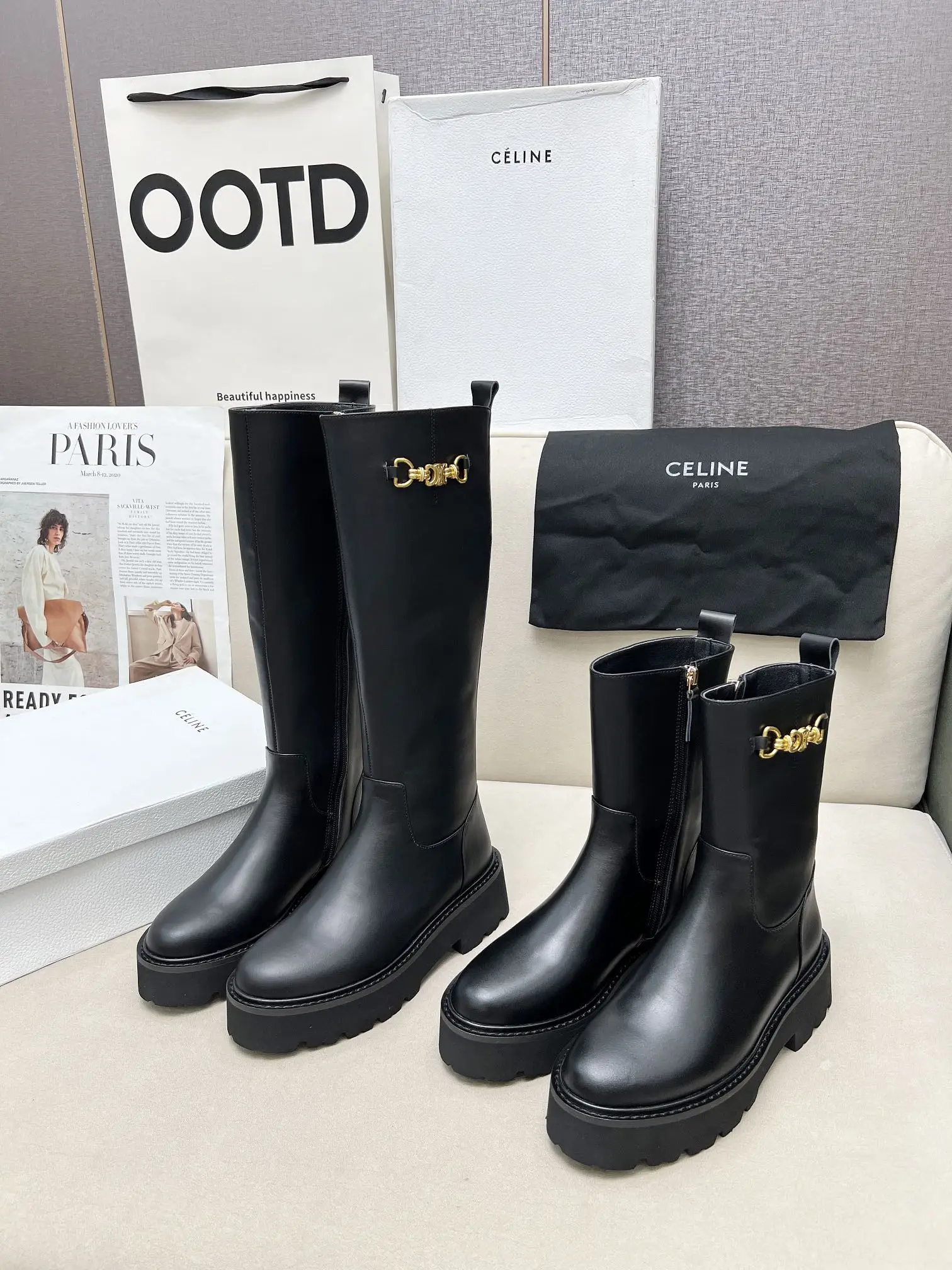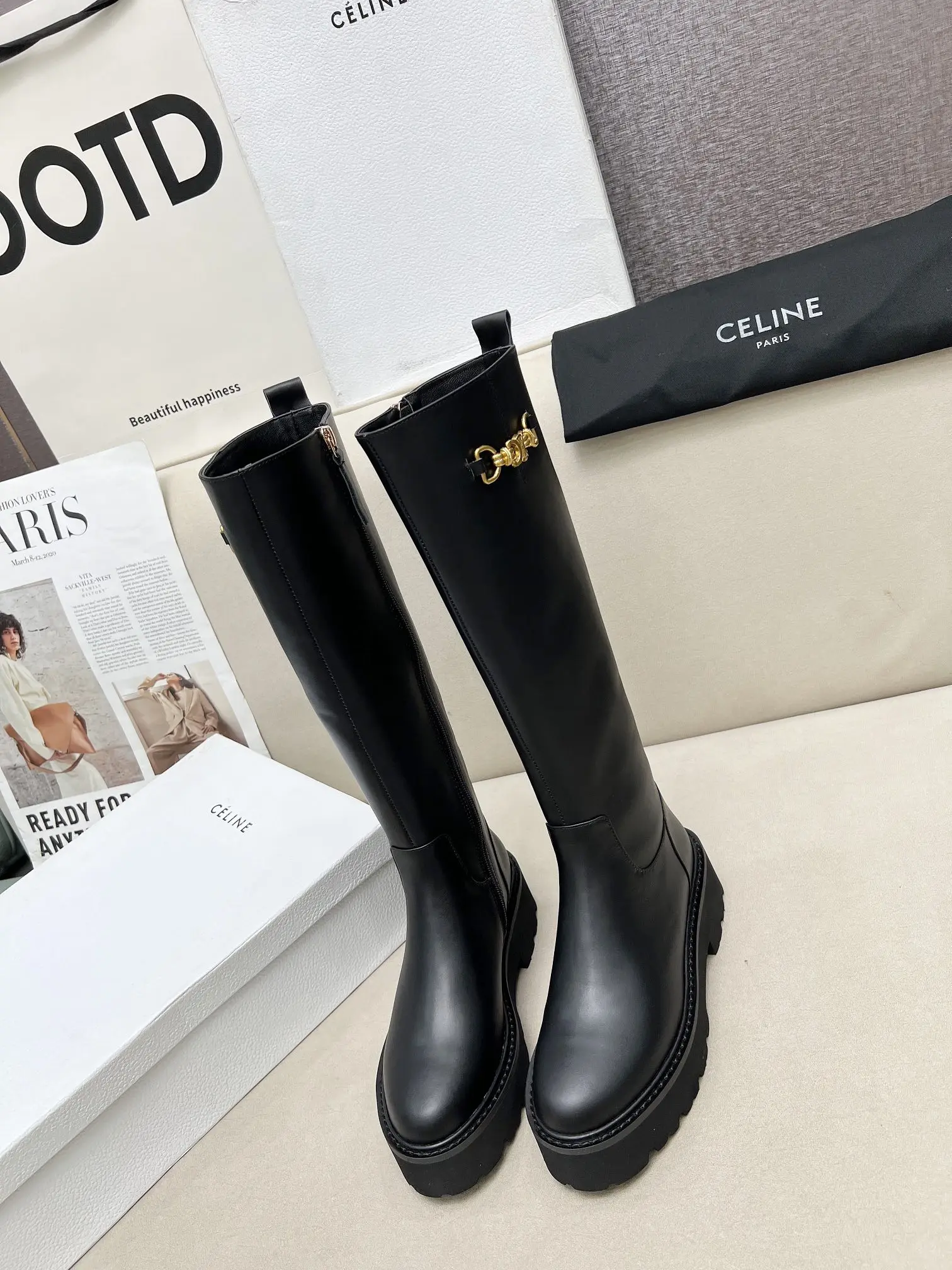 Celine 赛琳2024凯旋门时尚百搭舒适厚底靴 不退色五金扣面料头层牛皮 内里羊 发炮大底 标准码数35/40 41 42订做不退换