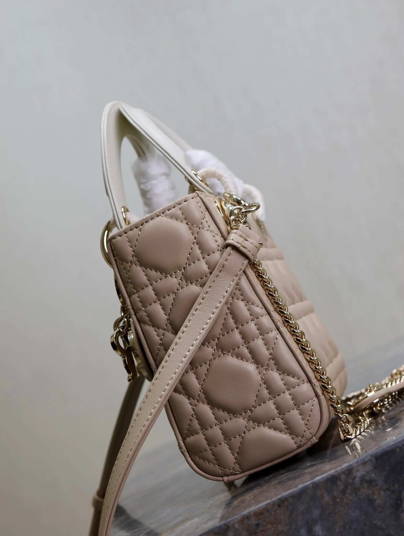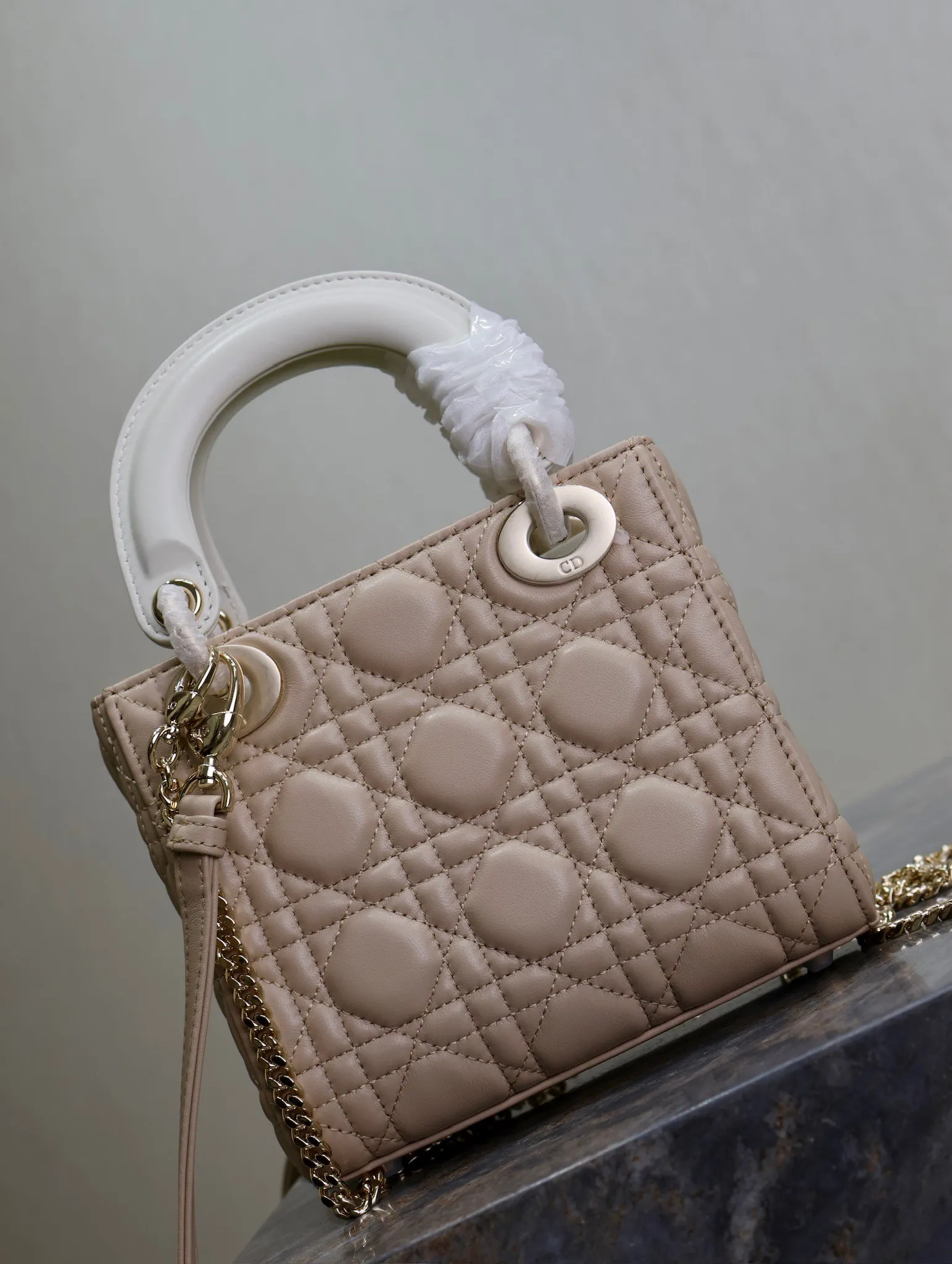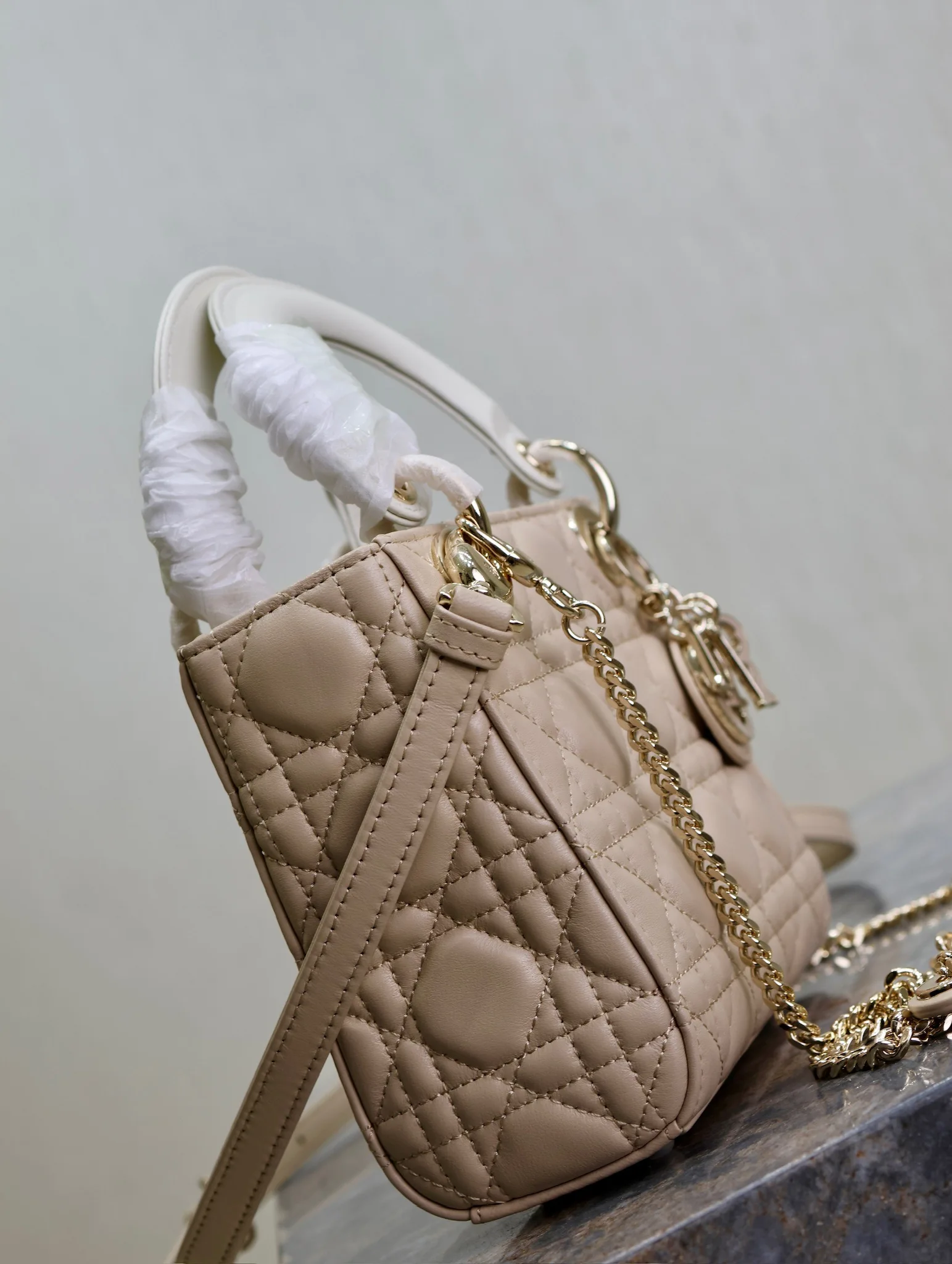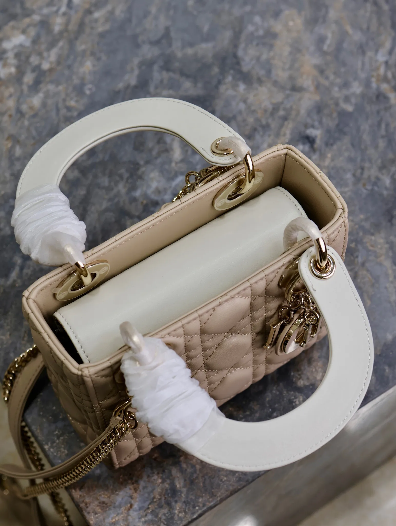 Lady Dio.r 杏拼白色 /三格羊皮双肩带/