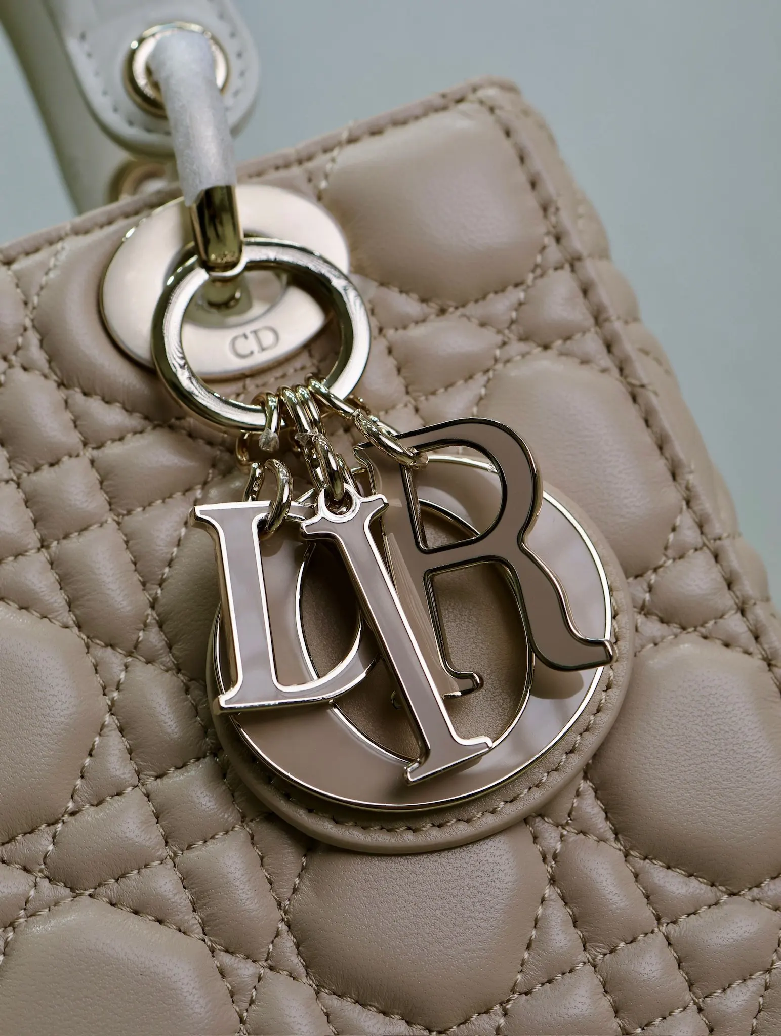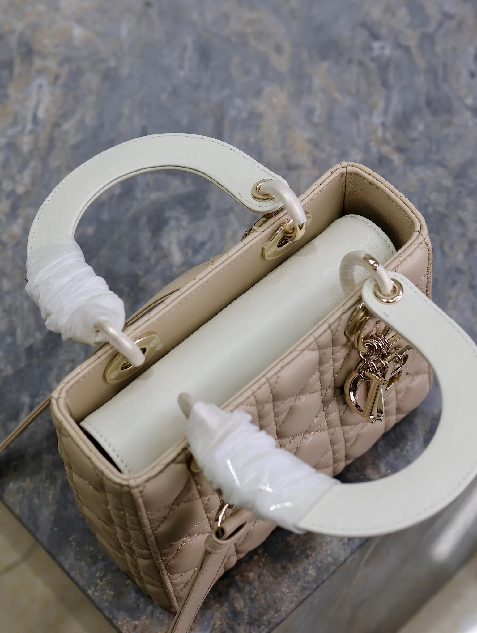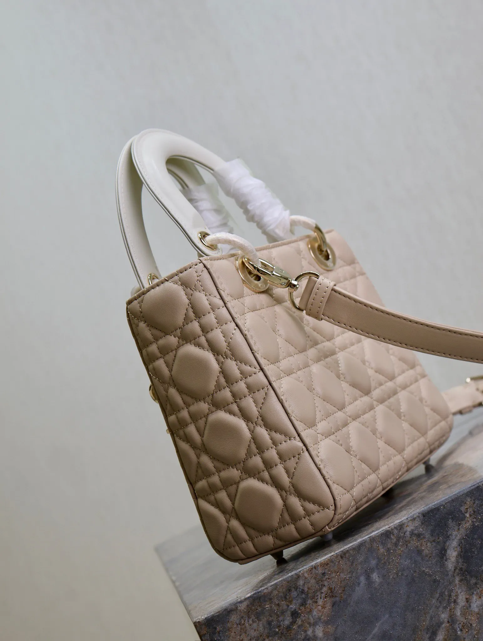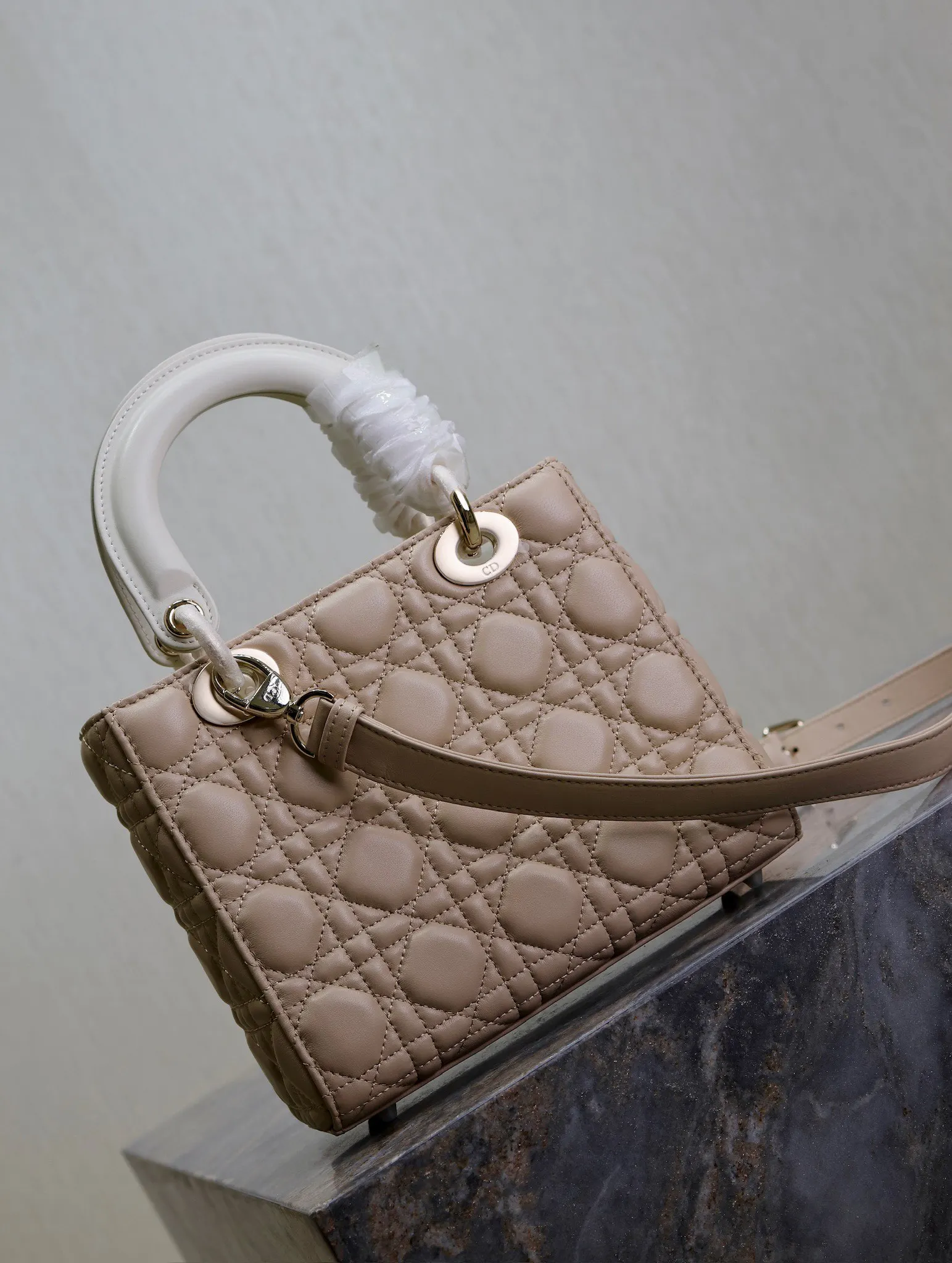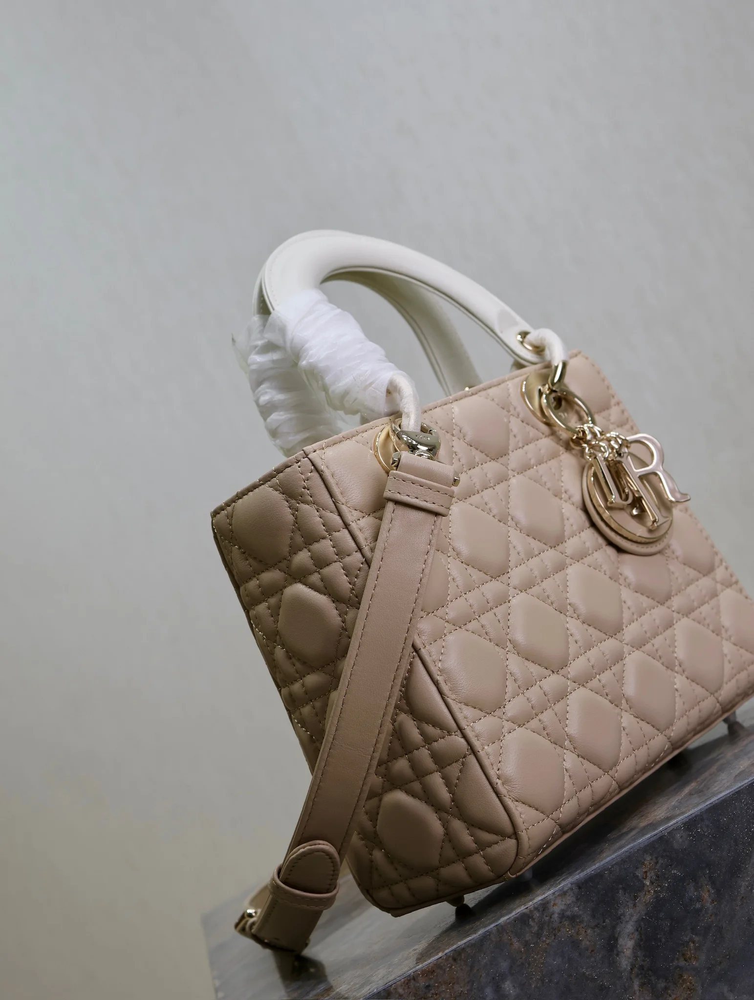 Lady Dio.r 杏拼白色 /四格羊皮调节肩带/