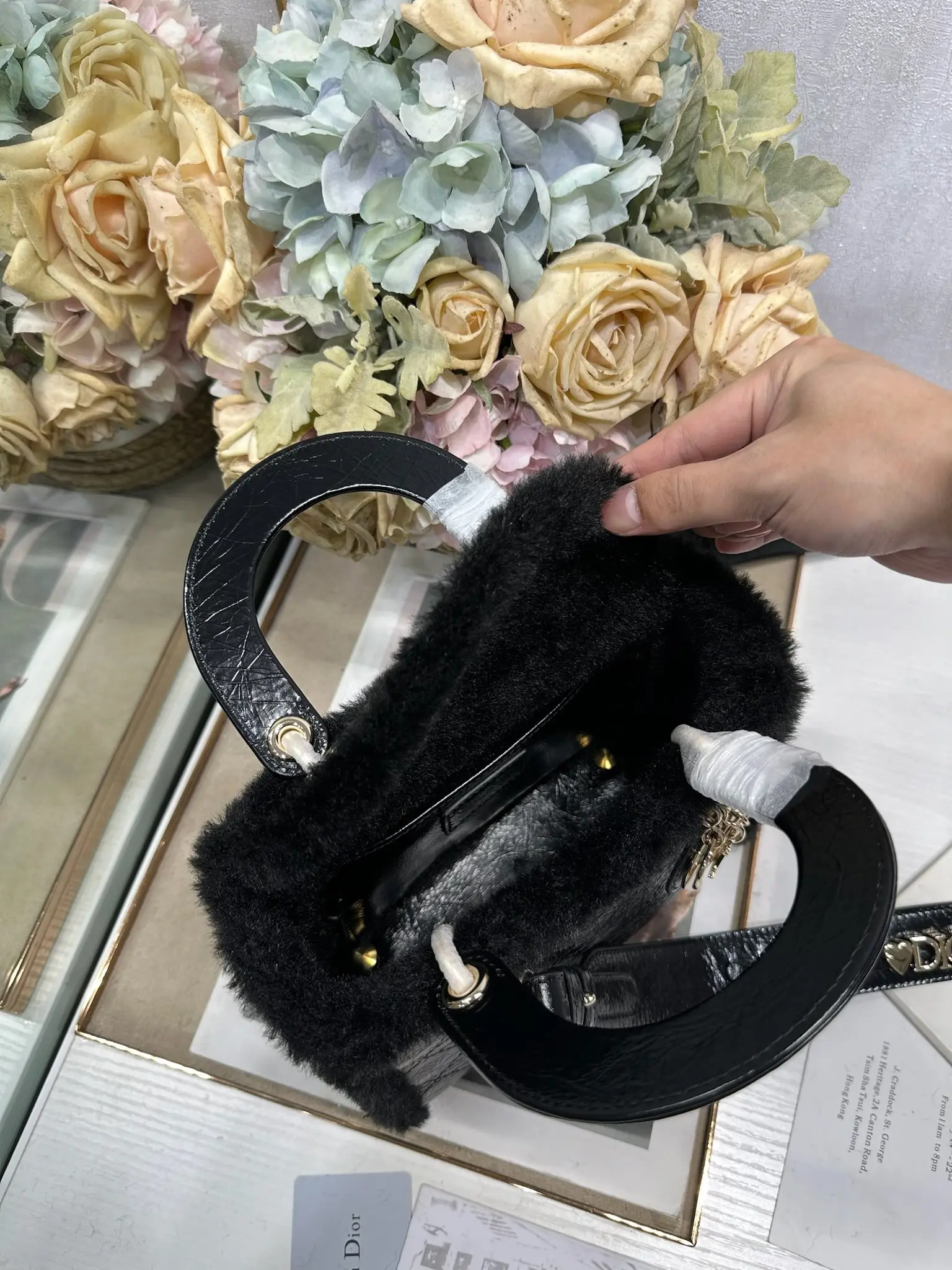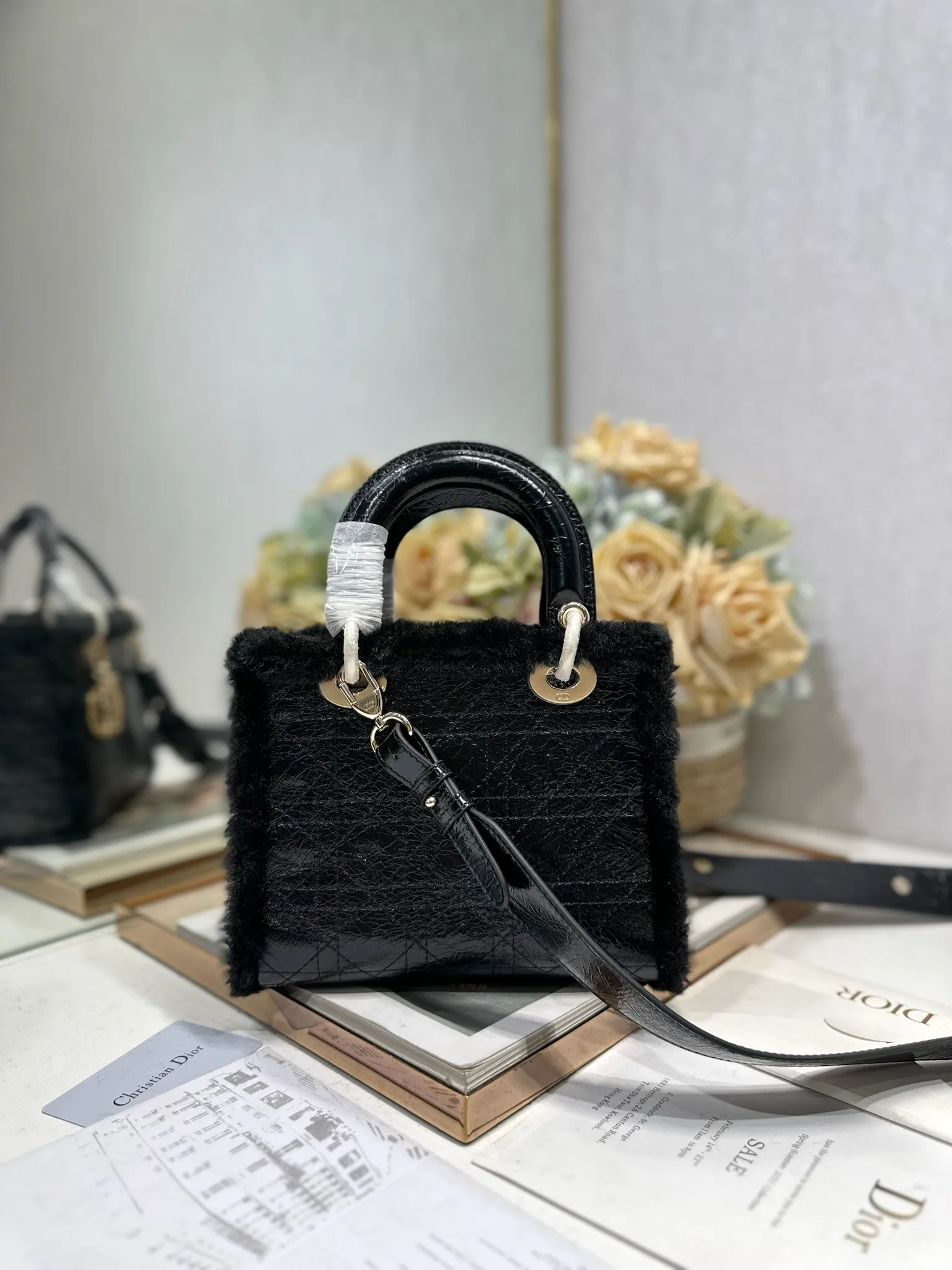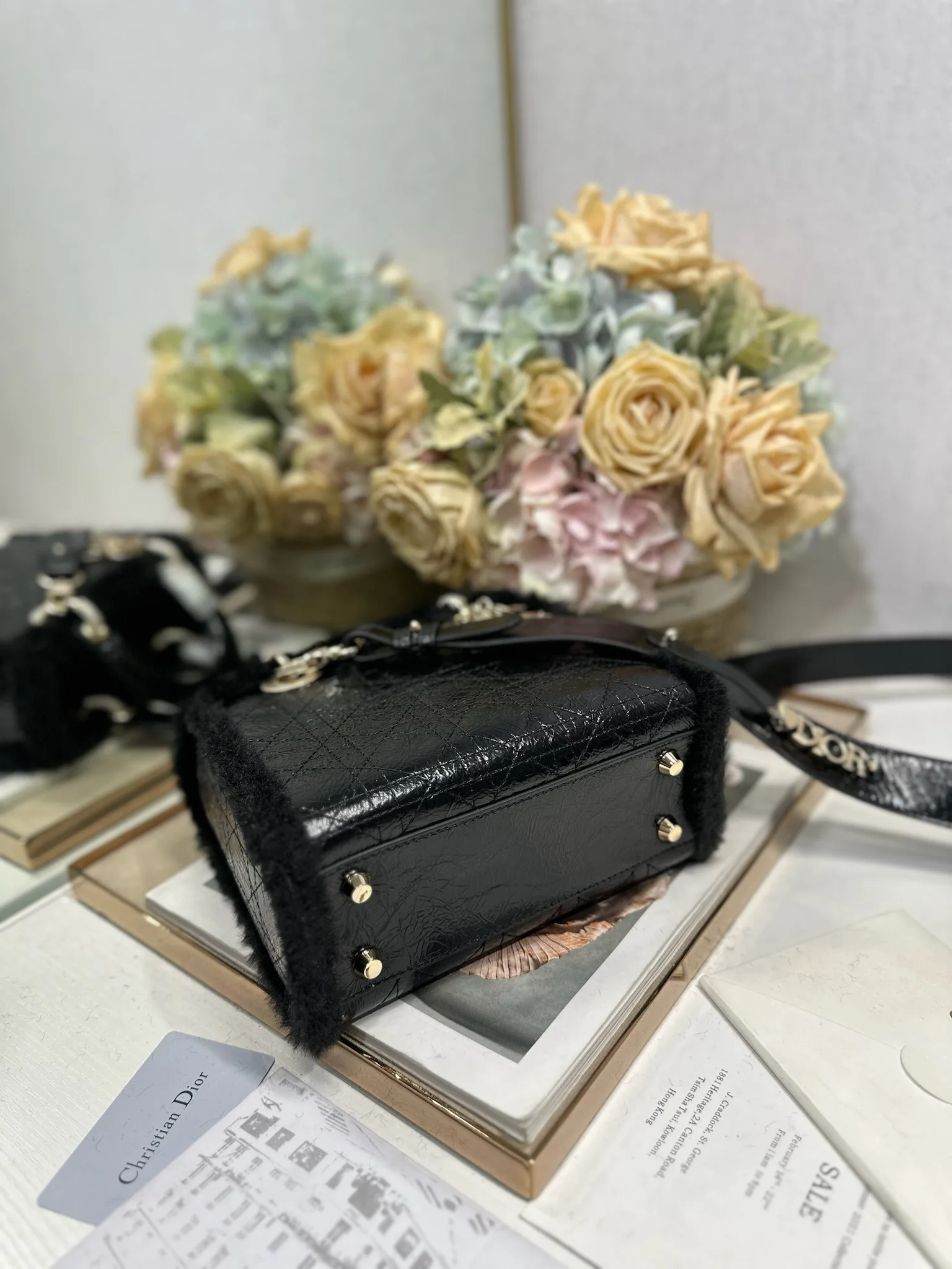 小号Lady D ior戴妃四格手袋 黑拼黑毛 这款 Lady D ior 手袋集中体现了 D ior 对优雅和美丽的深刻洞见 迷你款式 搭配可拆卸的调节肩带 可手提或斜挎 是晚装的理想伴侣 型号 0538