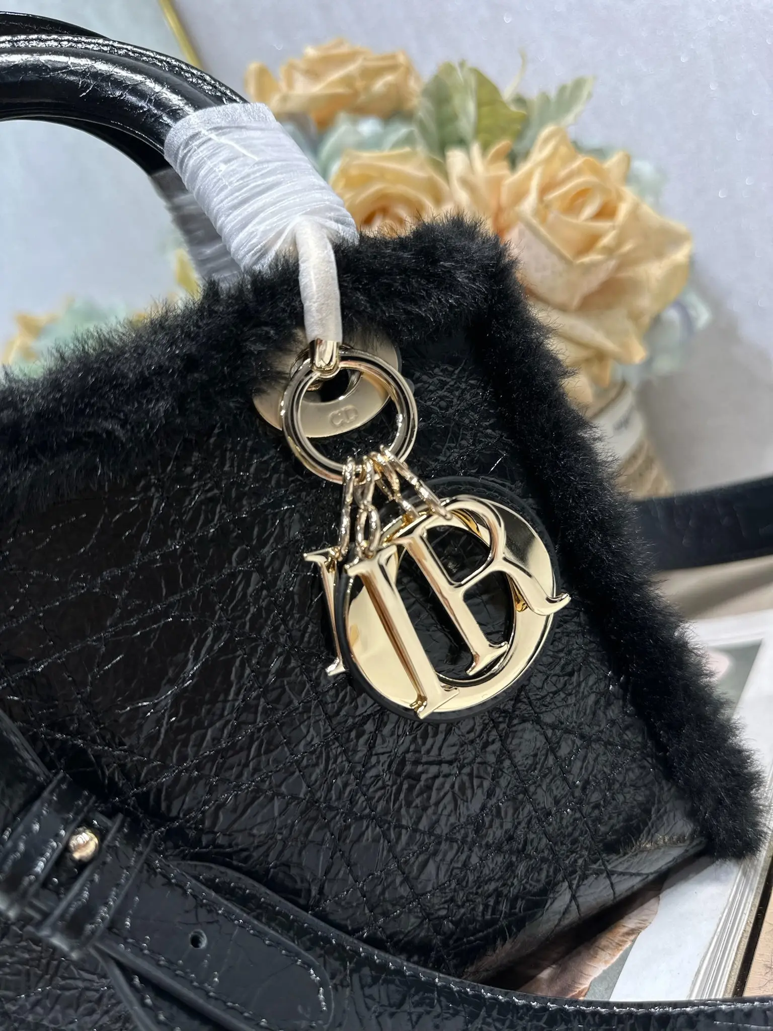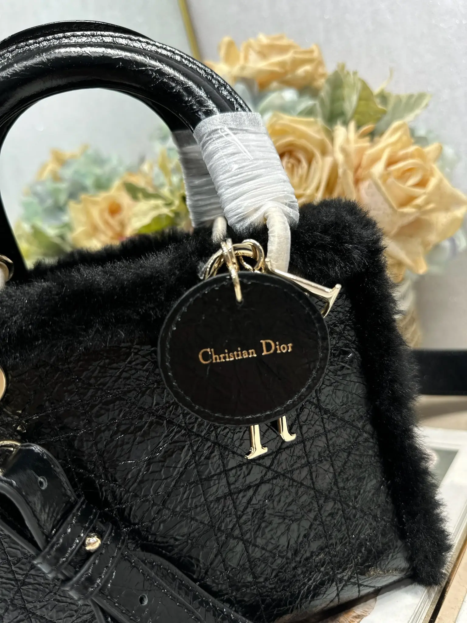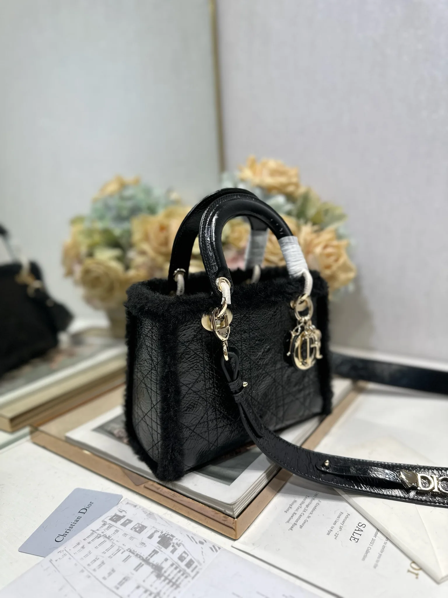 小号Lady D ior戴妃四格手袋 黑拼黑毛 这款 Lady D ior 手袋集中体现了 D ior 对优雅和美丽的深刻洞见 迷你款式 搭配可拆卸的调节肩带 可手提或斜挎 是晚装的理想伴侣 型号 0538