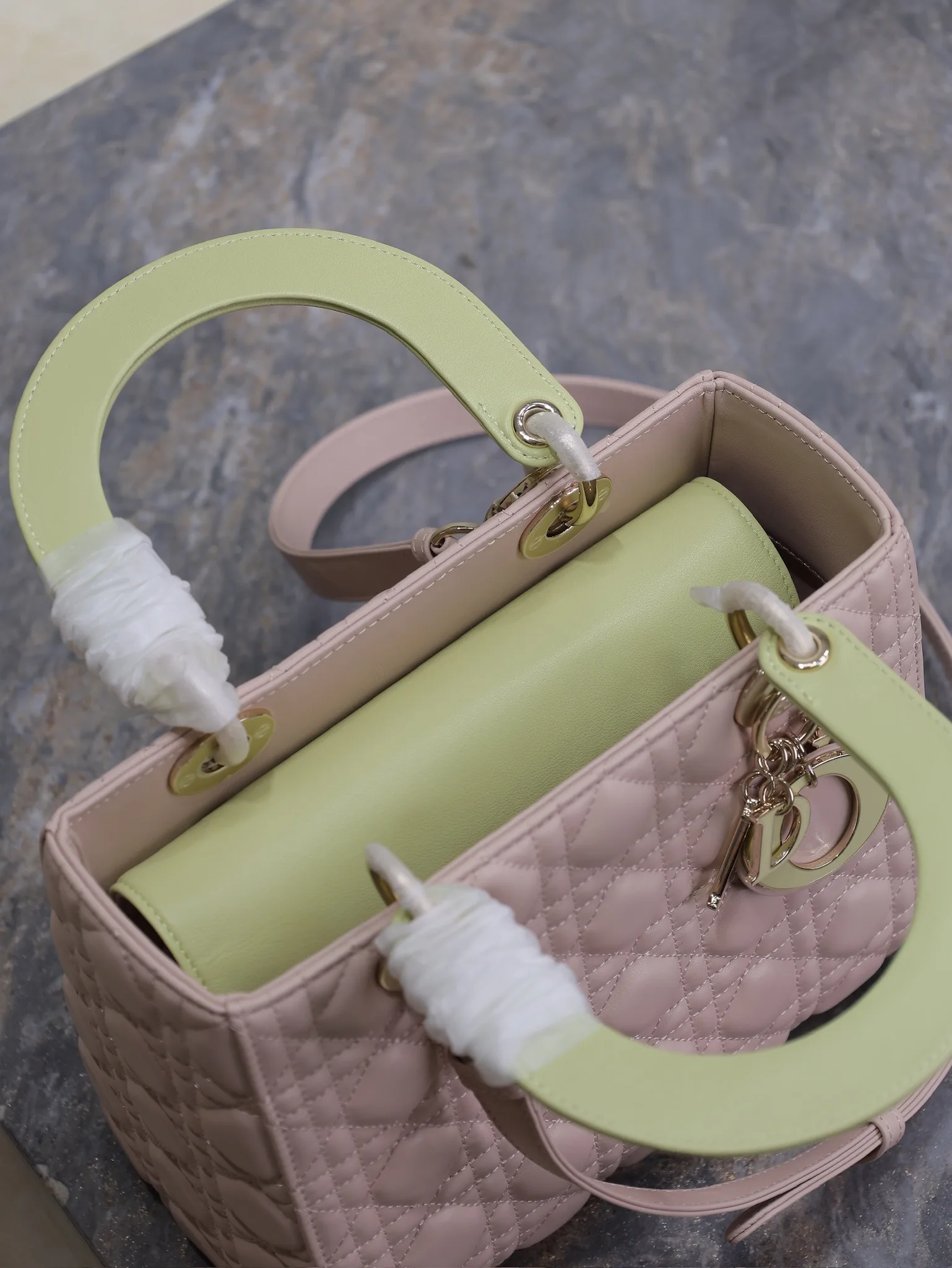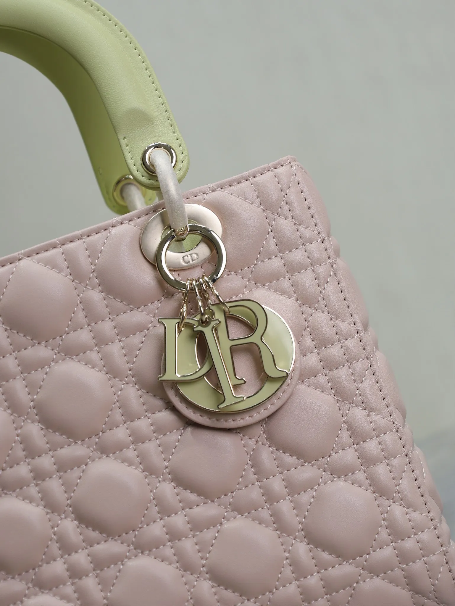 Lady Dio.r 粉拼浅黄 /五格羊皮调节肩带/