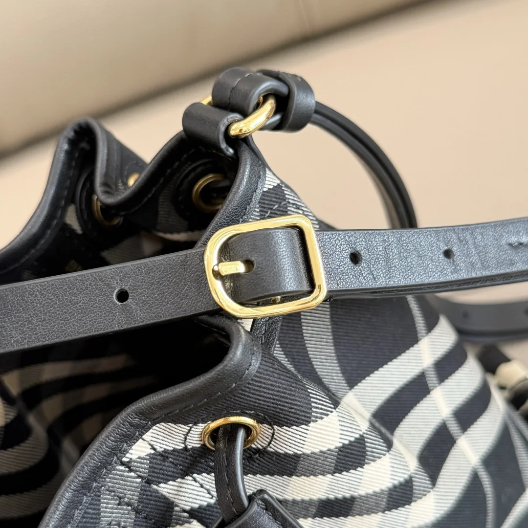 特级 B家最新小桶包 选用棉质斜纹面料打造 采用无内衬设计 质地轻盈 融入光滑小牛皮饰边 搭配可调式肩背帯 随心切換肩背包和斜背包造型 必备款式 尺寸17.5 x 10.5 x 20cm.型号0571