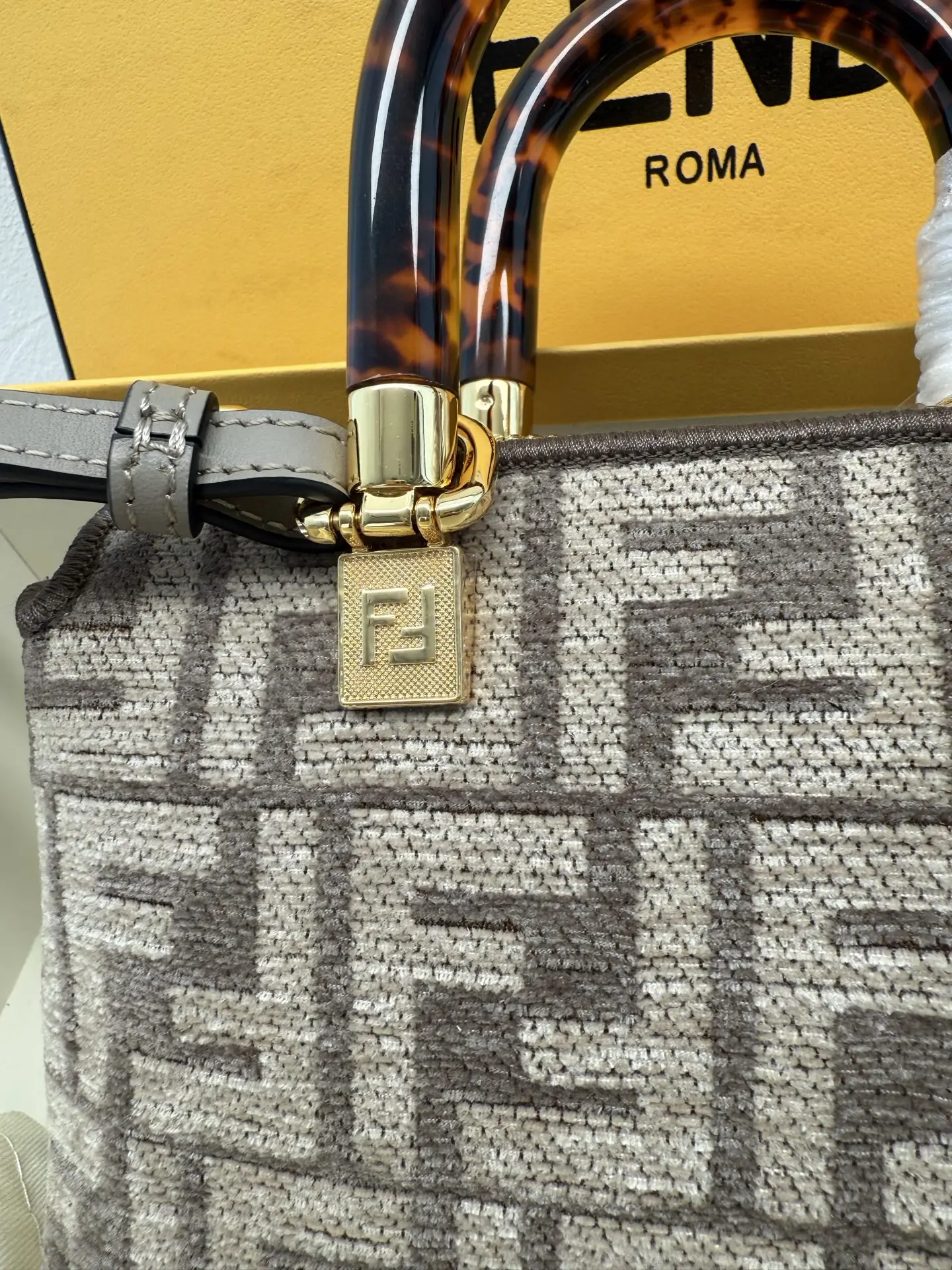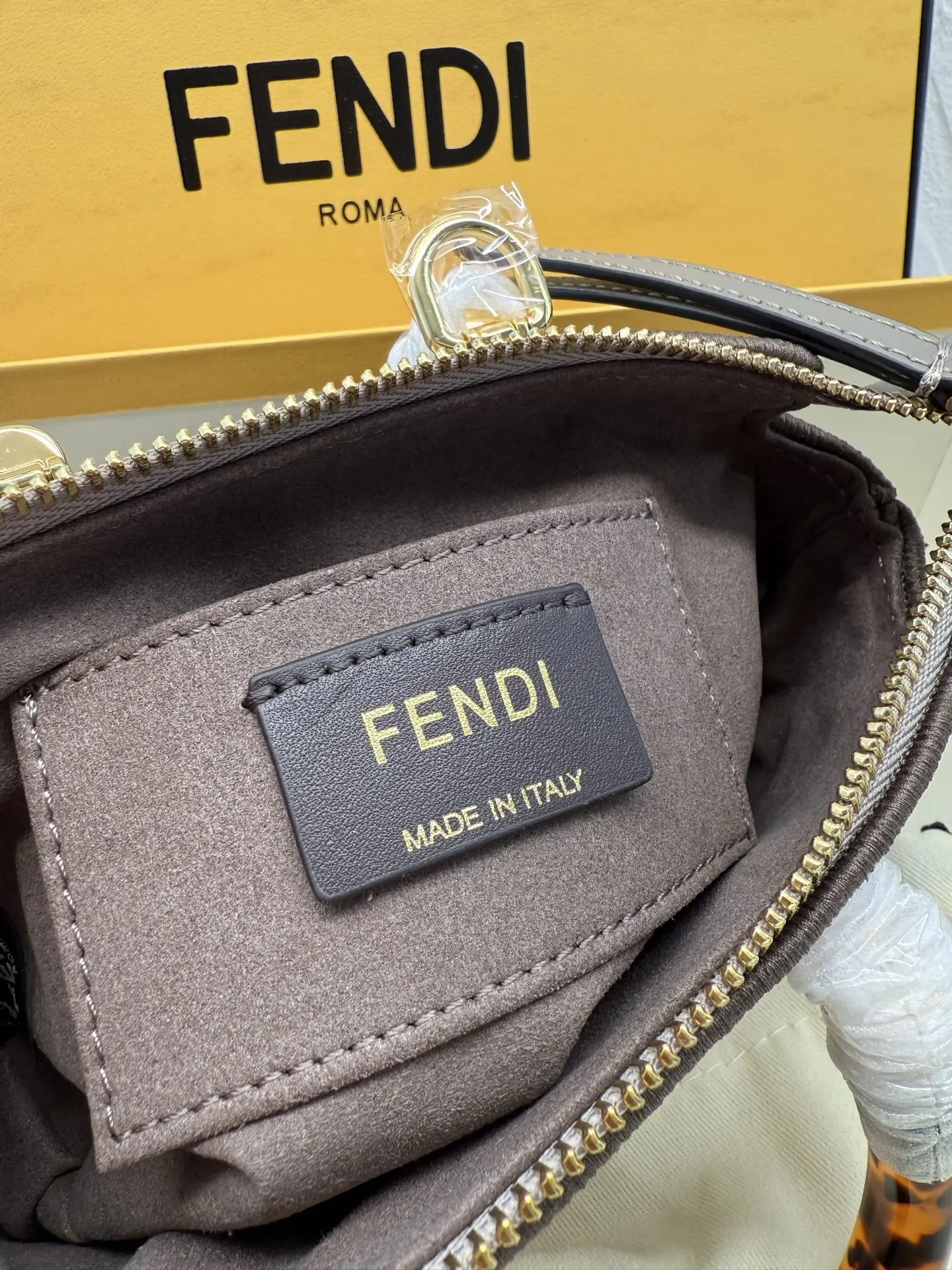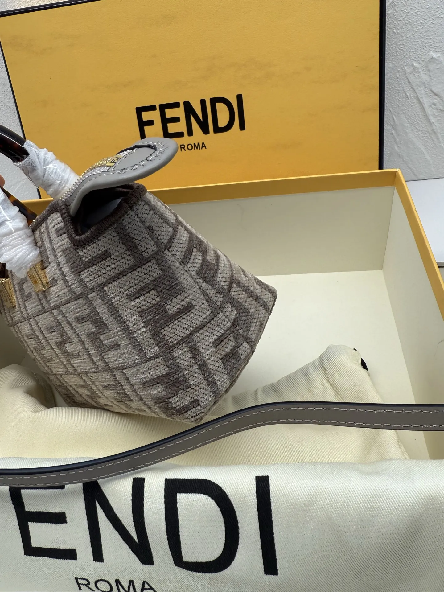 灰绒布小号波士顿手袋lconic By TheWay Boston迷你手袋 灰绒布布材质 饰有同色系FENDIROMA刺绣和硬质有机玻璃提手 呈现瑁效果革拉链 内部配有内衬 口袋和金色金属件 此手袋配有棕L和可调节 可拆卸棕色皮革肩带 可手提 肩背或斜挎9/20.5/12