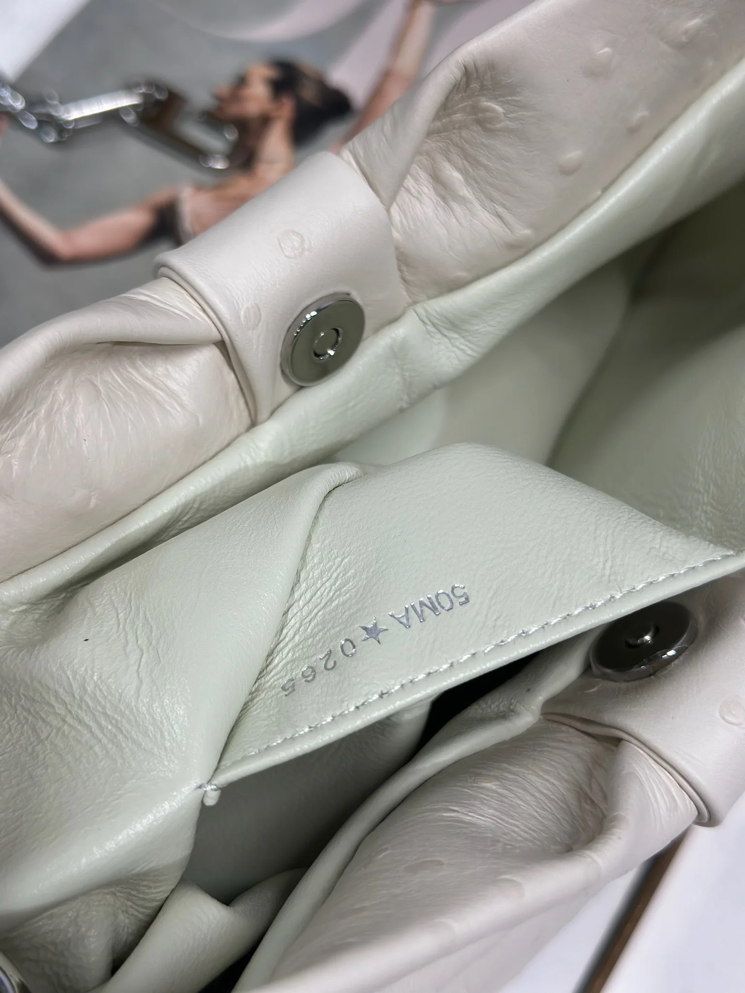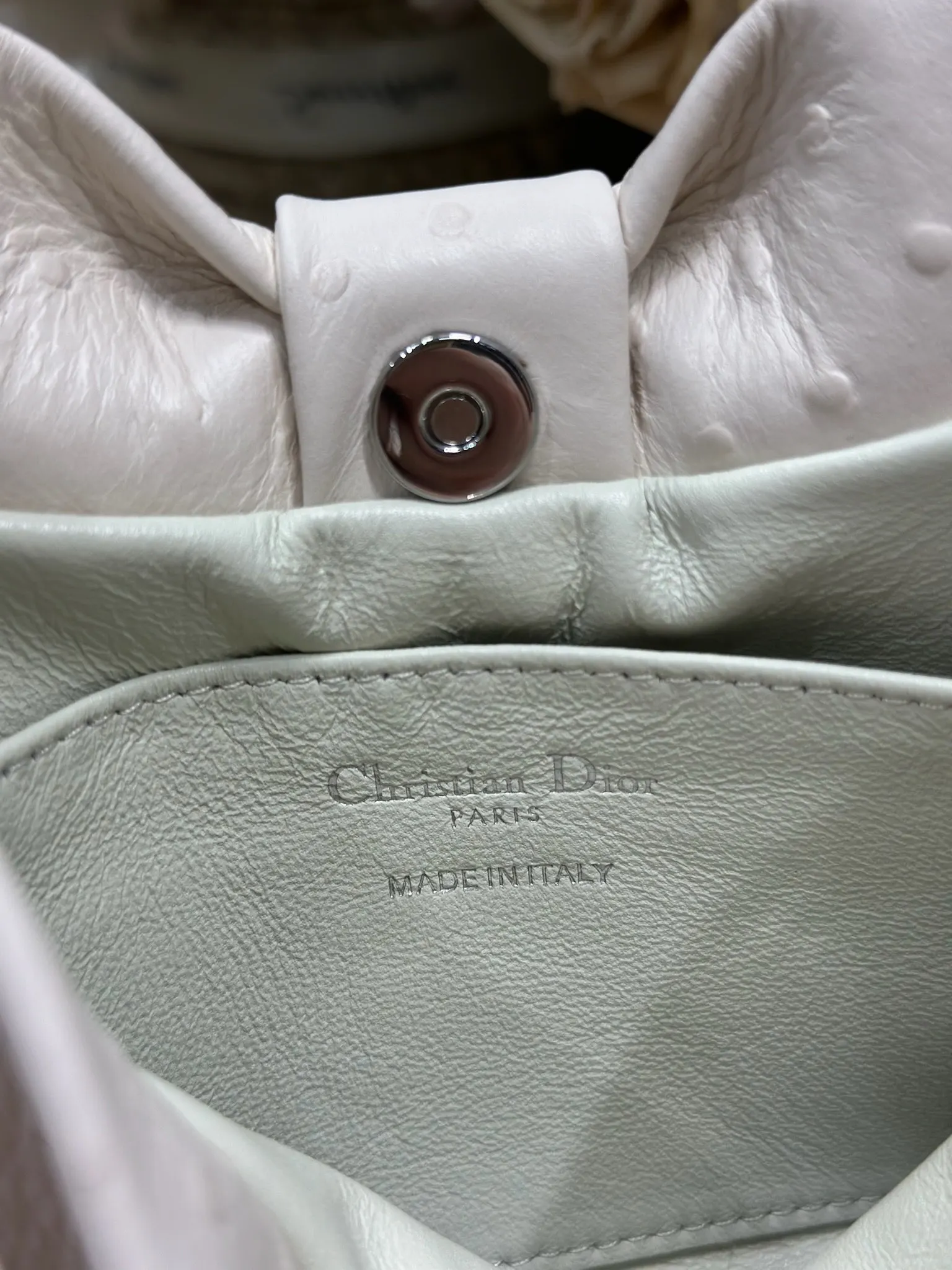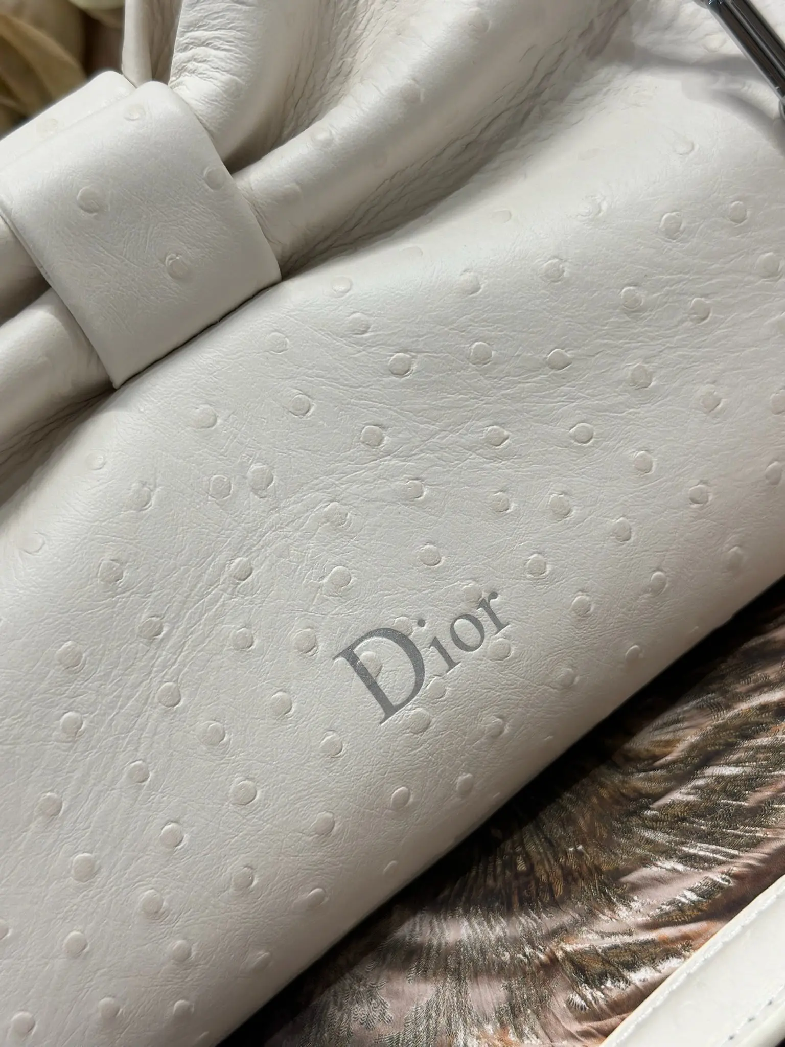 Dior-LAMBSKIN 2026春夏 新款手袋 鸵鸟白色 银链 LAMBSKIN链条包 全新的包形 小牛皮革的质感 优雅大气 款式实用 可收纳各种日常用品 是日装和晚装的理想良伴 可拆卸链条以蝴蝶结点缀更显精致 可手提或斜挎 型号 0714尺寸 27×8×18cm 长×宽×高