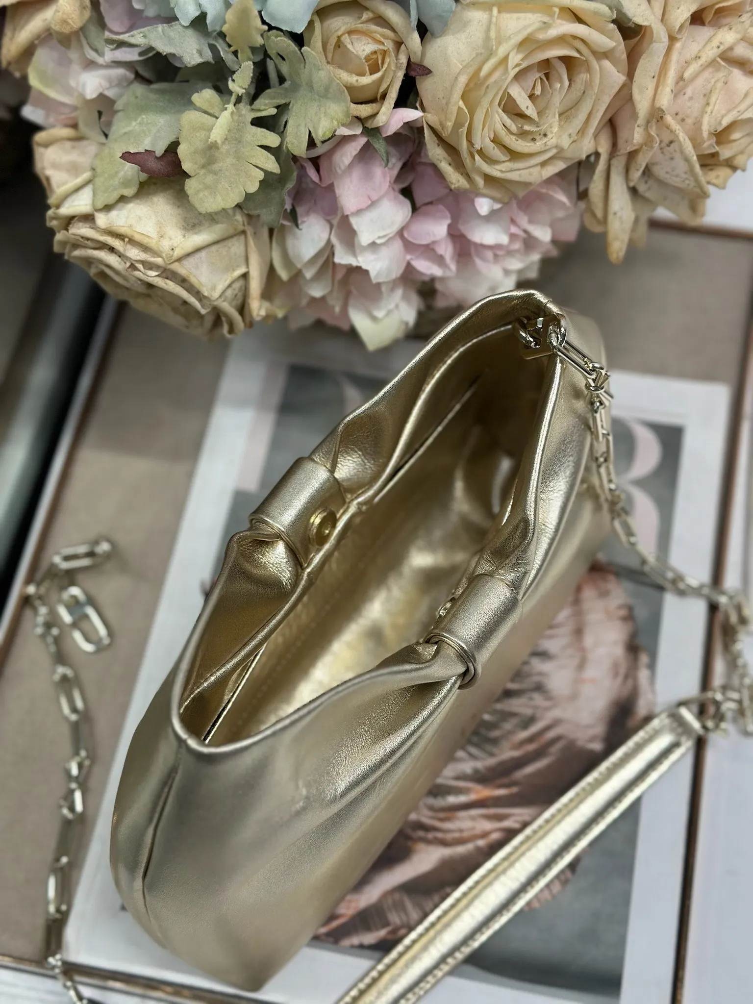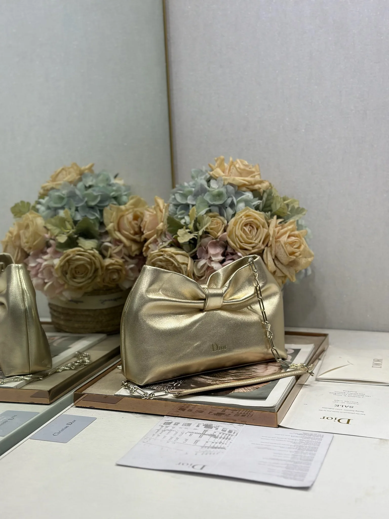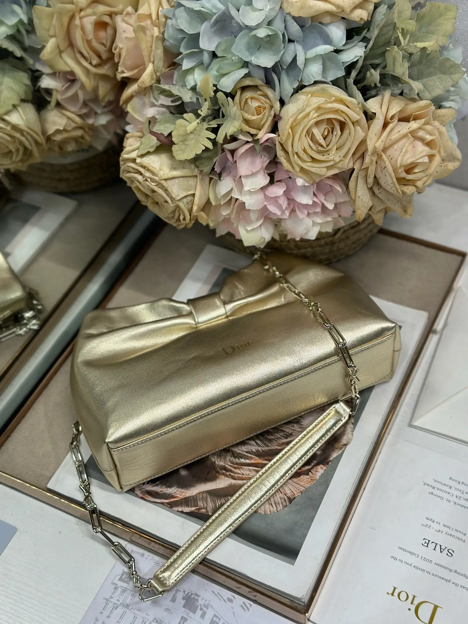 Dior-LAMBSKIN 2026春夏 新款手袋 金色 浅金链 LAMBSKIN链条包 全新的包形 小牛皮革的质感 优雅大气 款式实用 可收纳各种日常用品 是日装和晚装的理想良伴 可拆卸链条以蝴蝶结点缀更显精致 可手提或斜挎
