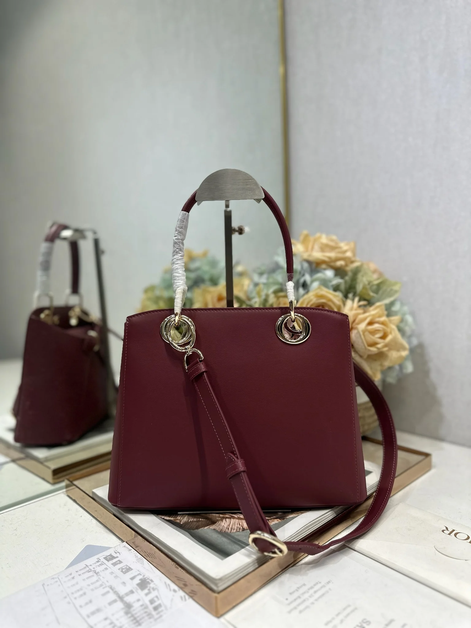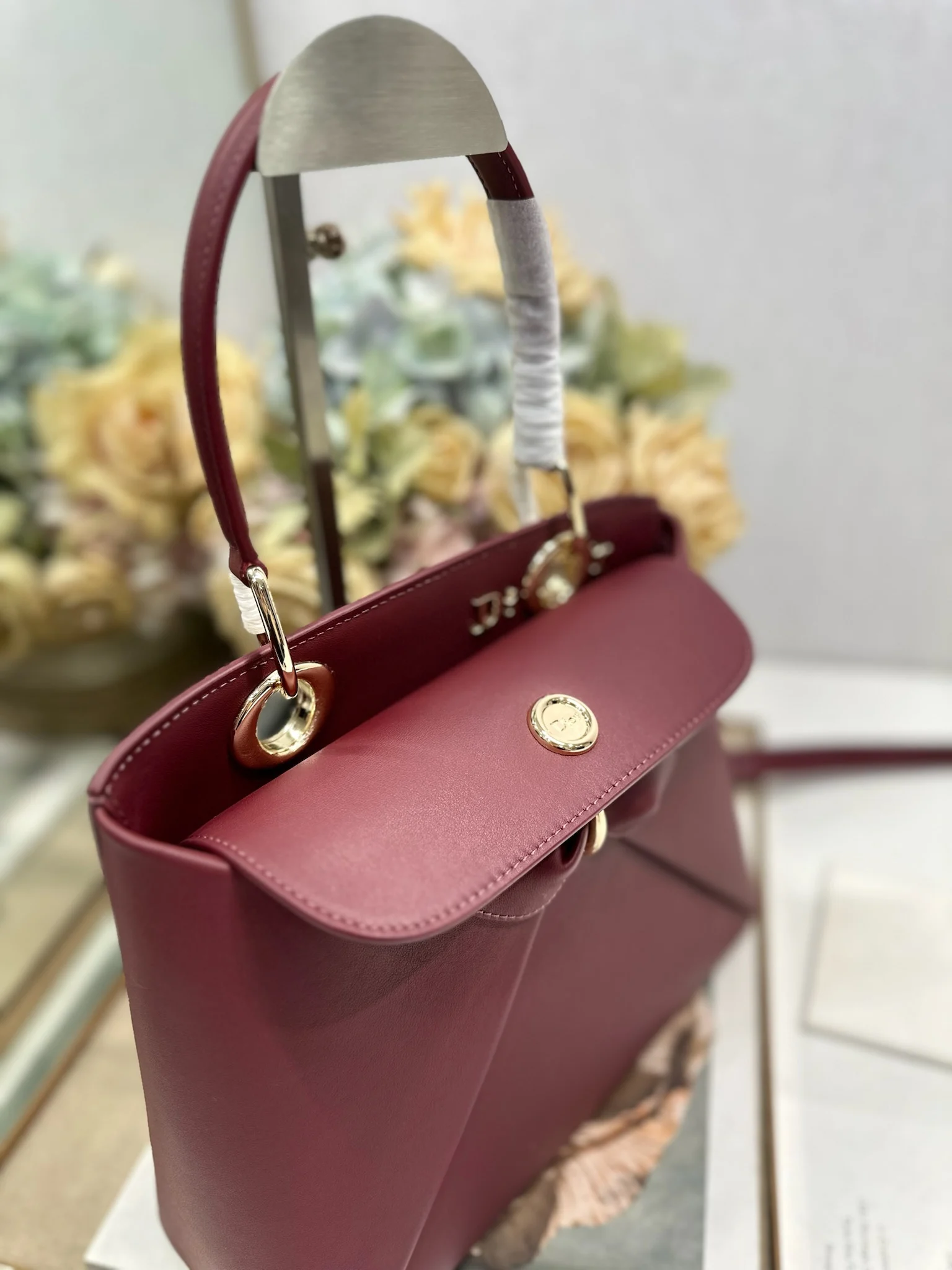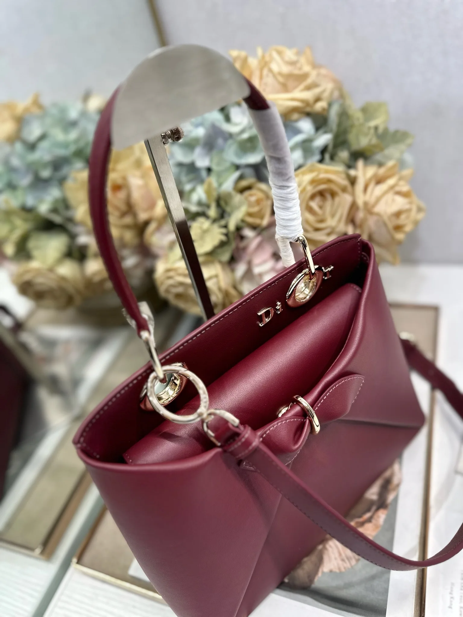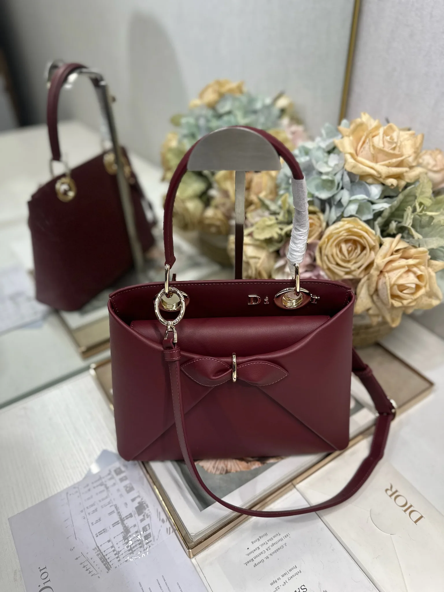 Dior 春夏新品蝴蝶结手提包 酒红色 新设计的轮廓与造型 配色 丰富 适配多人 型号 0737