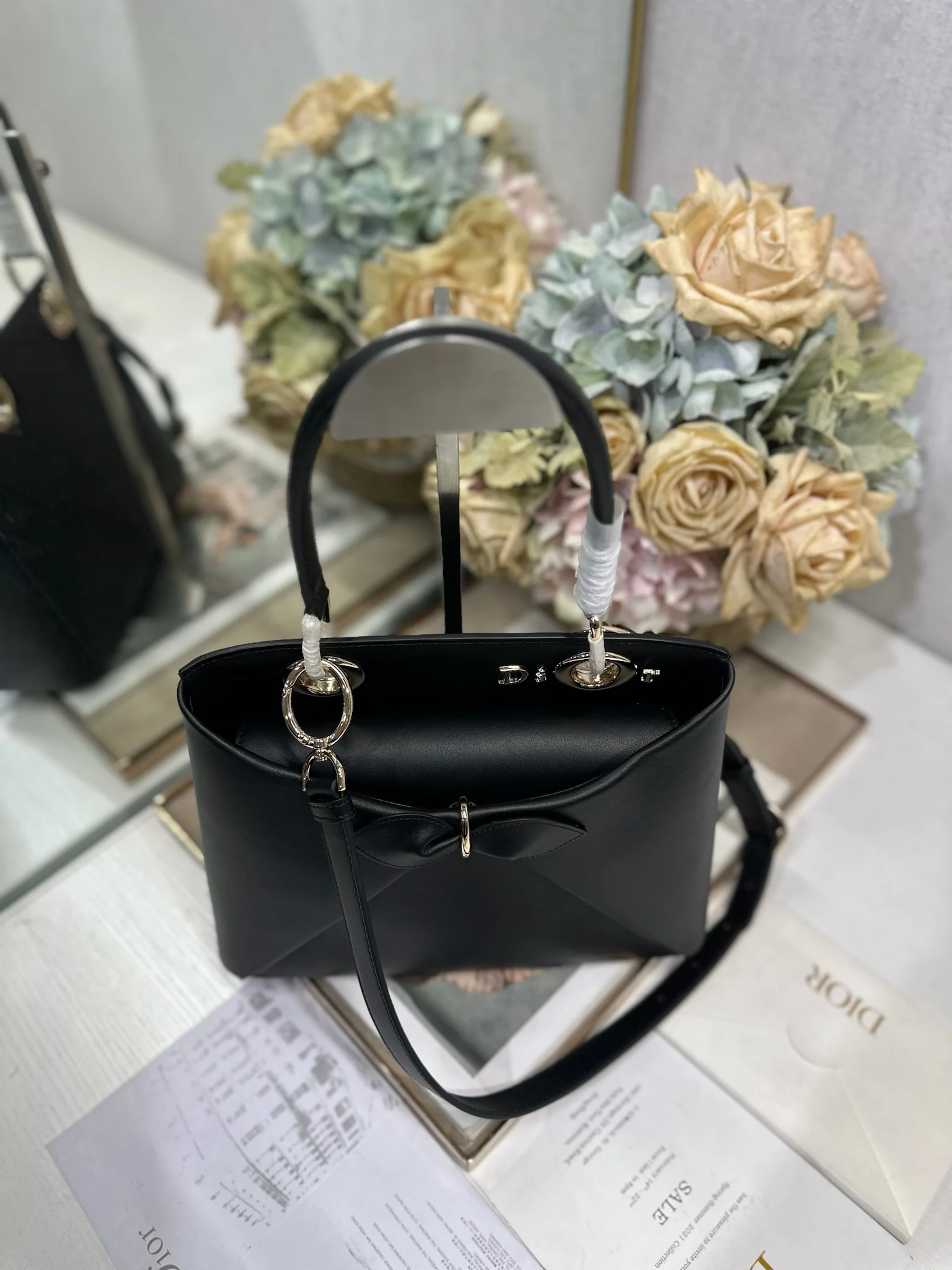 Dior 春夏新品蝴蝶结手提包 黑色 新设计的轮廓与造型 配色 丰富 适配多人 型号 0737