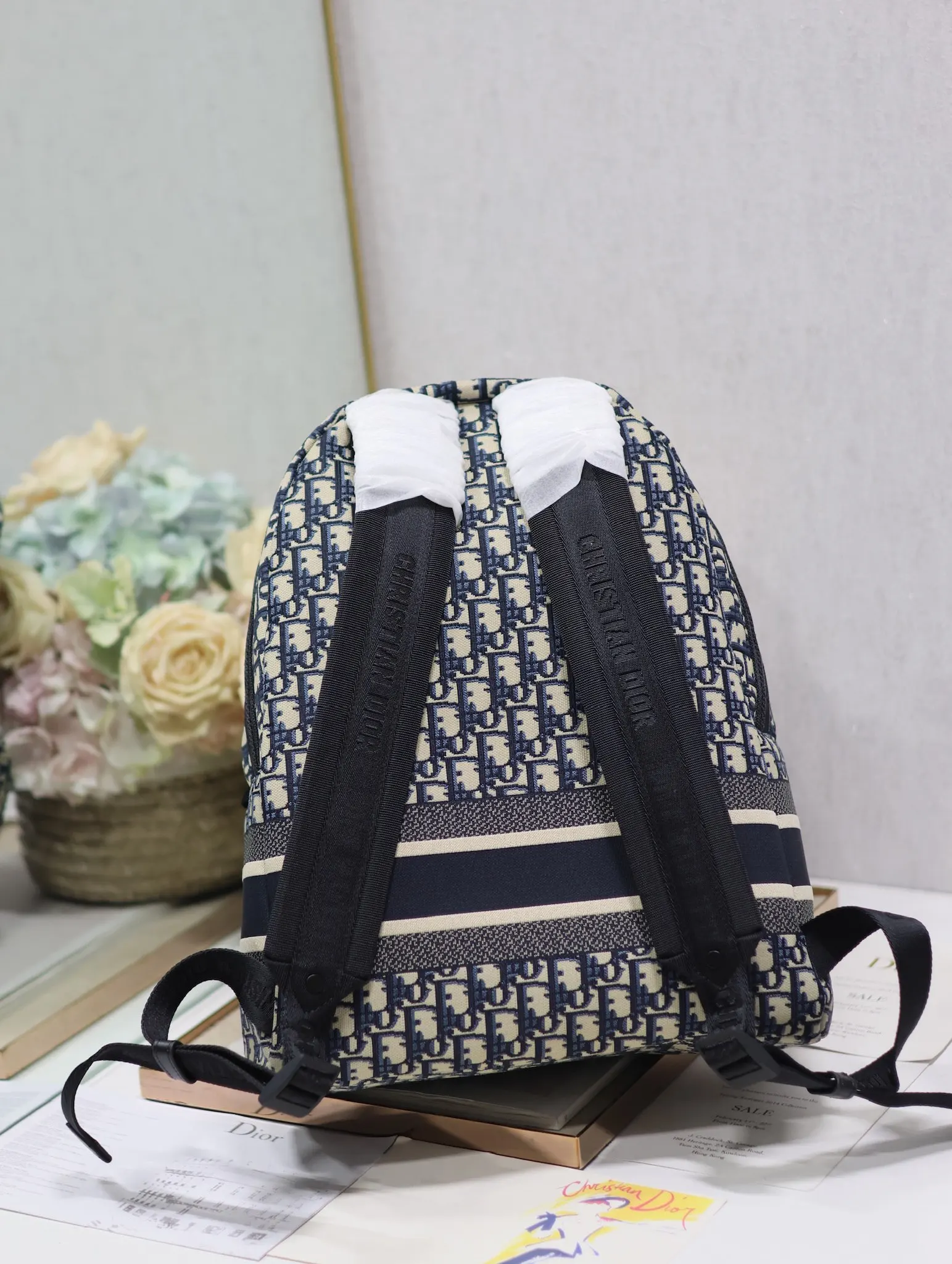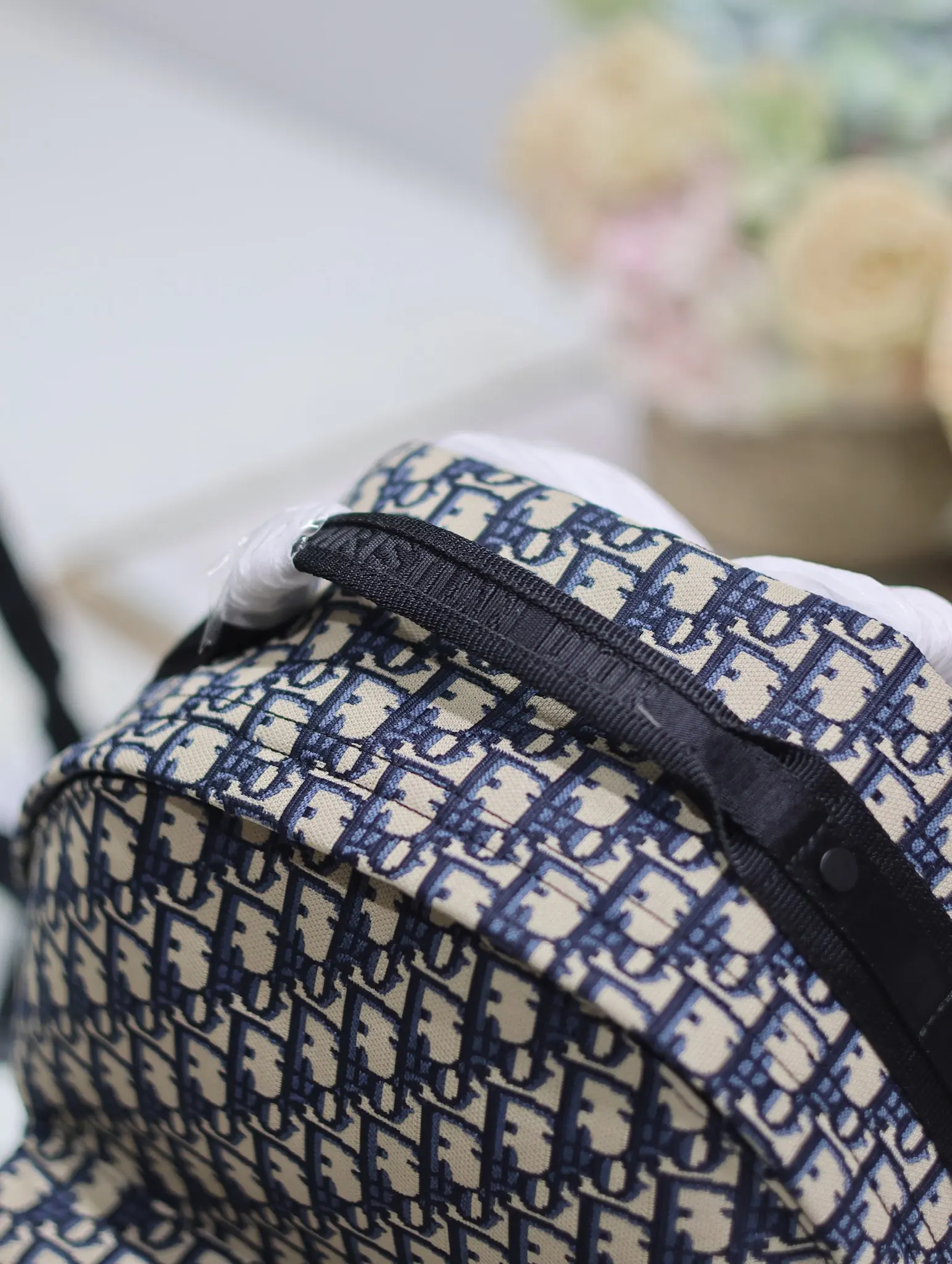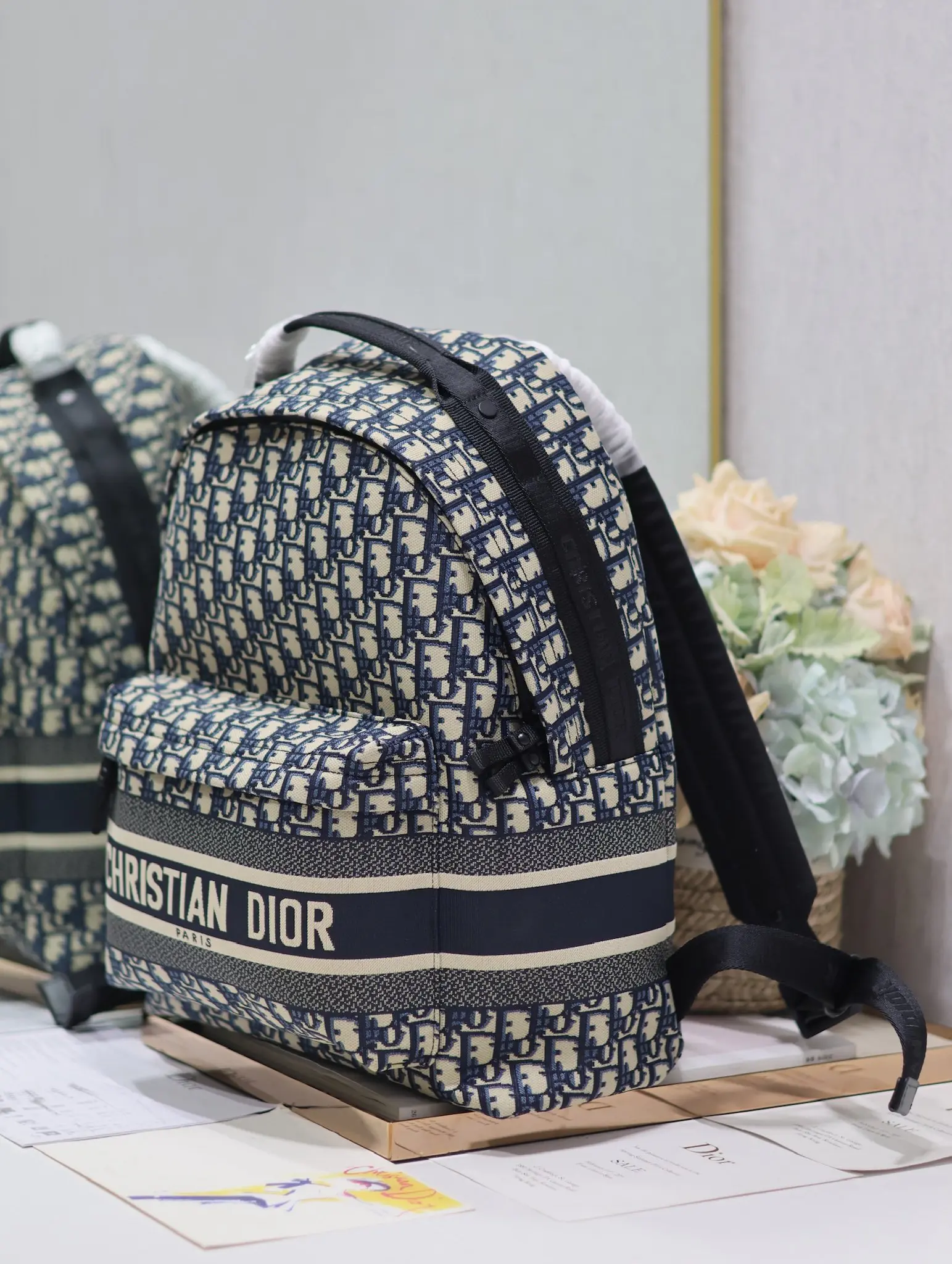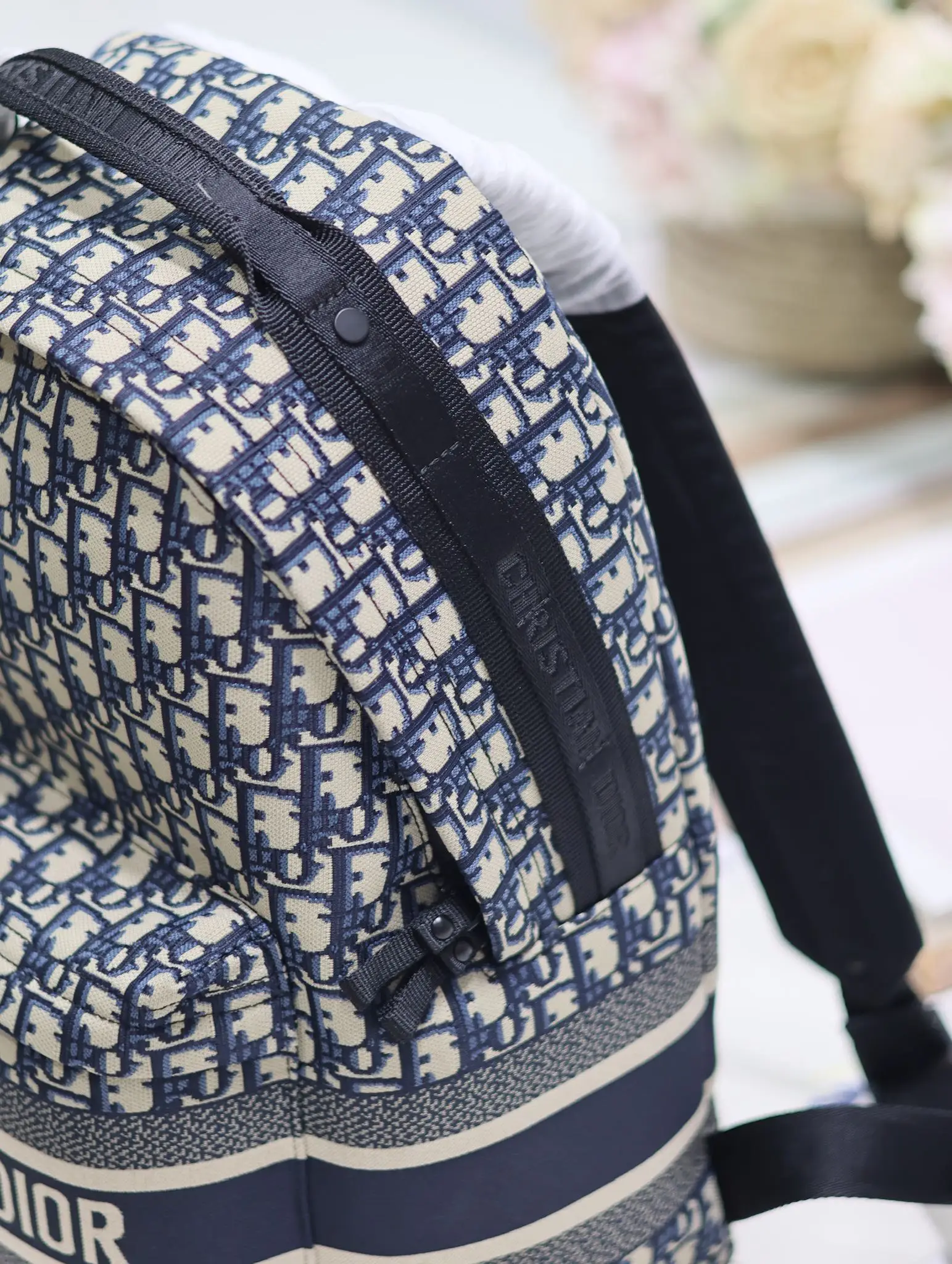 DiorTravel 双肩背包 蓝布大号 这款 DiorTravel 双肩背包巧妙融合 Dior 的经典细节与时尚而实用的设计 采用蓝色提花科技面料精心制作 通体饰以 Oblique 印花 搭配手柄和肩带 可肩背或双肩背 型号 096尺寸 35 x 41 x 15 厘米 长 x 高 x 宽