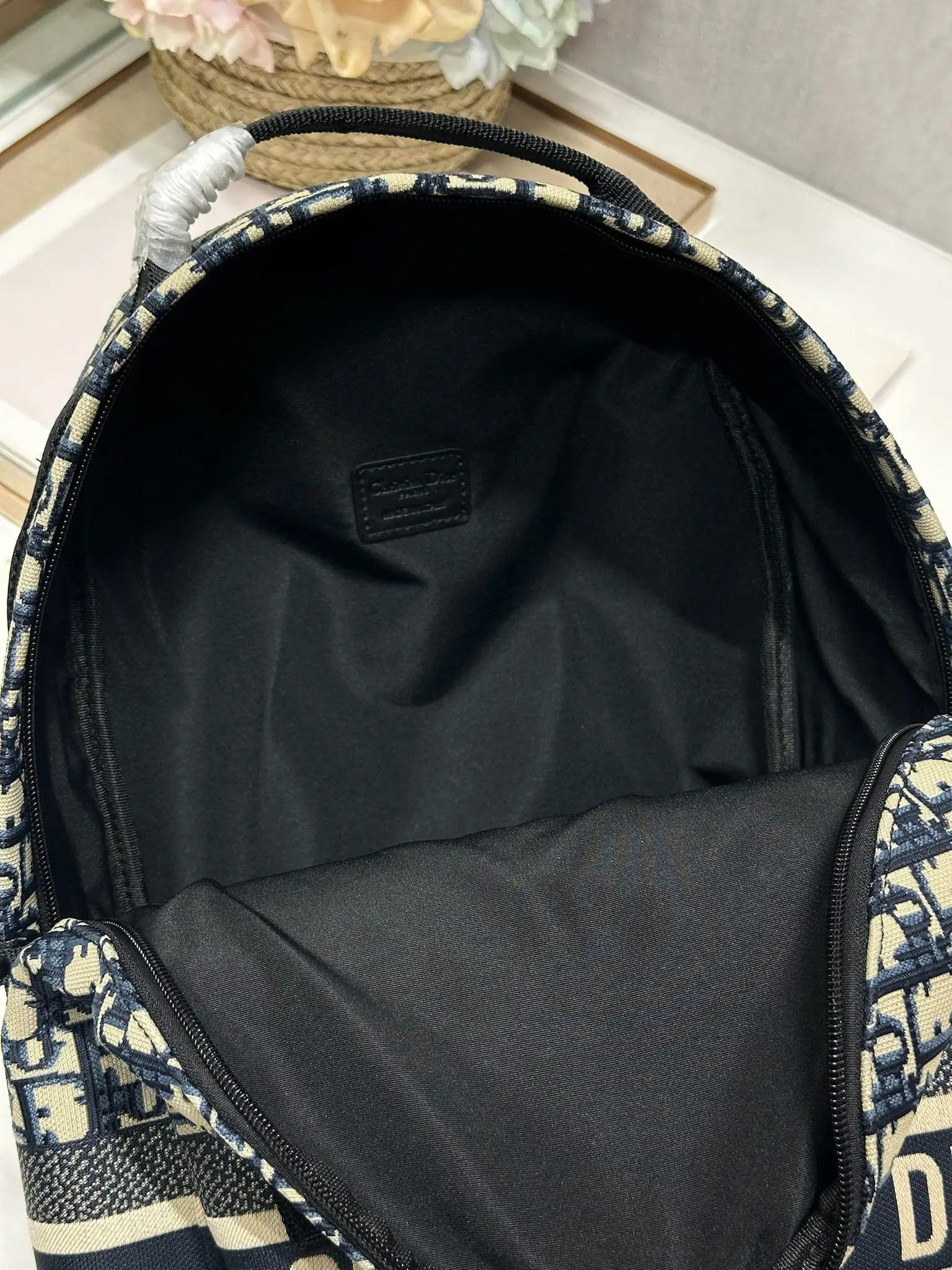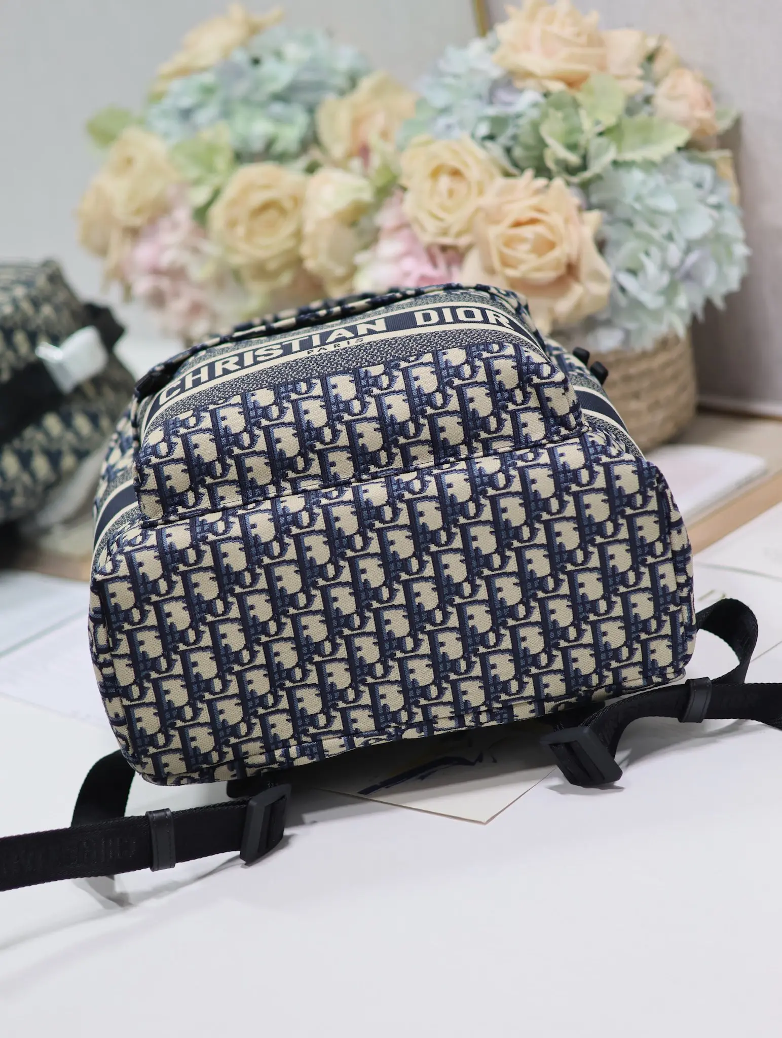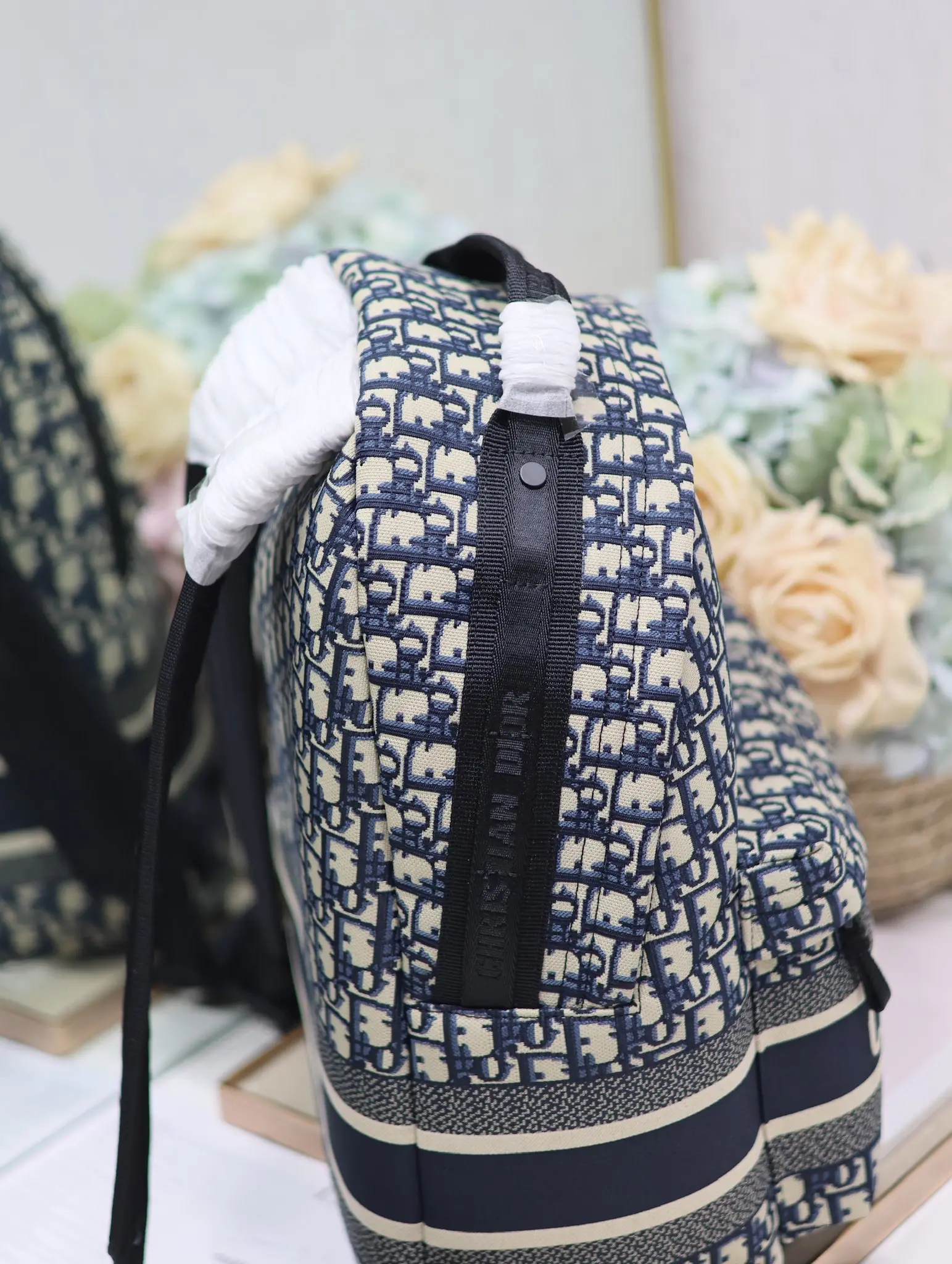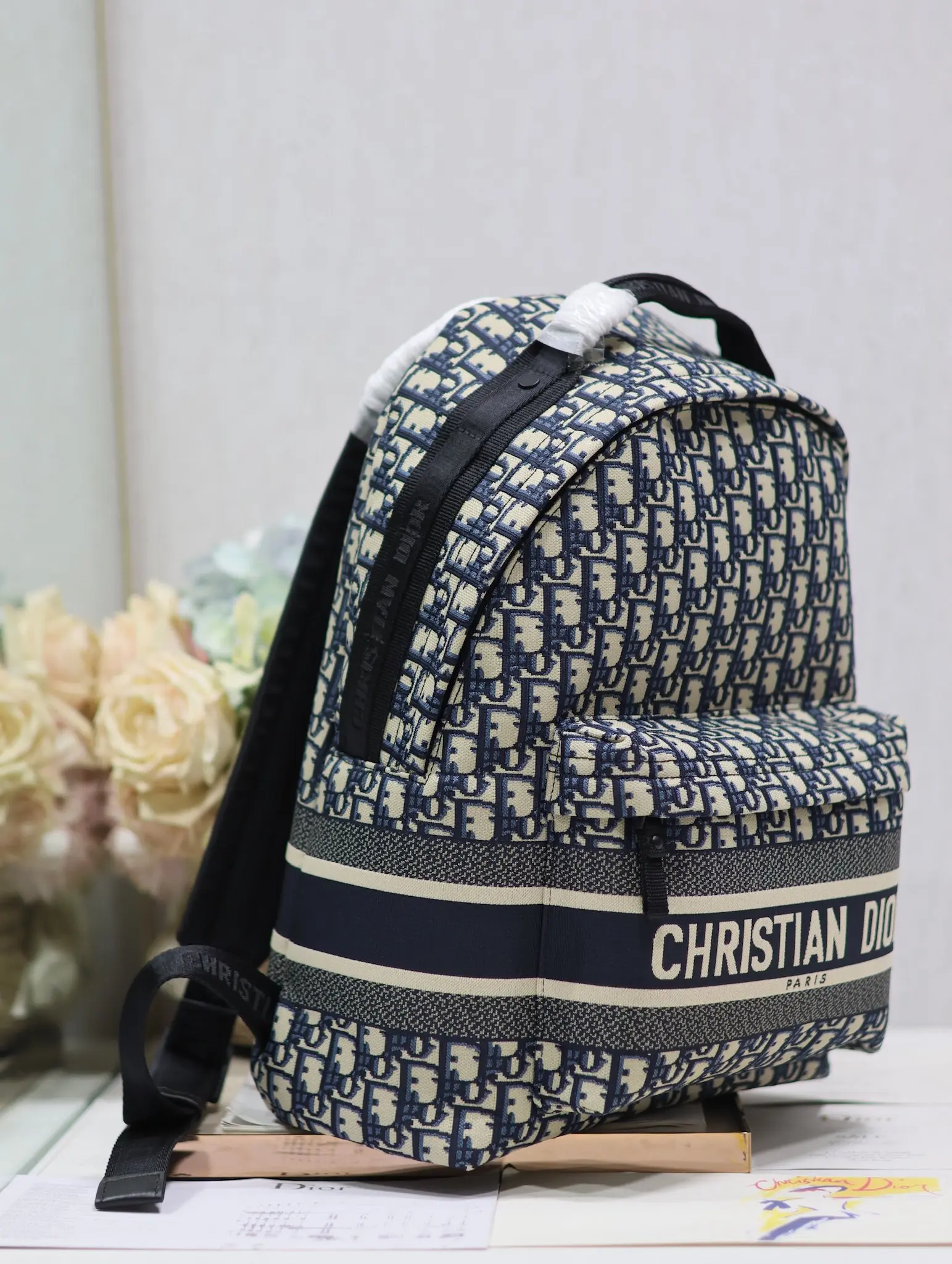DiorTravel 双肩背包 蓝布大号 这款 DiorTravel 双肩背包巧妙融合 Dior 的经典细节与时尚而实用的设计 采用蓝色提花科技面料精心制作 通体饰以 Oblique 印花 搭配手柄和肩带 可肩背或双肩背 型号 096尺寸 35 x 41 x 15 厘米 长 x 高 x 宽