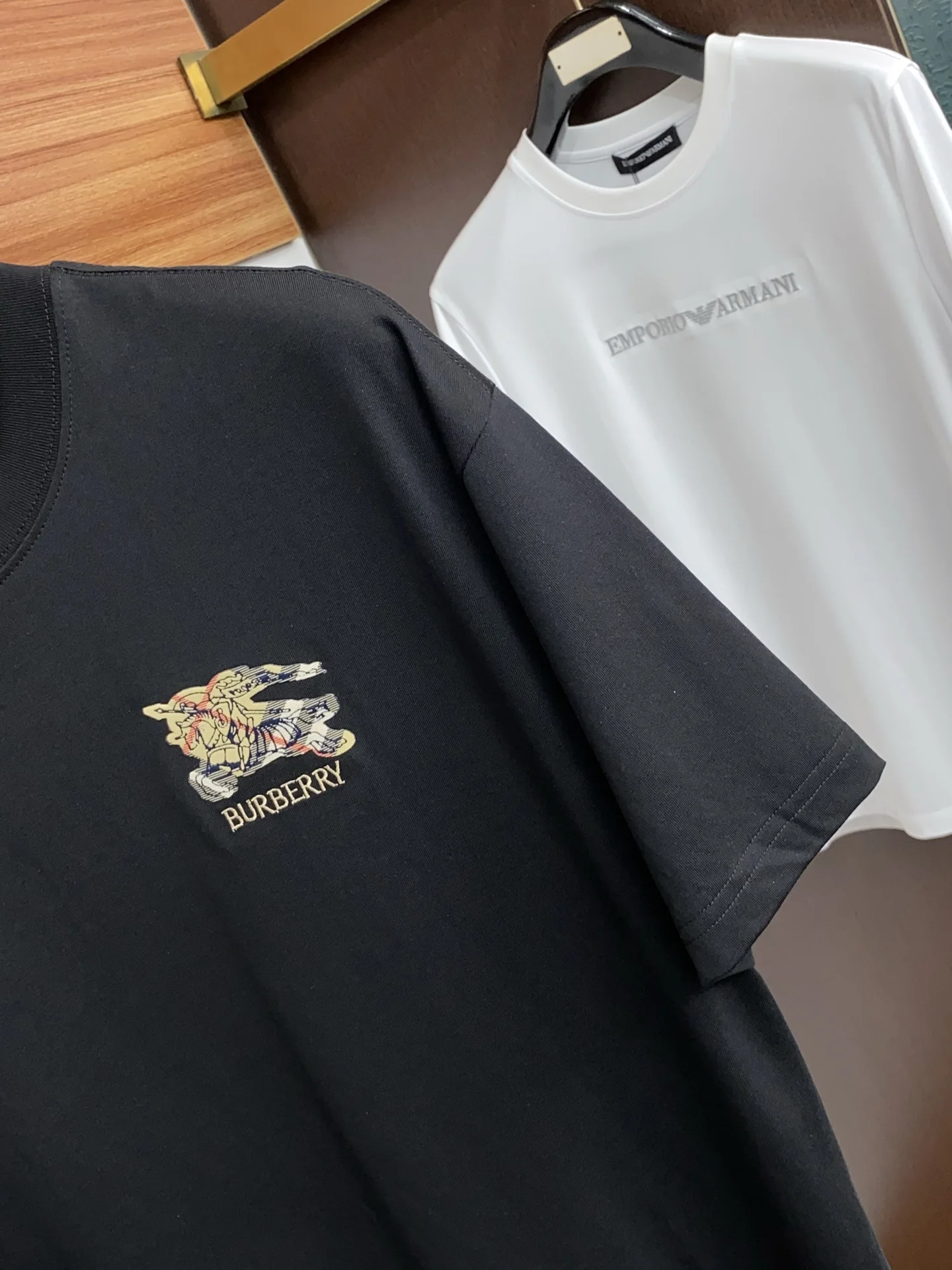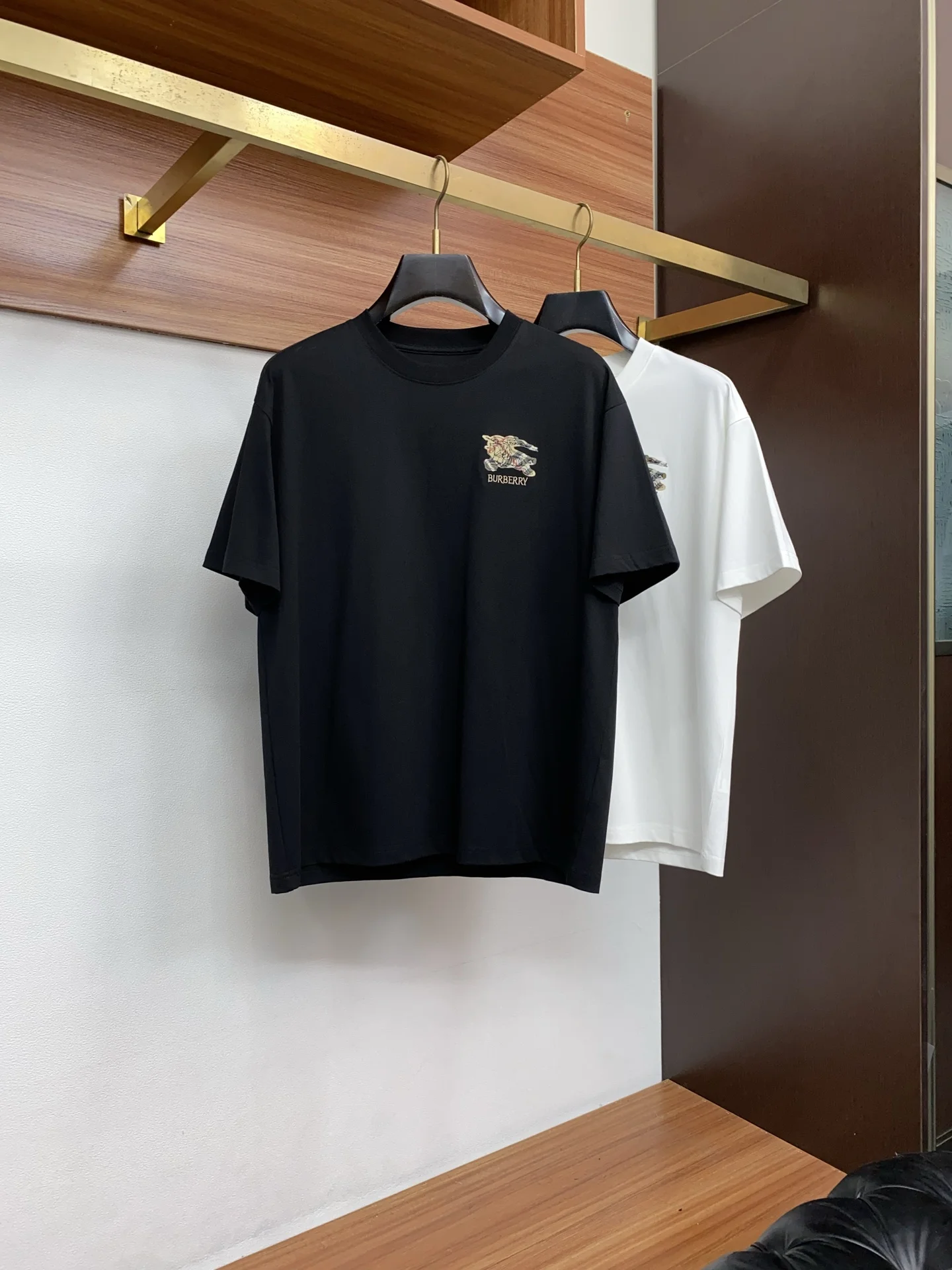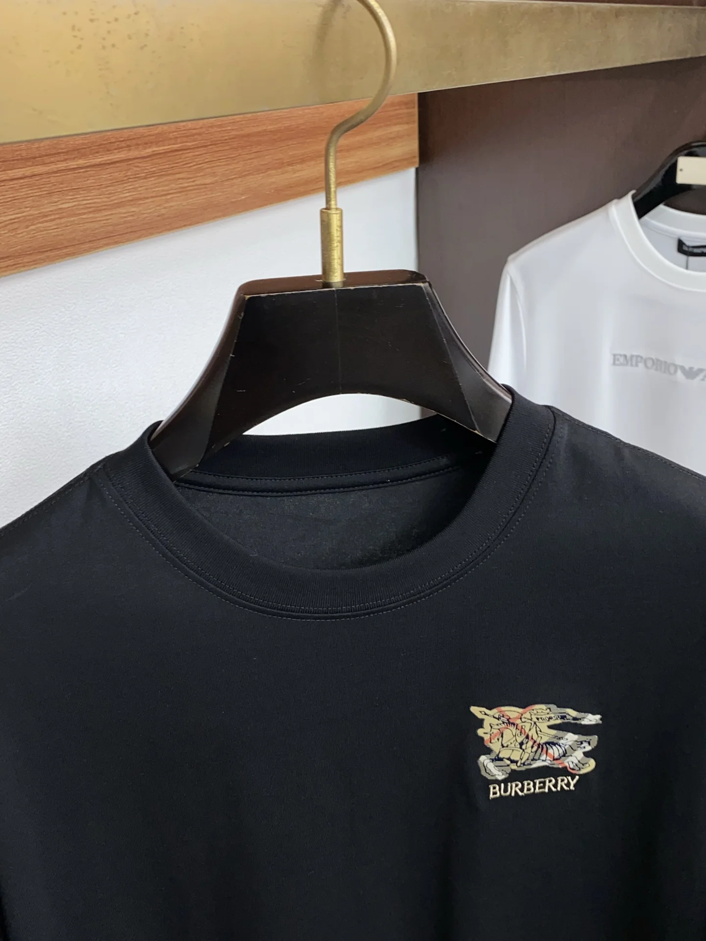 巴宝莉纯棉质微阔版圆领男士短袖T恤