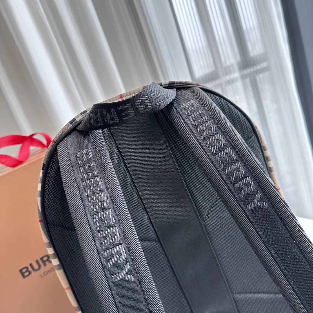 B家尼龙双肩包 装饰 Vintage 复古格纹 搭配平滑皮革边饰 肩背带饰有 Burberry 字母提花精纺徽标 30.5 x 14.5 x 42.5cm型号1091