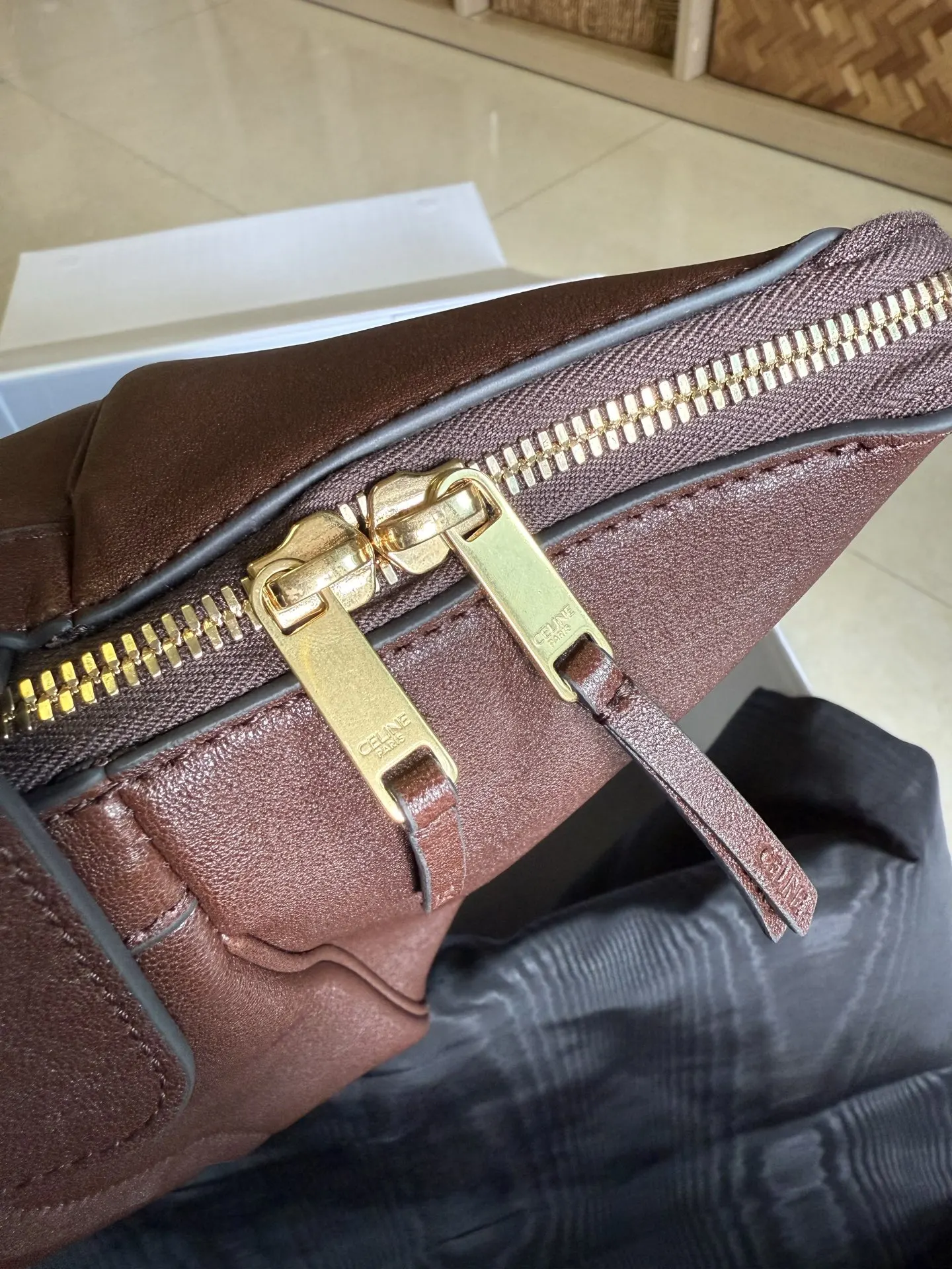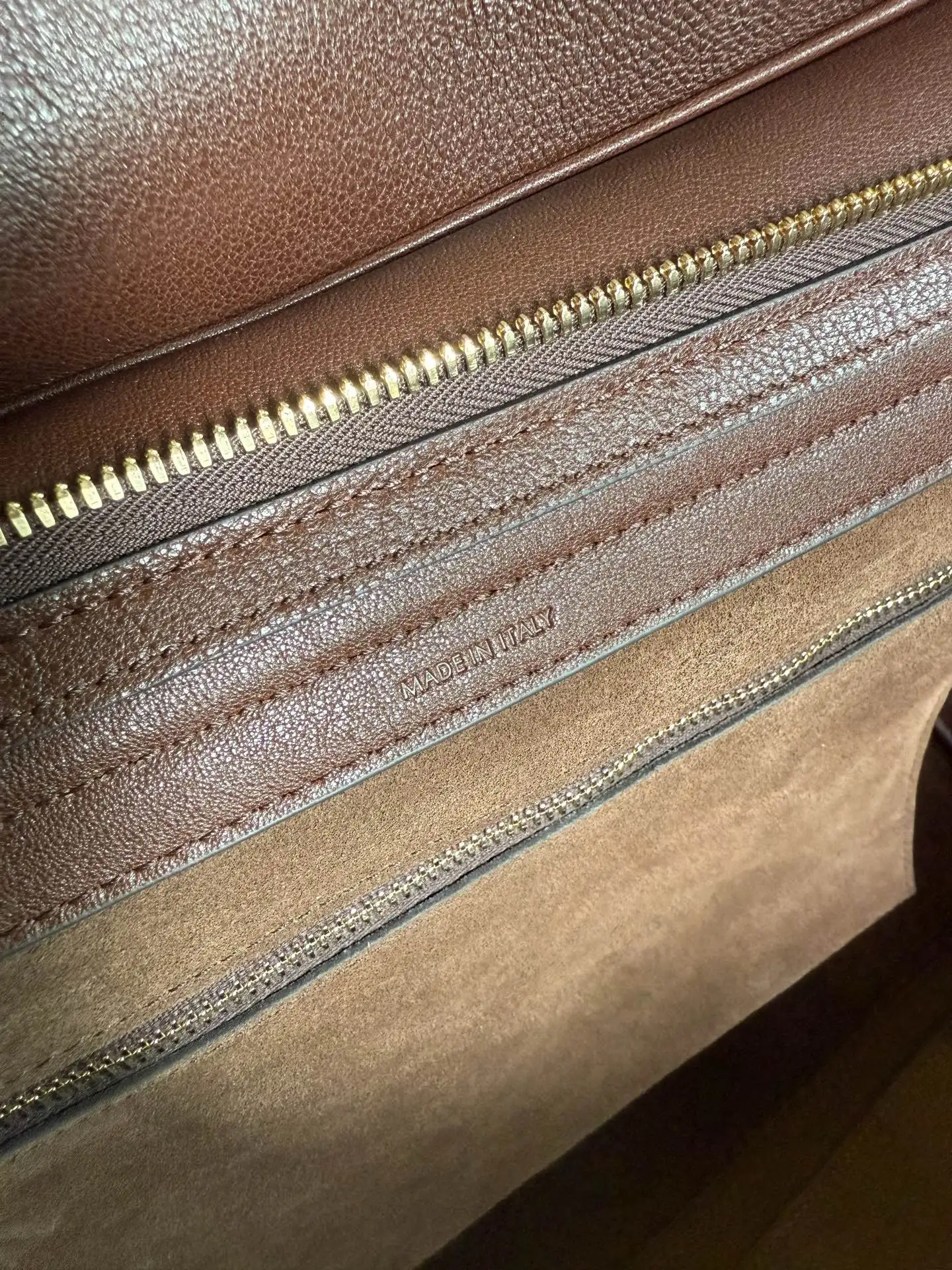 尽显简约利落的摩登气质新任创意总监 Michael Rider 在2026春季首秀上让 笑脸包 惊喜回归 柔滑细腻且富有光泽的皮革 背缝工艺和滚边设计塑造出柔和圆润的横版轮廓 侧面拉链设计呈现独特的微笑弧度 巧妙呼应 笑脸包 这一美名 通过现代廓形重释经典设计 整体更加轻便百搭 呈现优雅又随性的风格