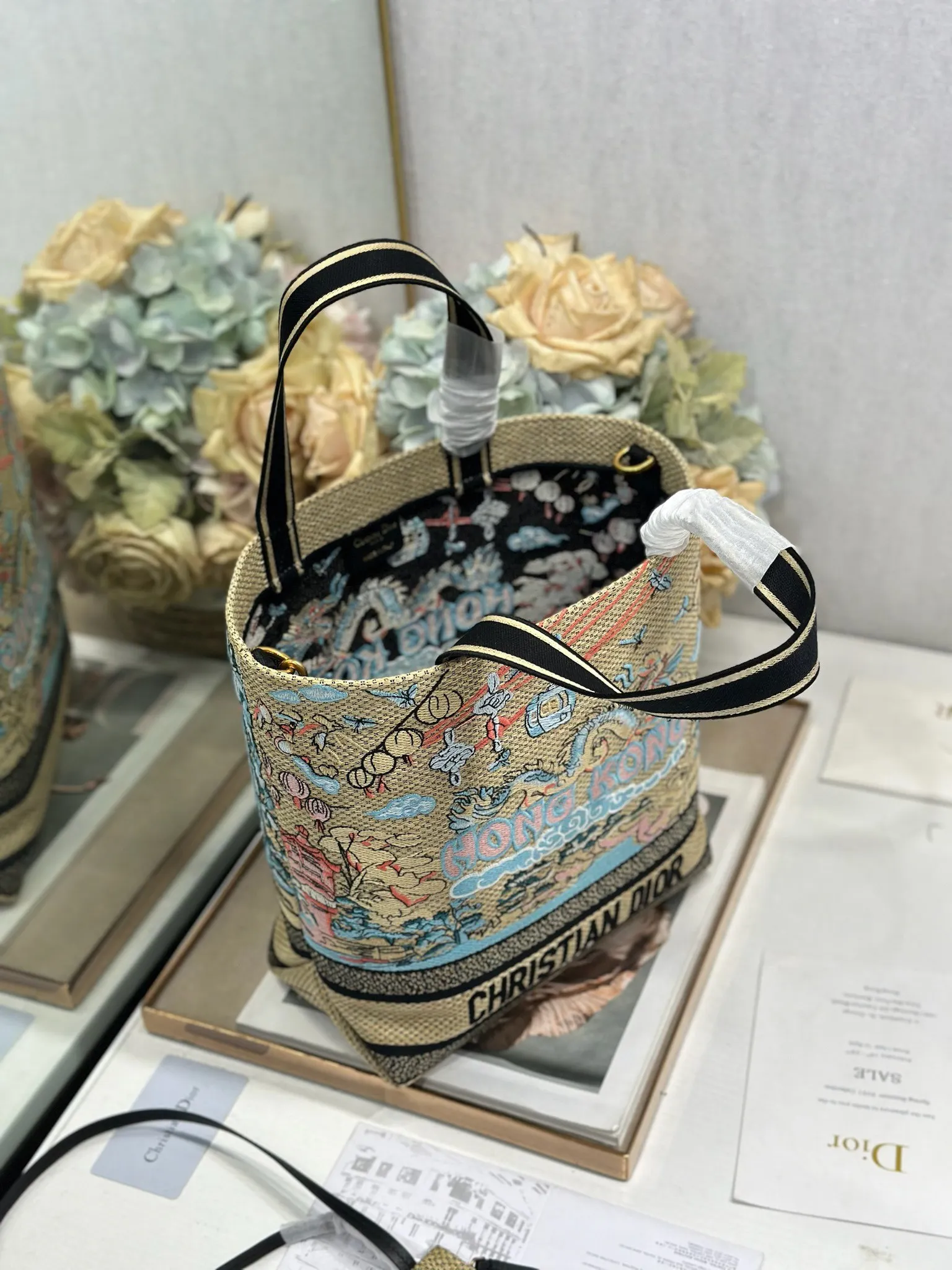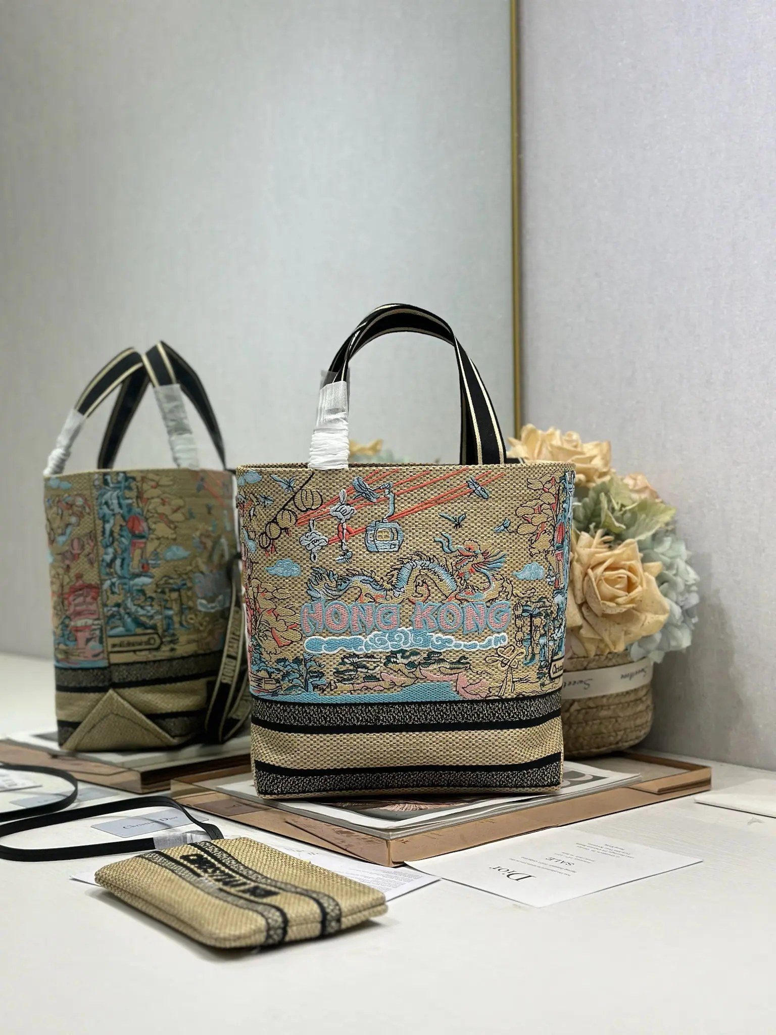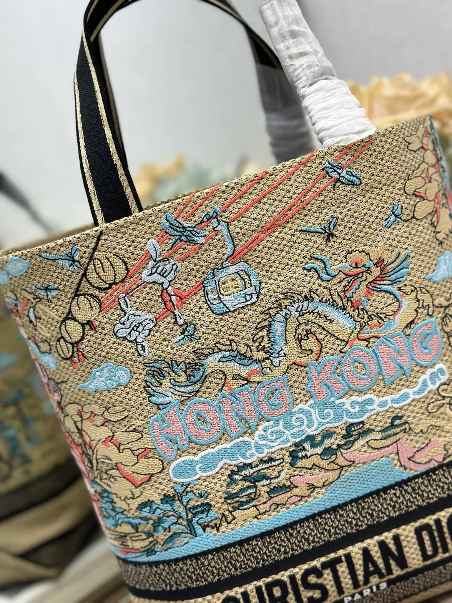 小号 Dior城市明信片 度假风款手袋 香港 限定 这款城市明信片手袋时尚实用 别具一格 采用各种色彩的刺绣精心制作 饰以香港当地人文与Dior高级刺绣相结合 宽敞的内部隔层可收纳各种日常用品 搭配一个小手提袋 小号款式 顶部刺绣手柄搭配可拆卸的刺绣肩带 可手提 肩背或斜挎