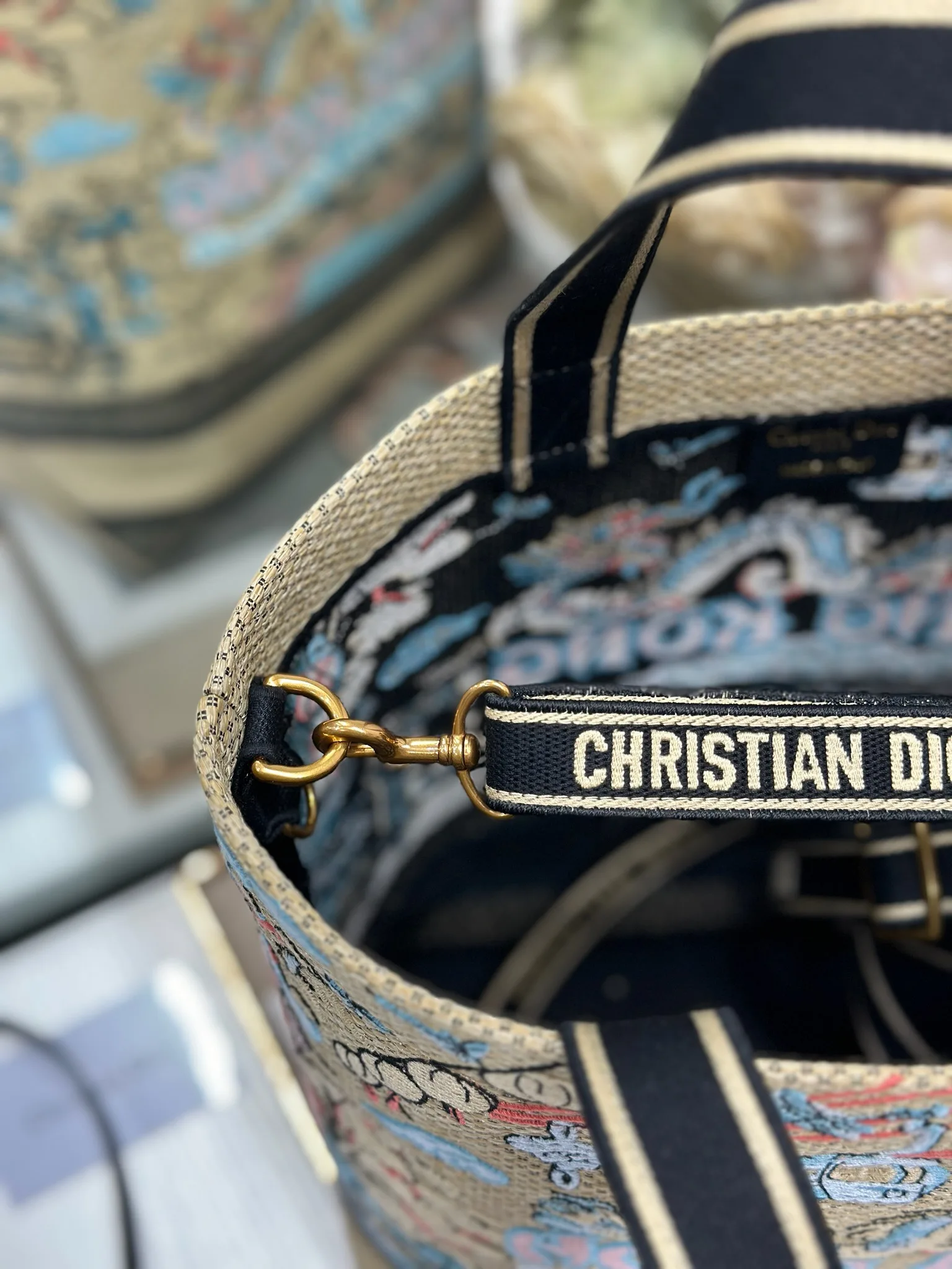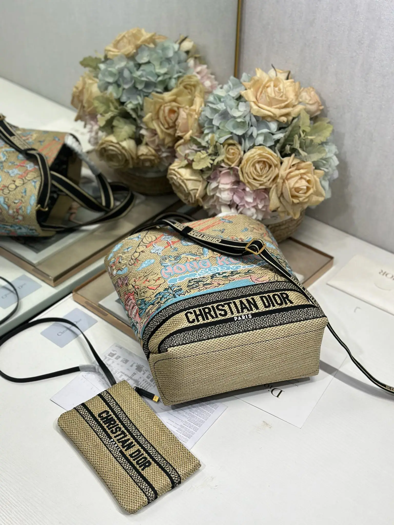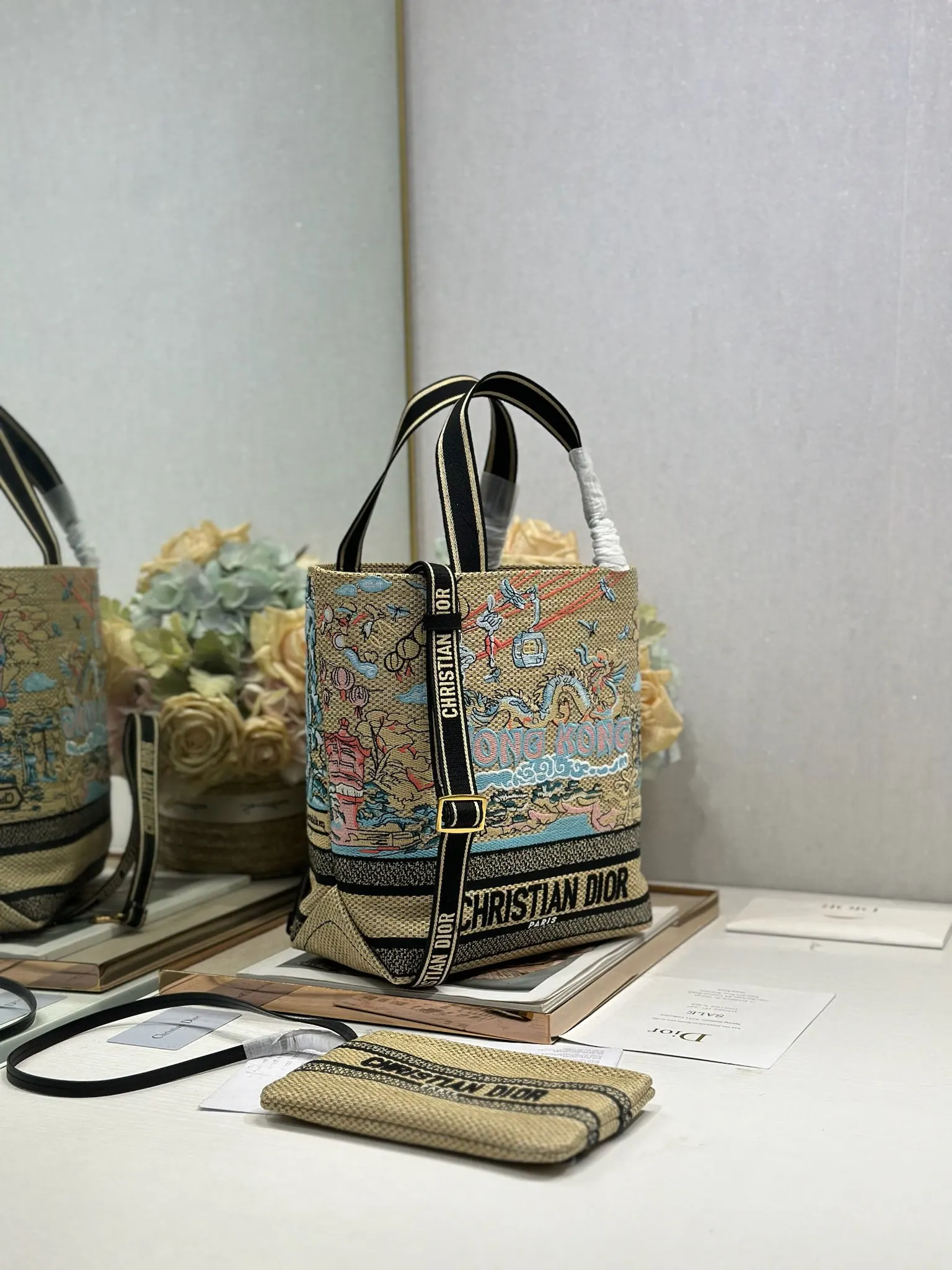 小号 Dior城市明信片 度假风款手袋 香港 限定 这款城市明信片手袋时尚实用 别具一格 采用各种色彩的刺绣精心制作 饰以香港当地人文与Dior高级刺绣相结合 宽敞的内部隔层可收纳各种日常用品 搭配一个小手提袋 小号款式 顶部刺绣手柄搭配可拆卸的刺绣肩带 可手提 肩背或斜挎
