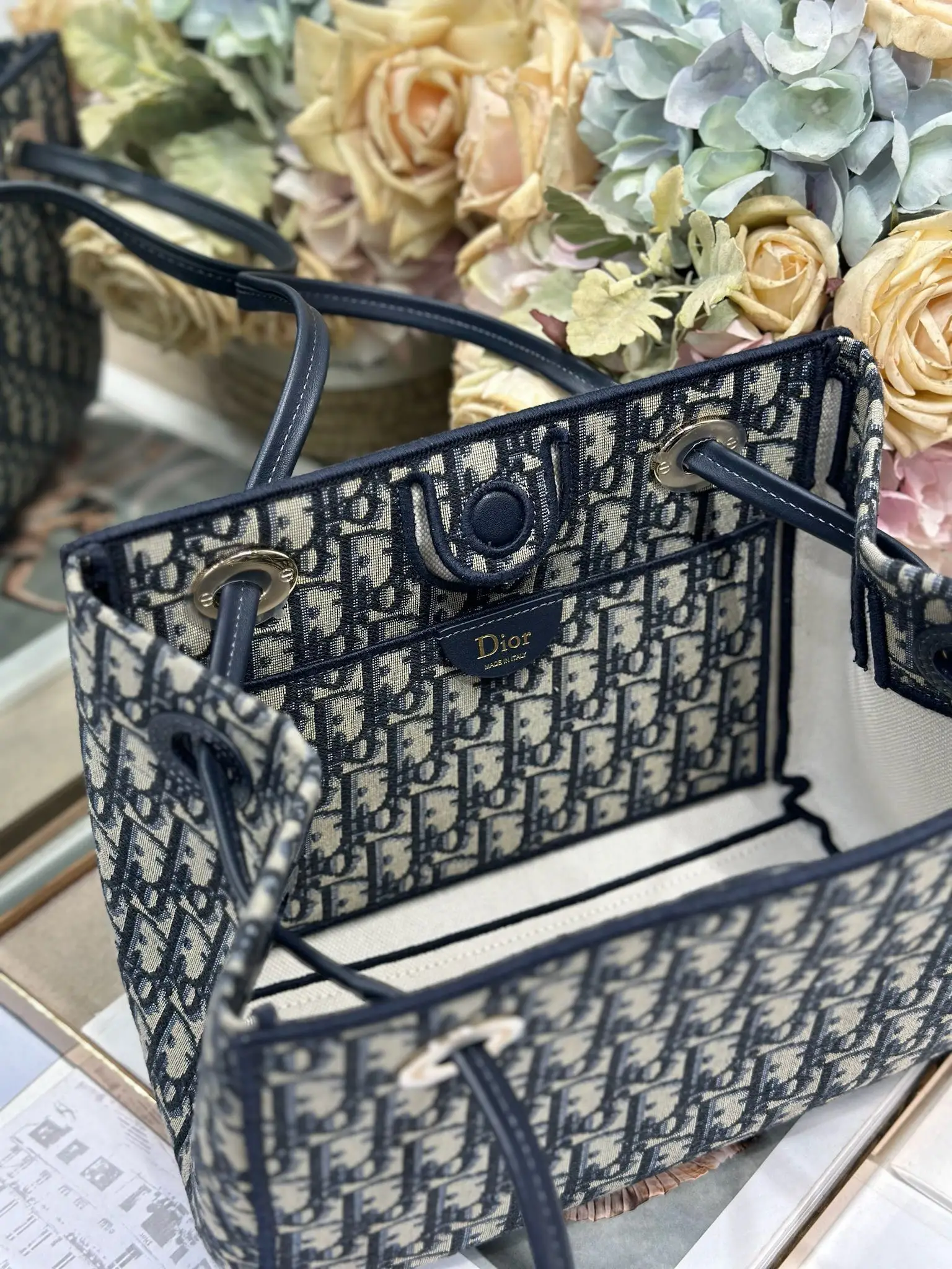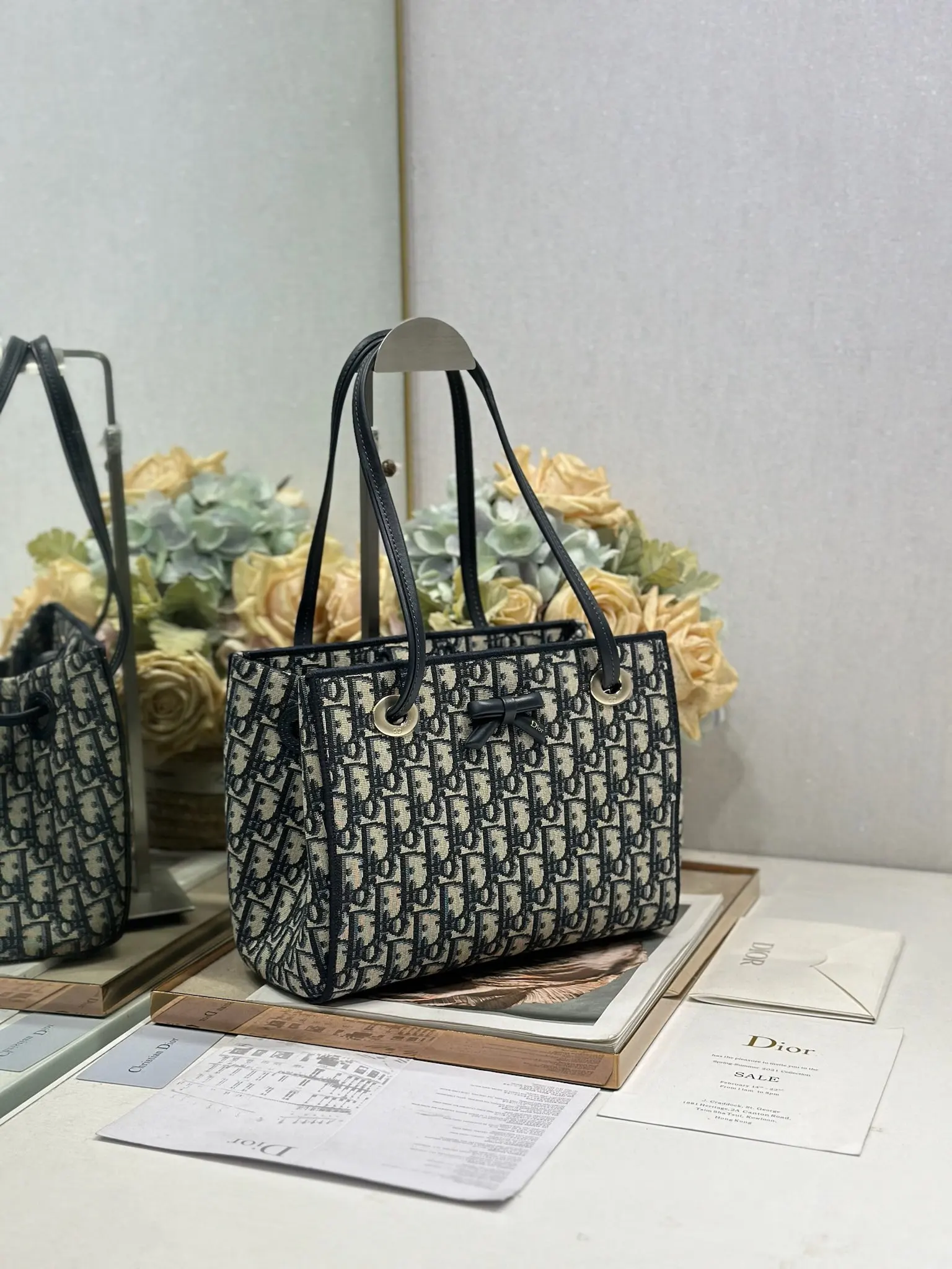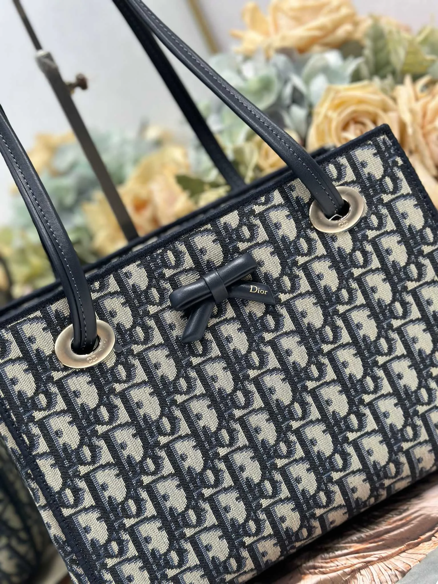 Dior新款小号购物袋 这款购物袋由乔纳森 安德森 (Jonathan Anderson) 为 Dior 倾情打造 实用宽敞的设计饰以精美蝴蝶结提升格调 展现 Dior 的全新标志细节 可手提 肩背或斜挎 磁性开合正面饰以 Dior 标志皮革蝴蝶结顶部滑动式皮革手柄 搭配 CD 标志孔眼