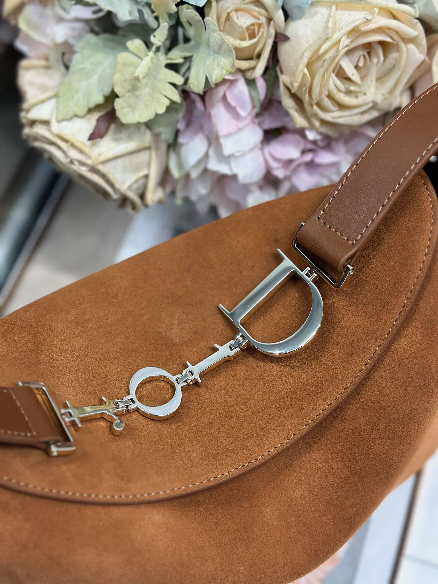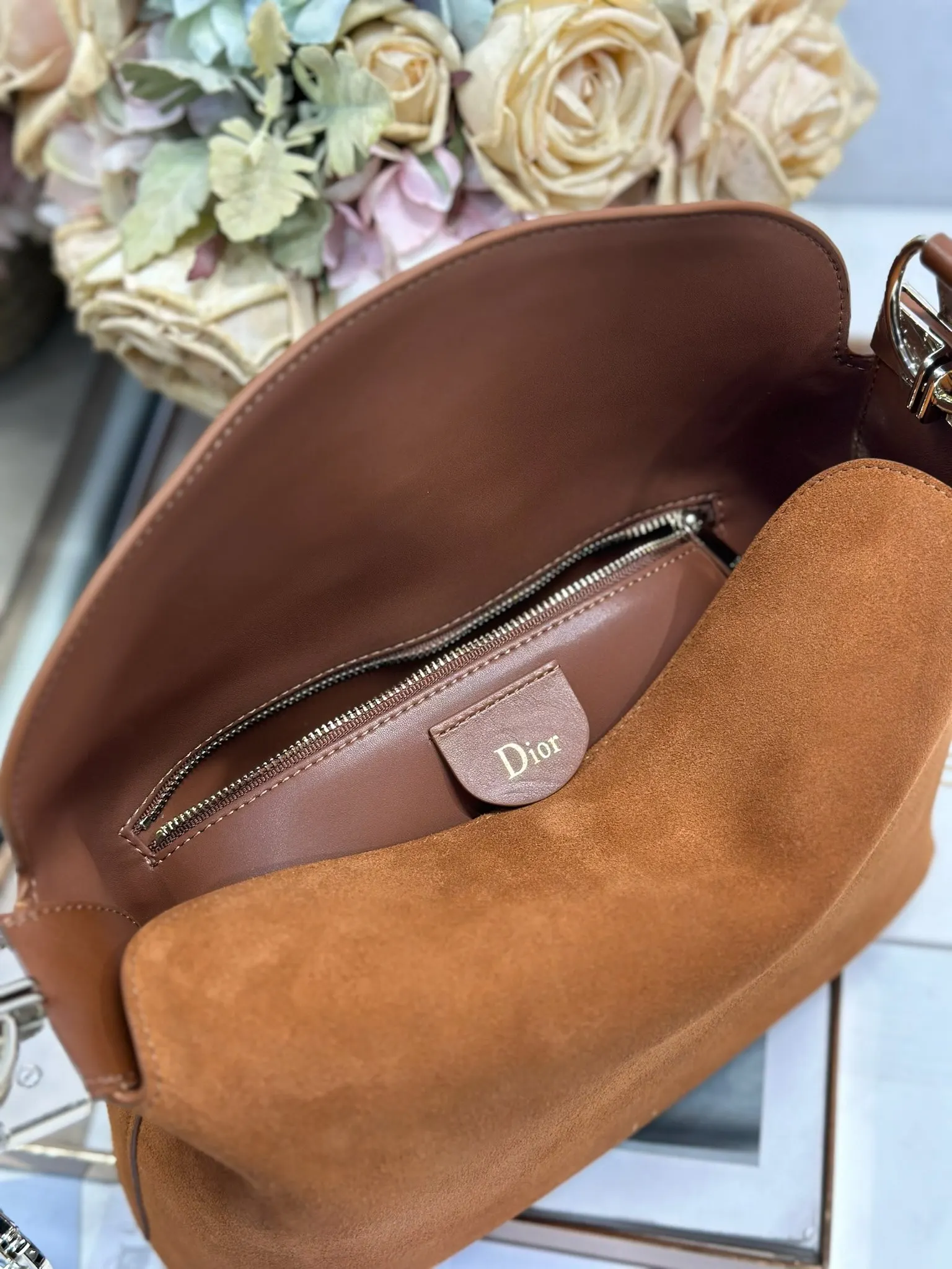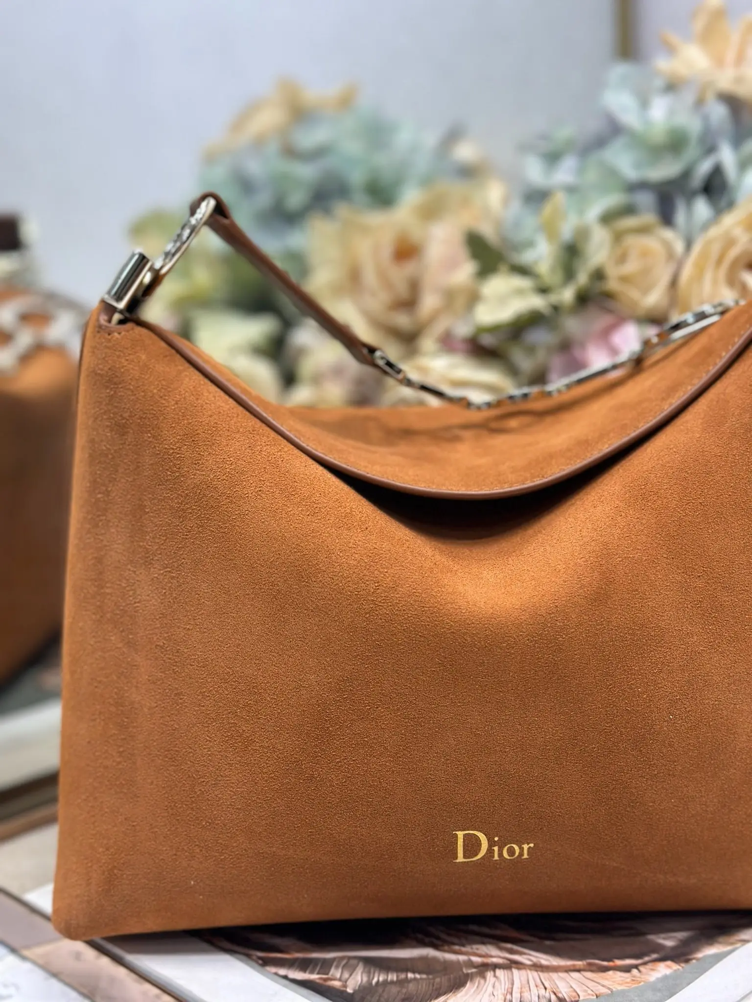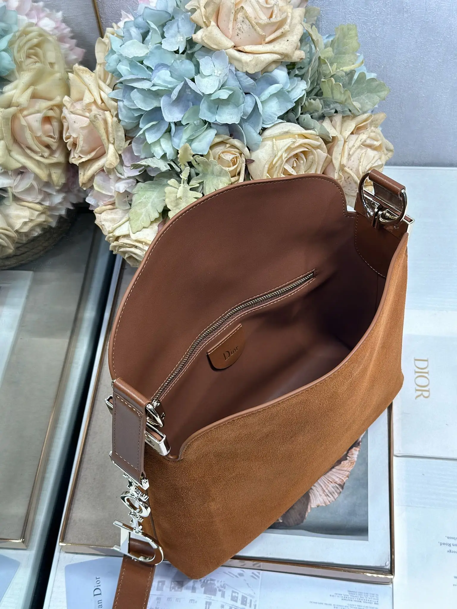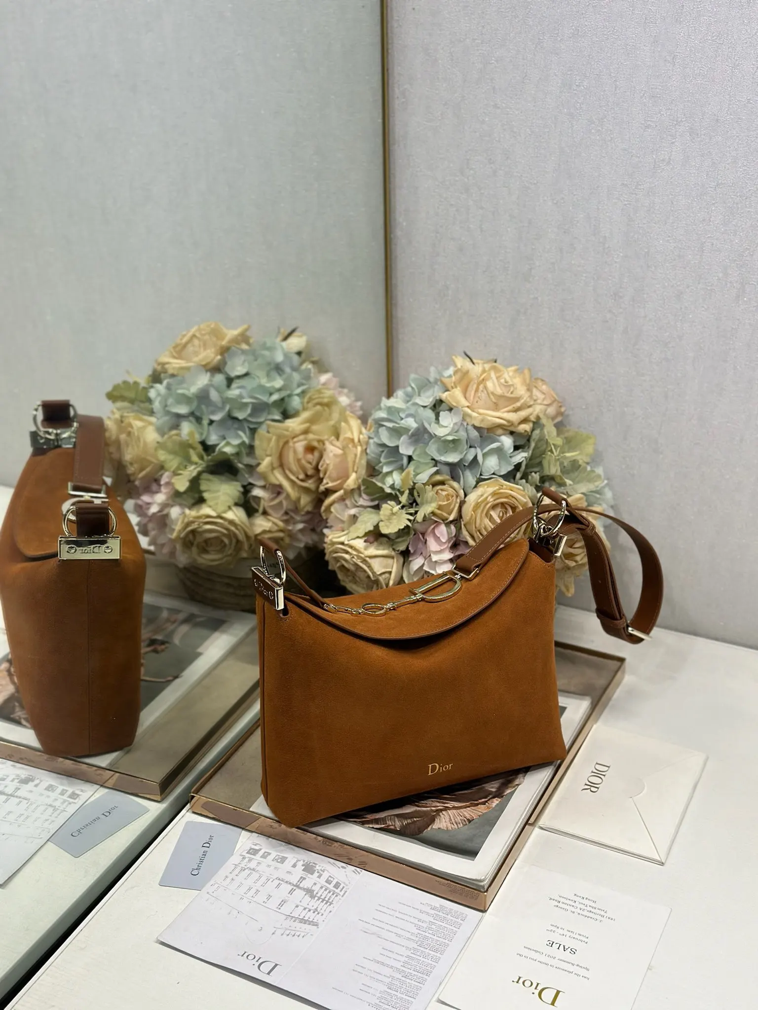 Christian Dior 2026春夏小号手袋系列 棕绒拼皮浅金扣