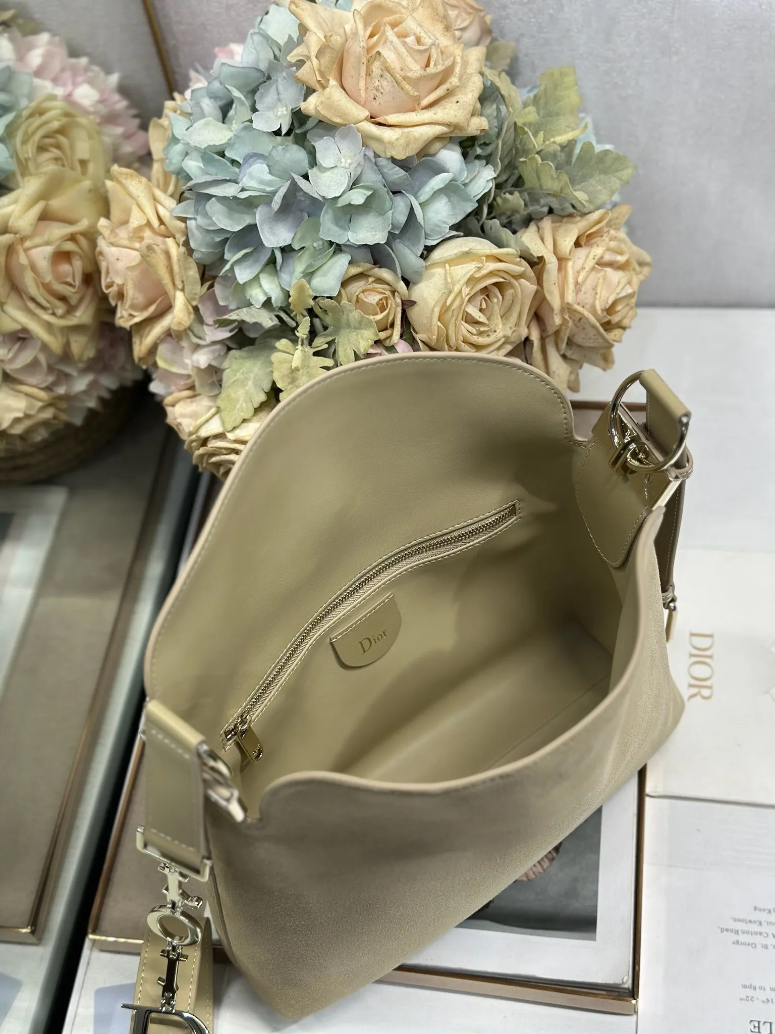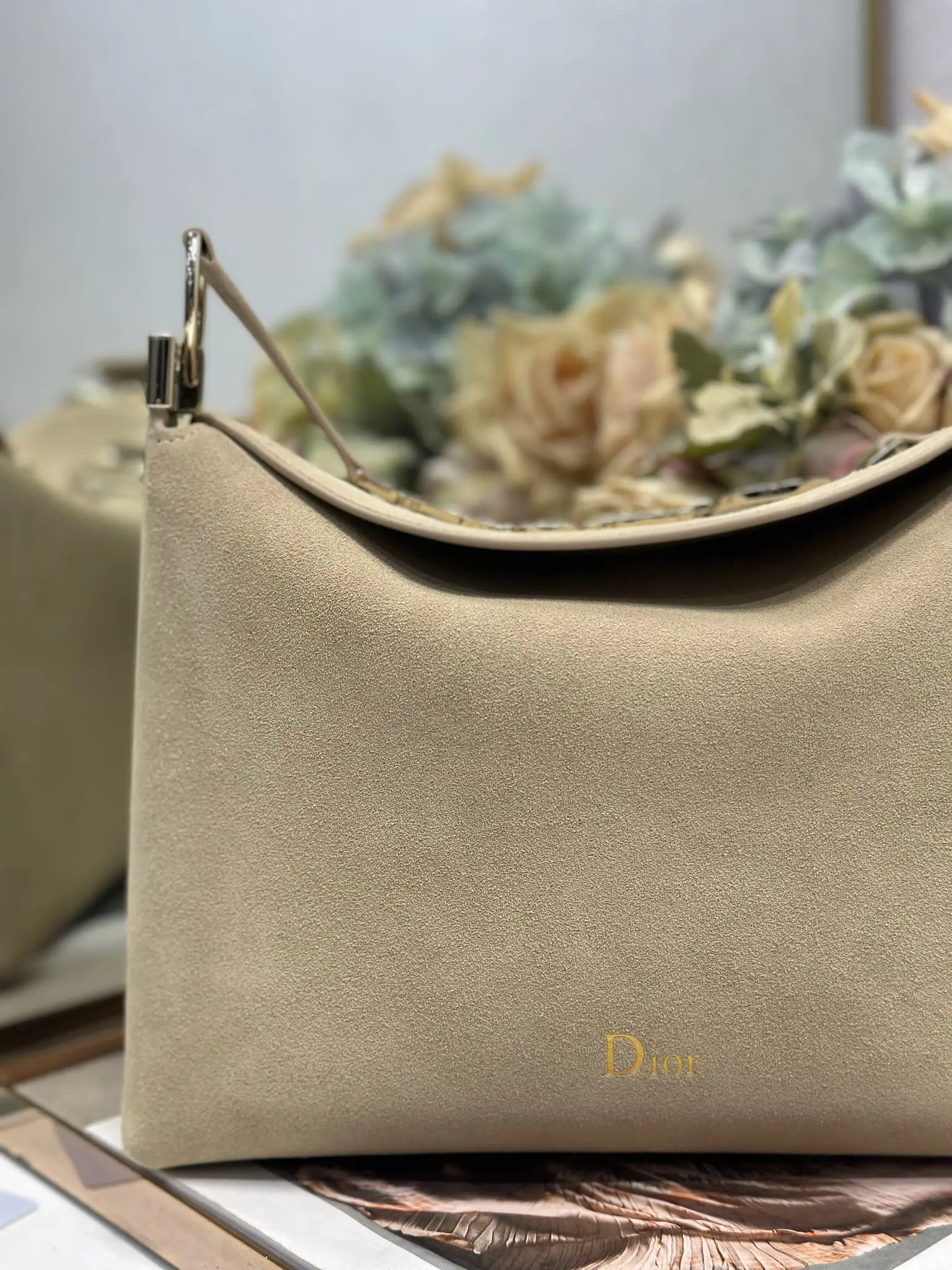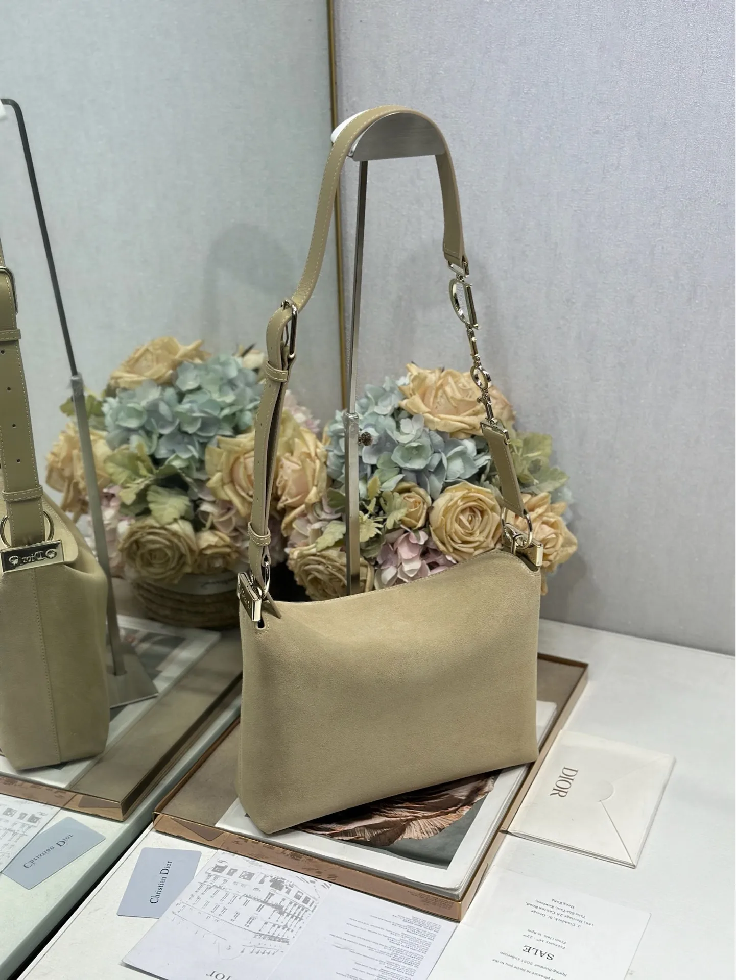 Christian Dior 2026春夏小号手袋系列 杏绒拼皮浅金扣