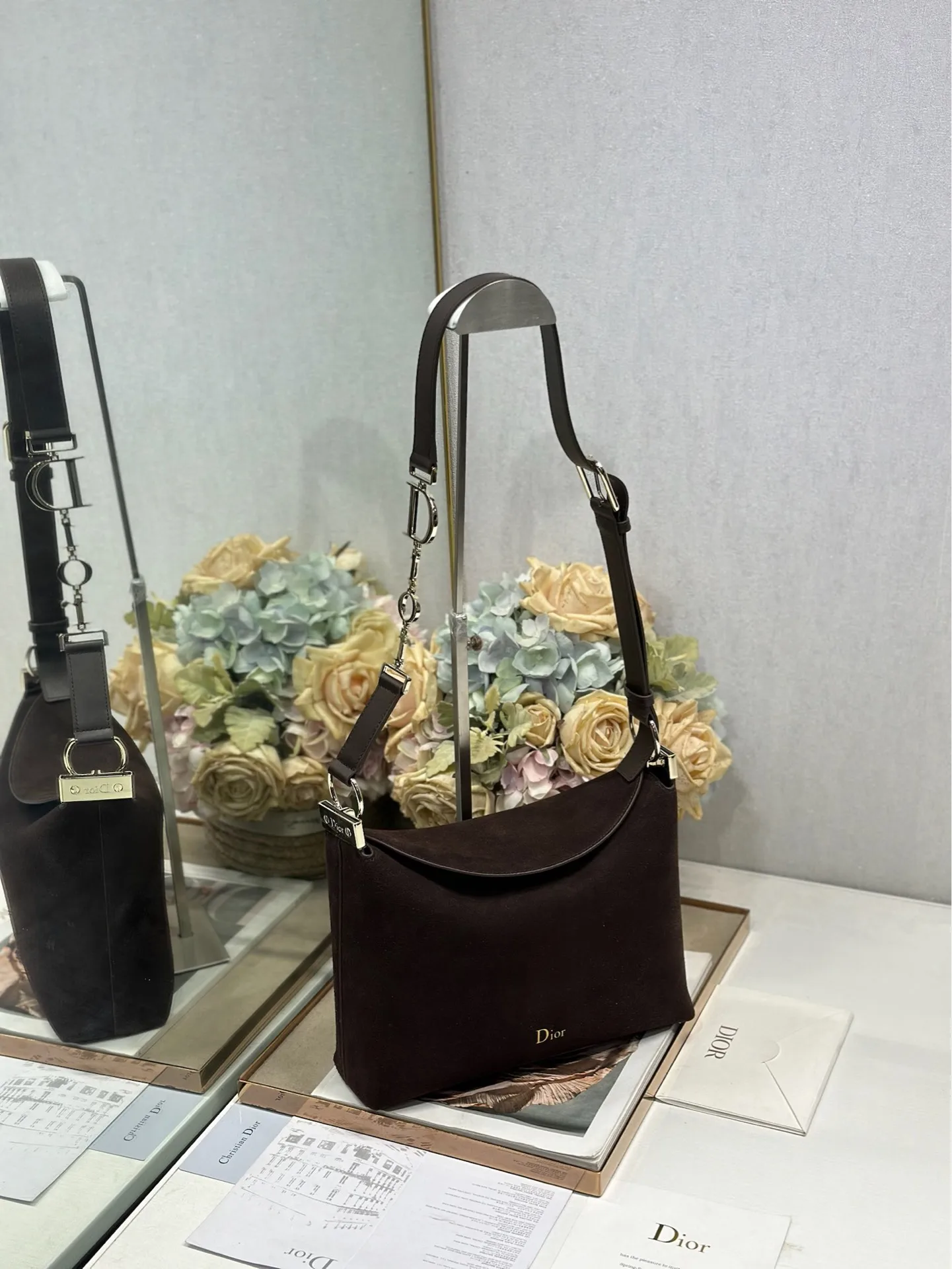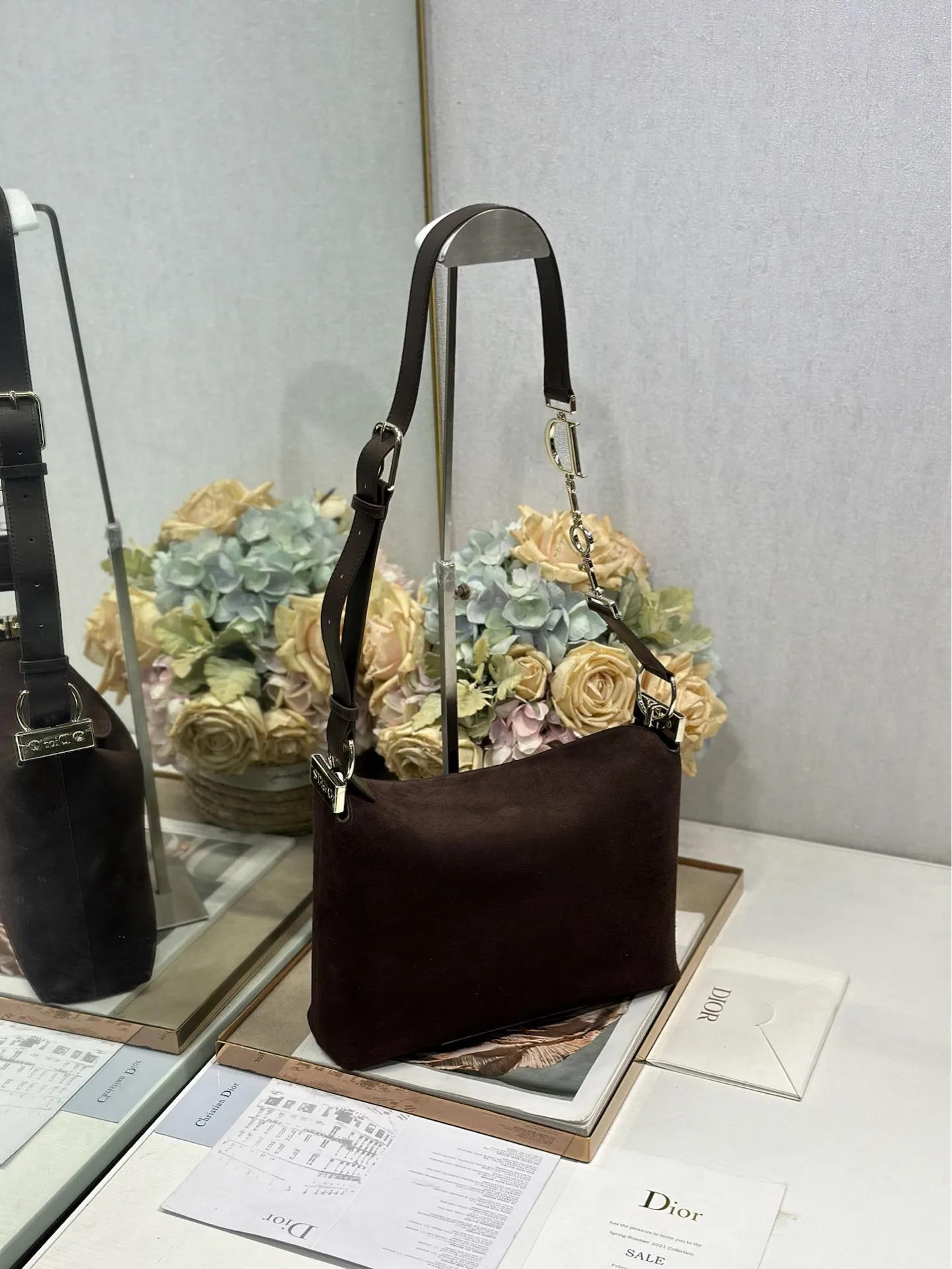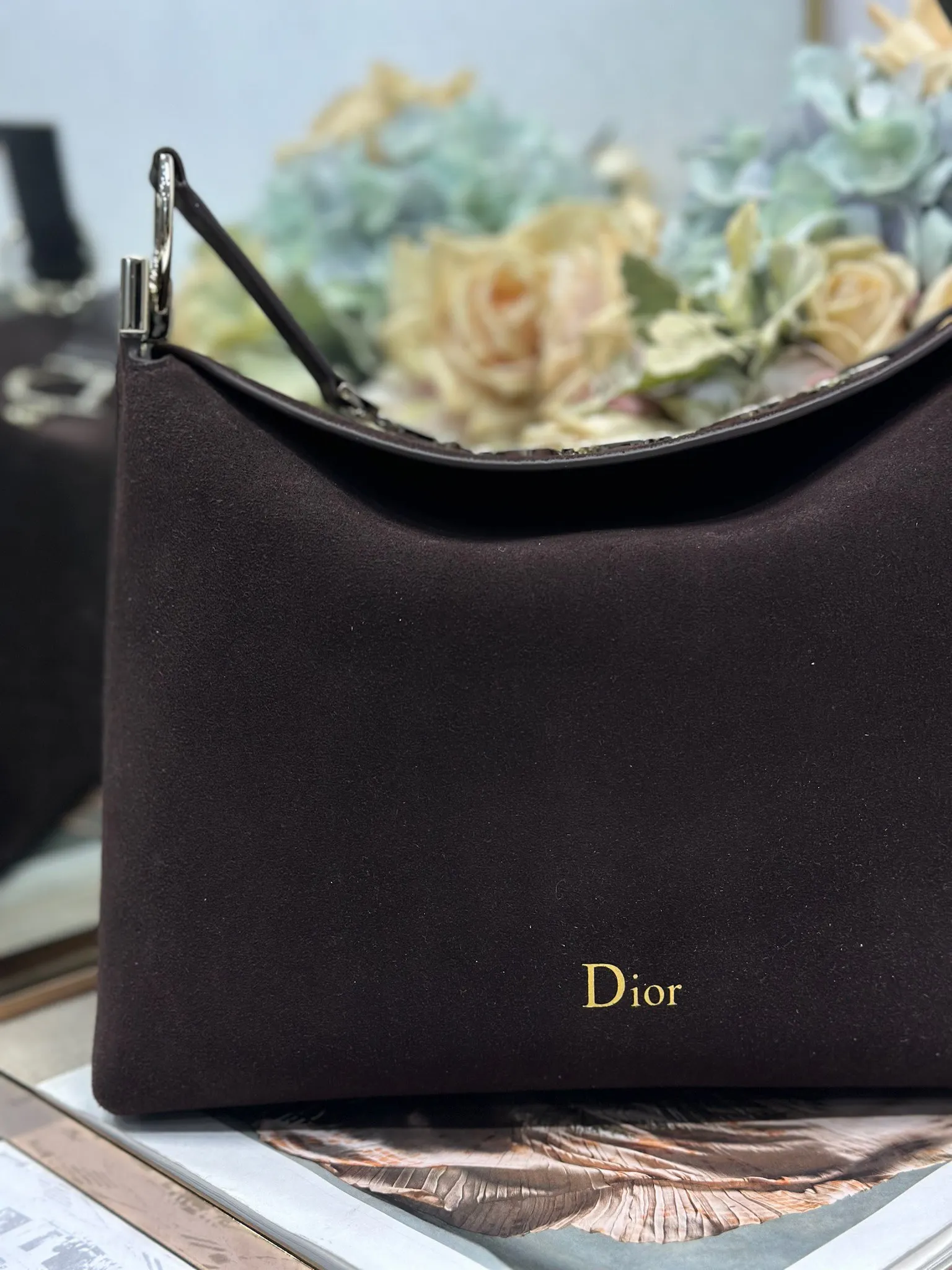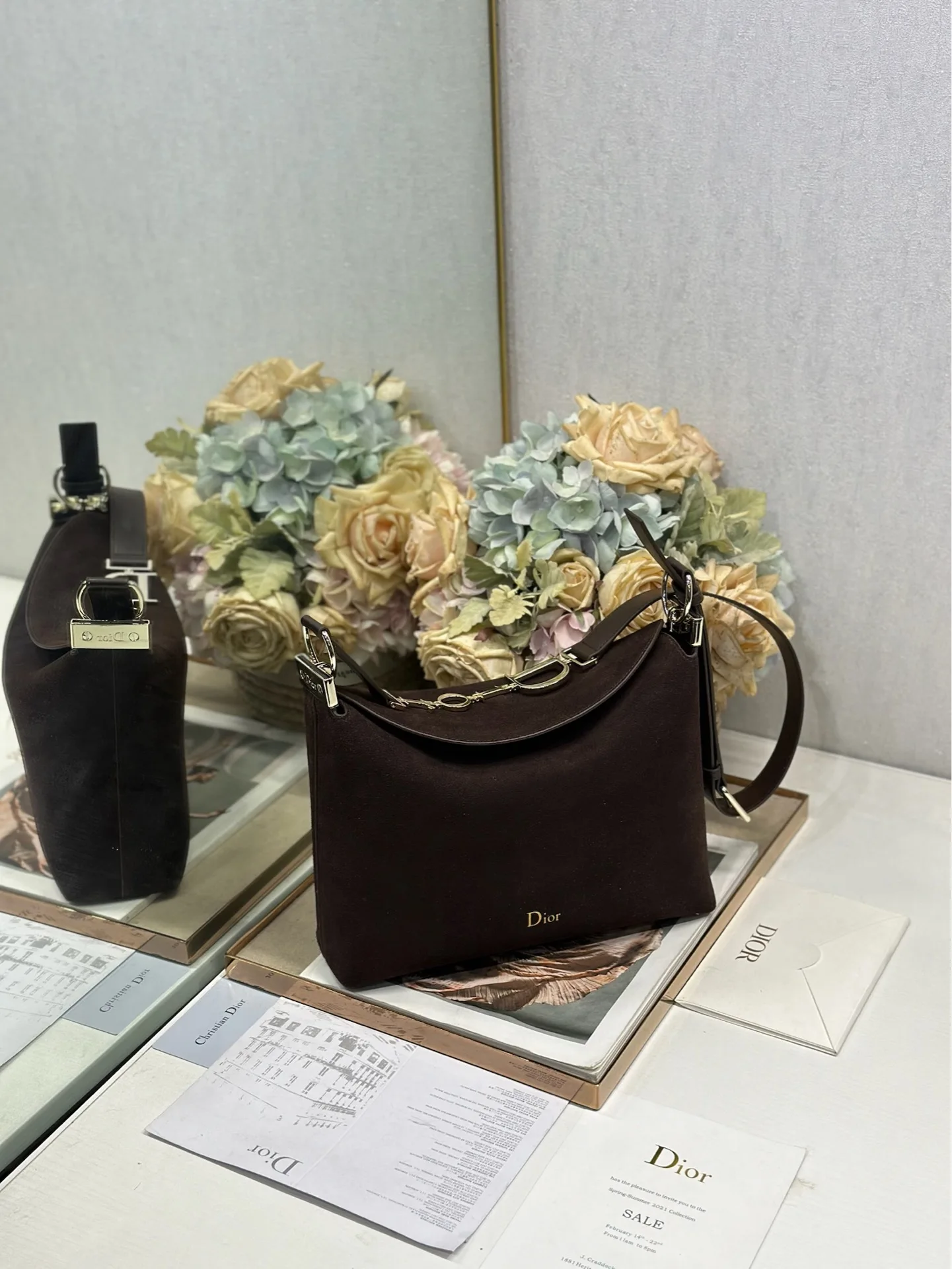 Christian Dior 2026春夏小号手袋系列 咖绒拼皮浅金扣