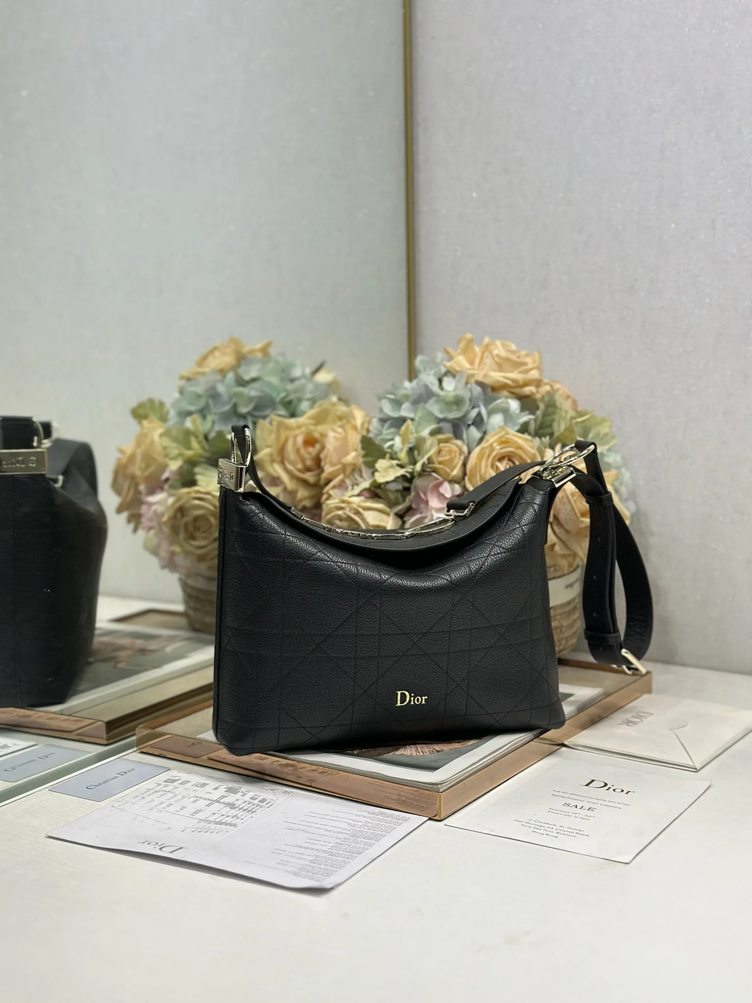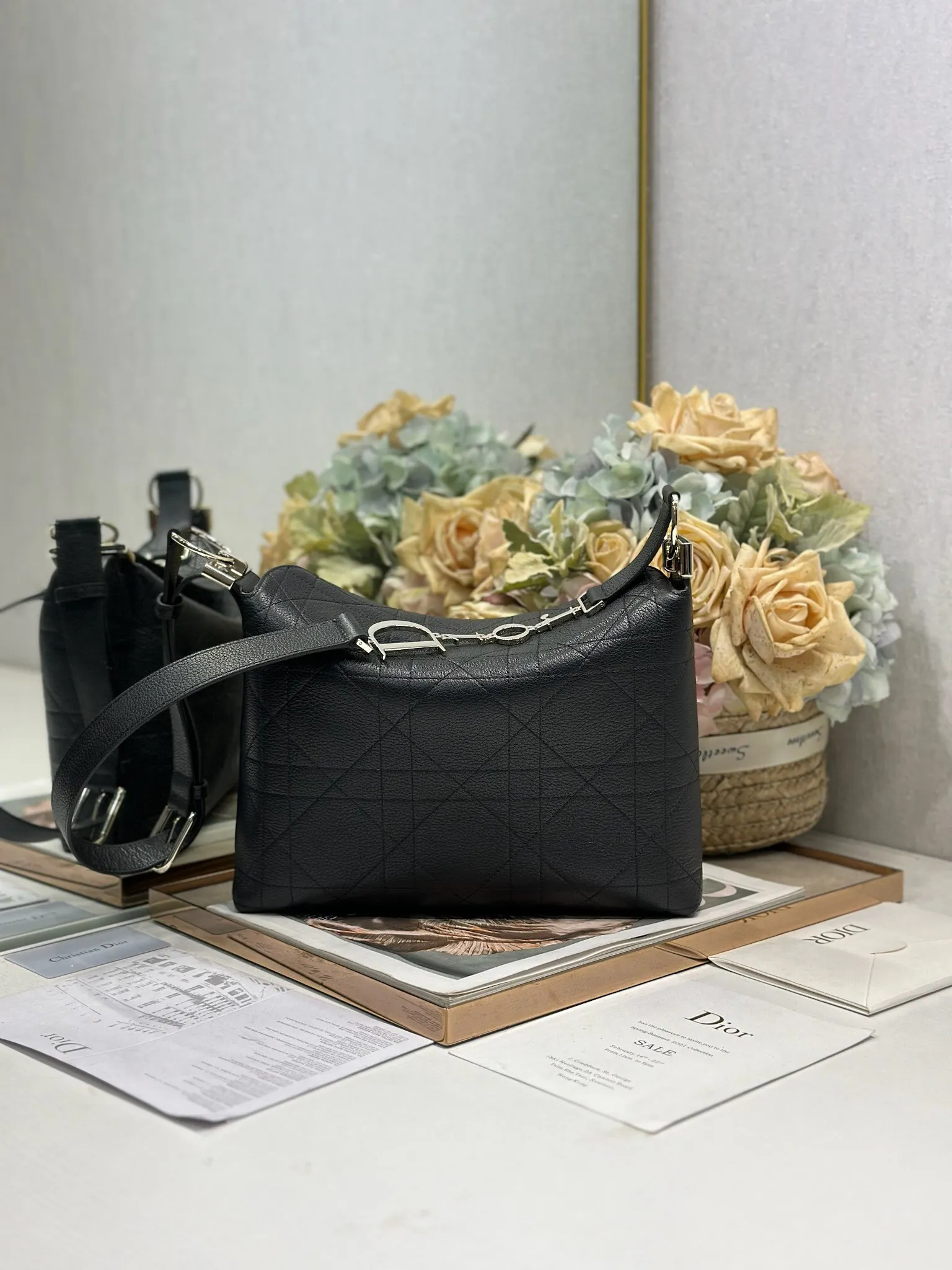 Christian Dior 2026春夏小号手袋系列 黑色山羊纹浅金扣