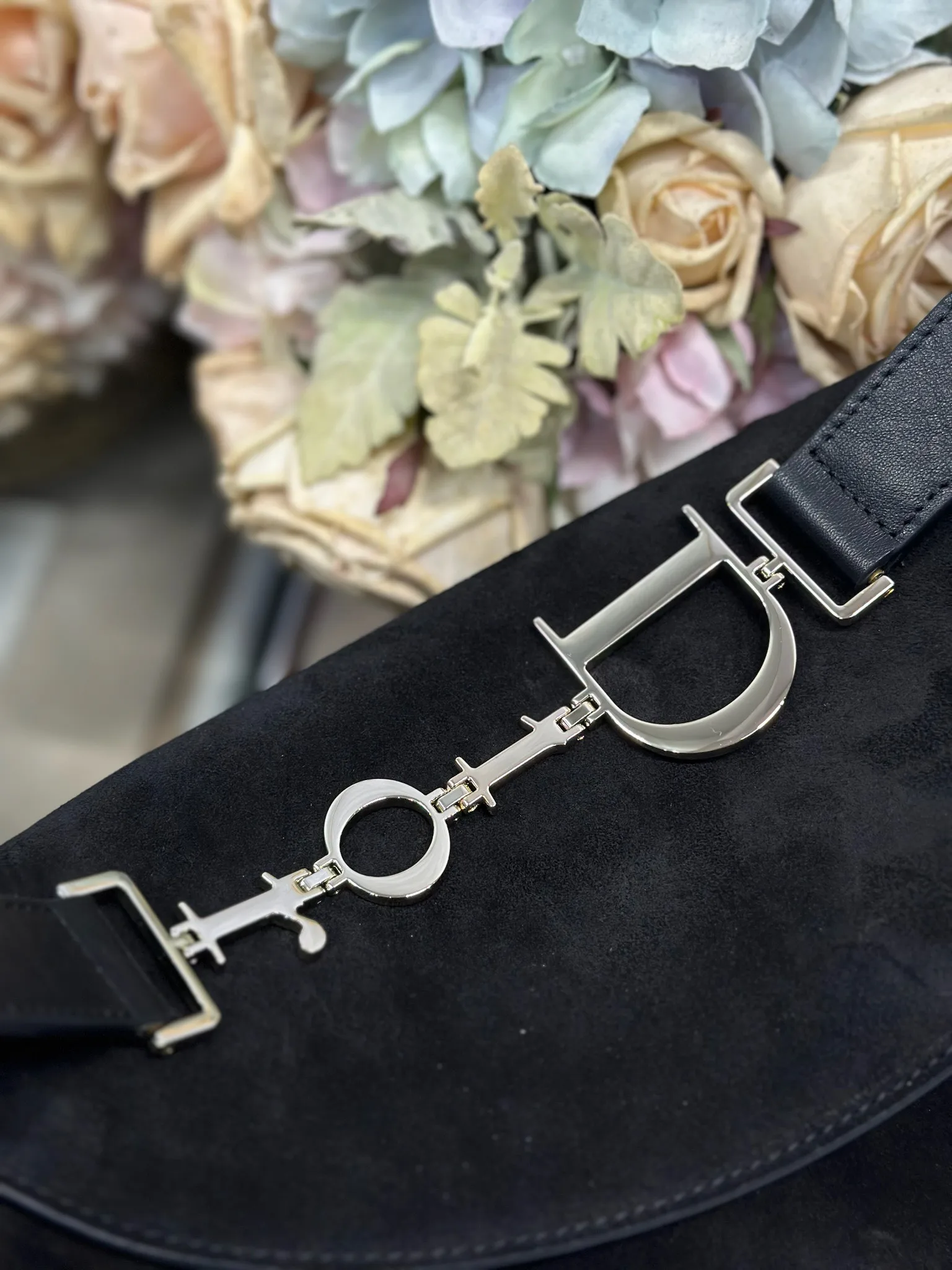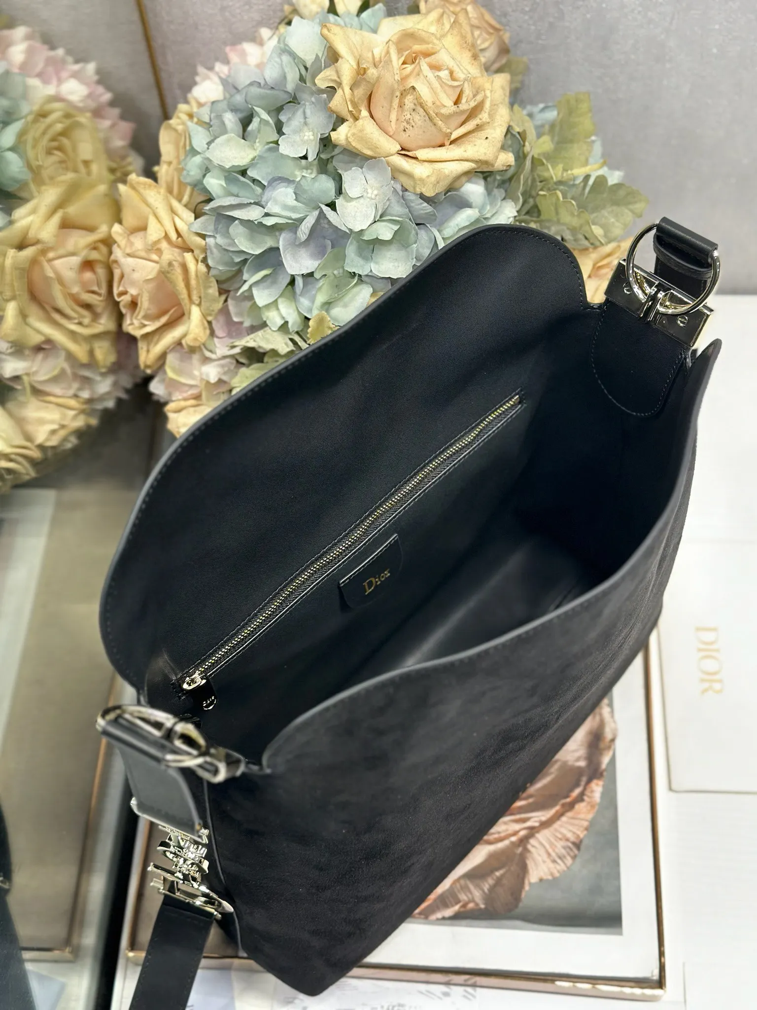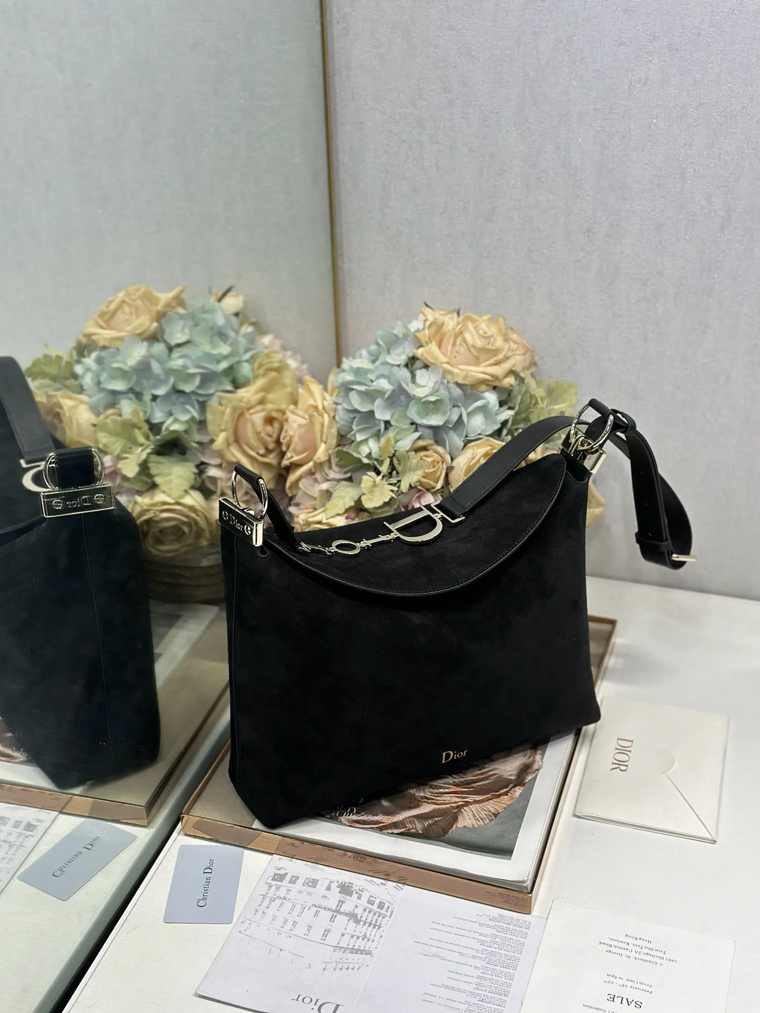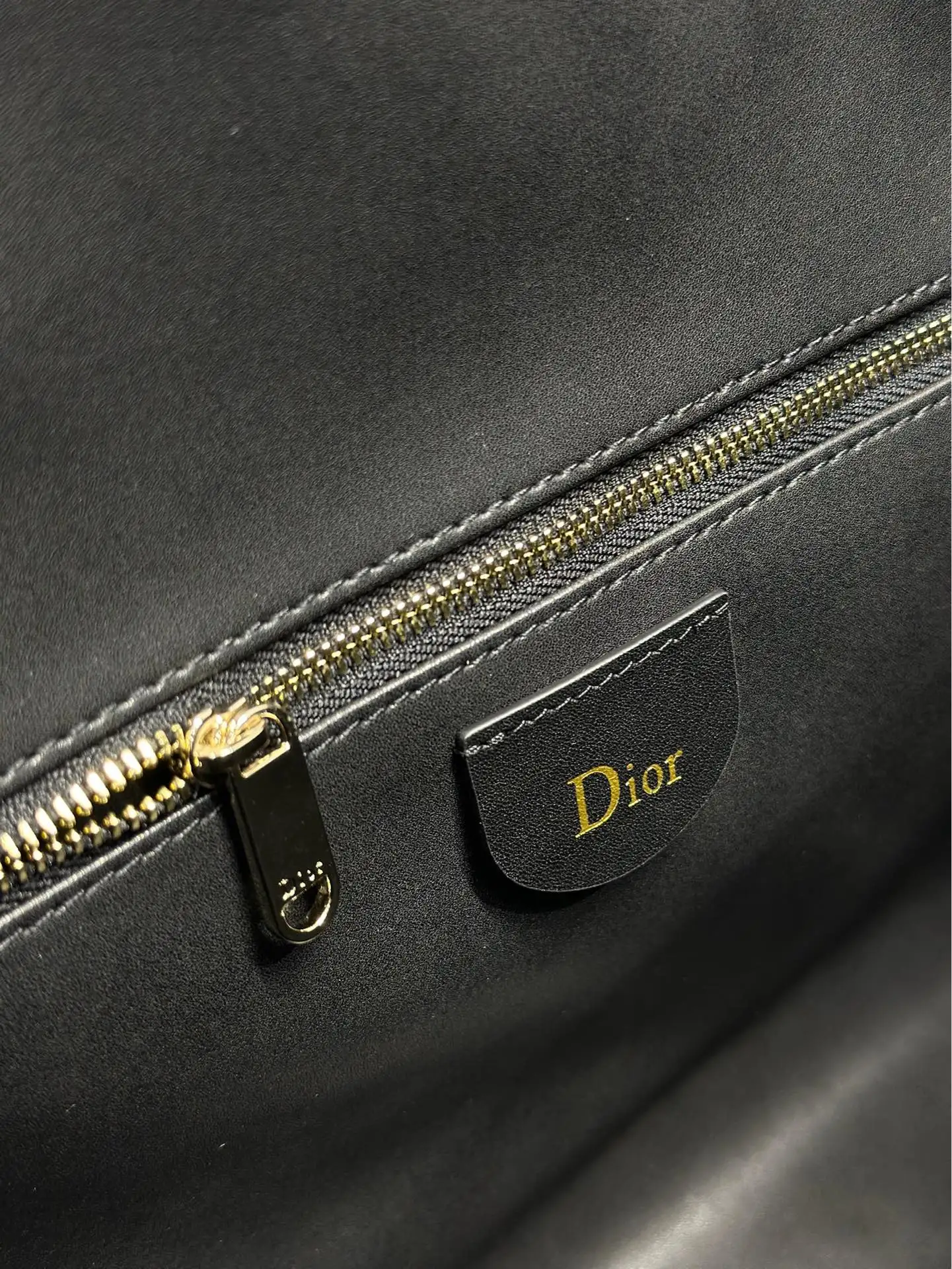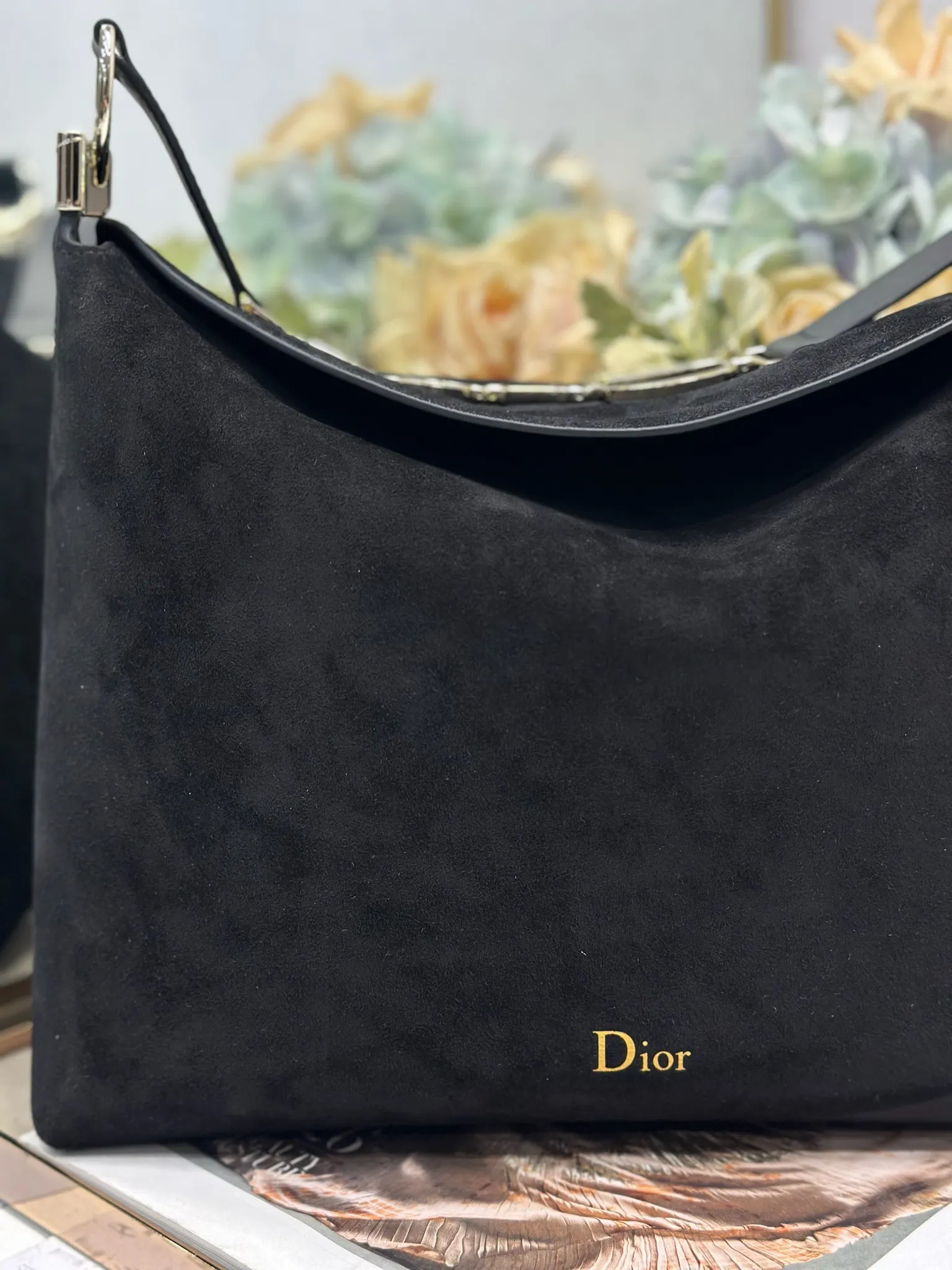 Christian Dior 2026春夏中号手袋系列 黑绒拼皮浅金扣