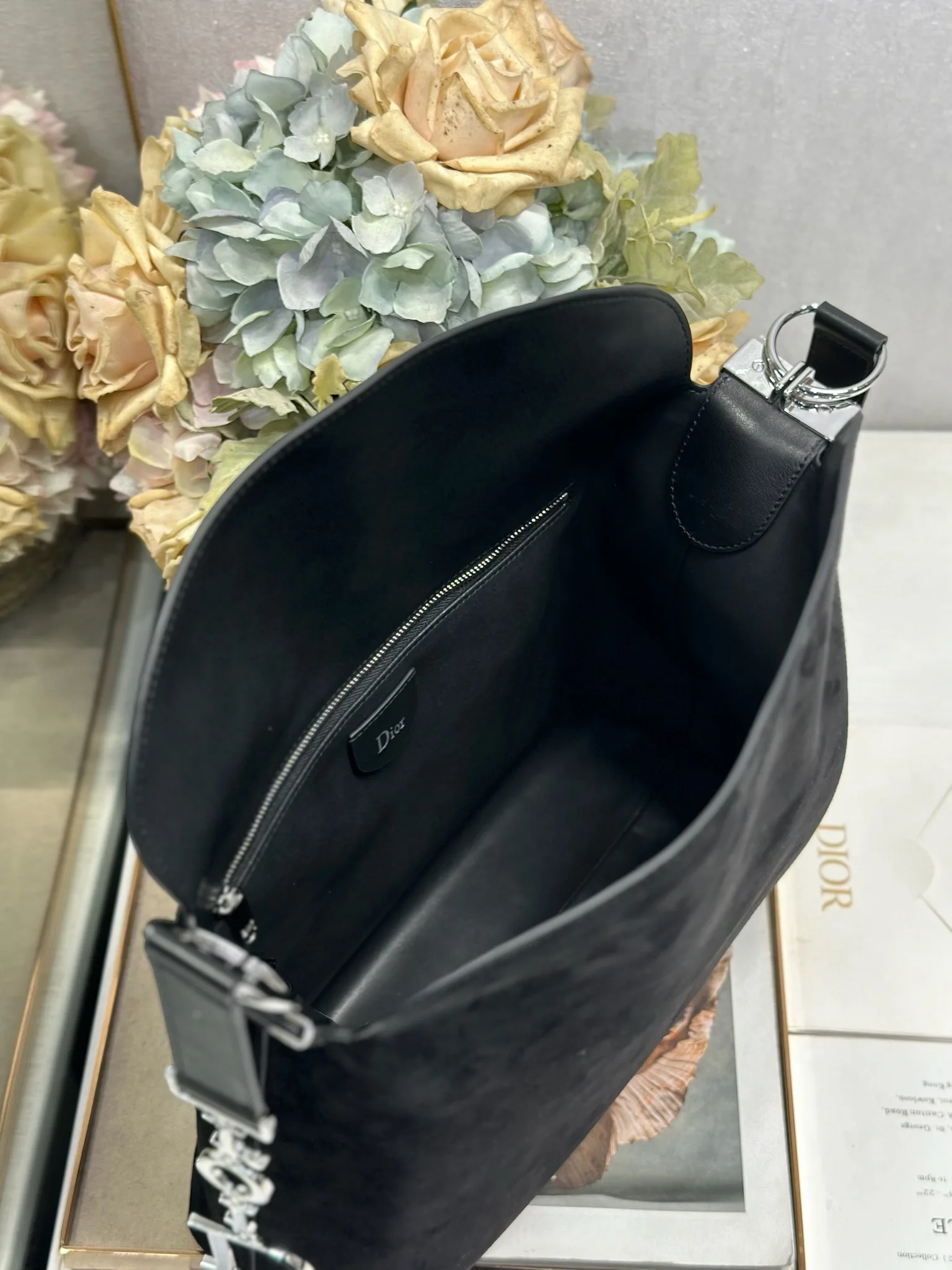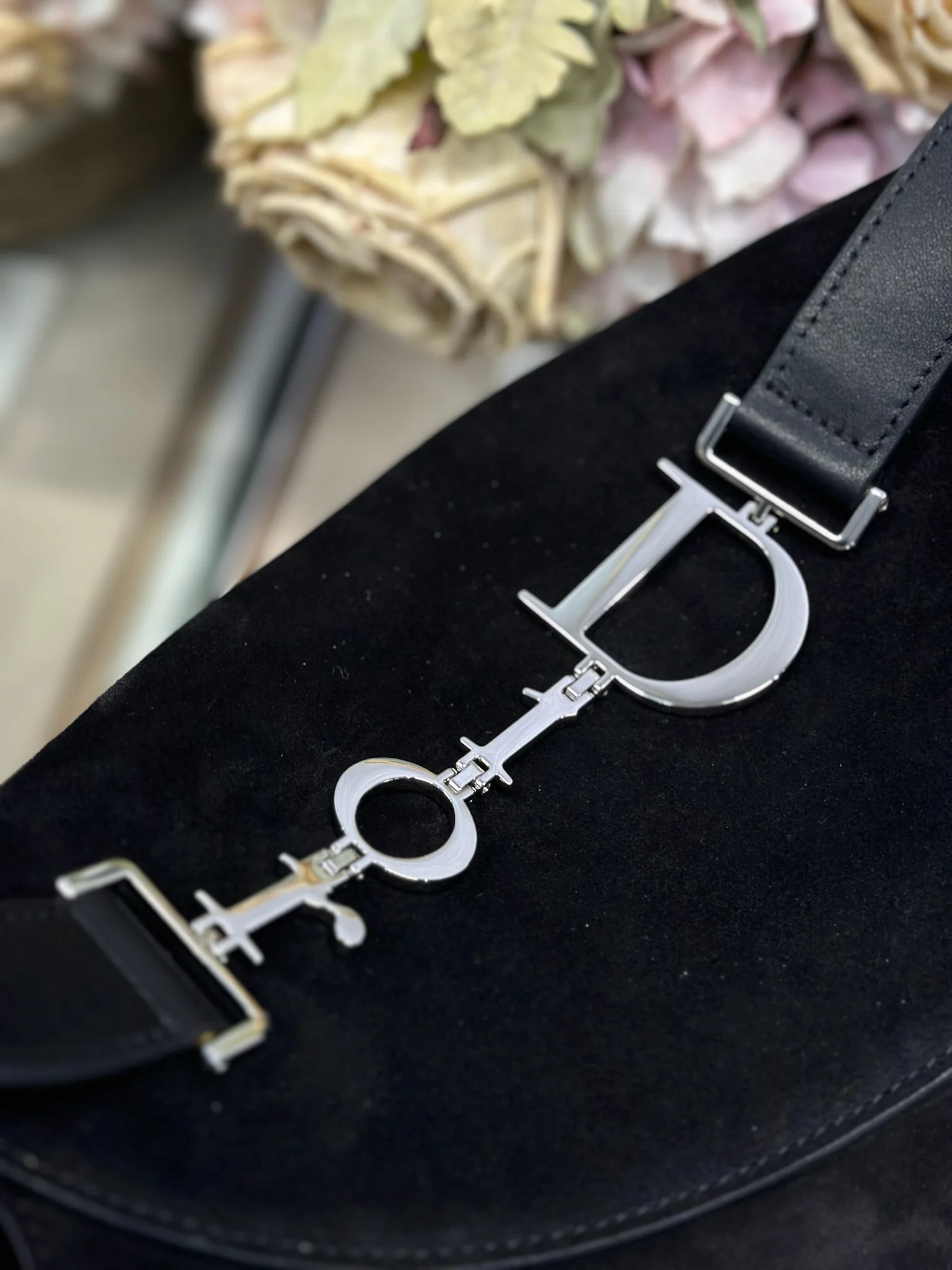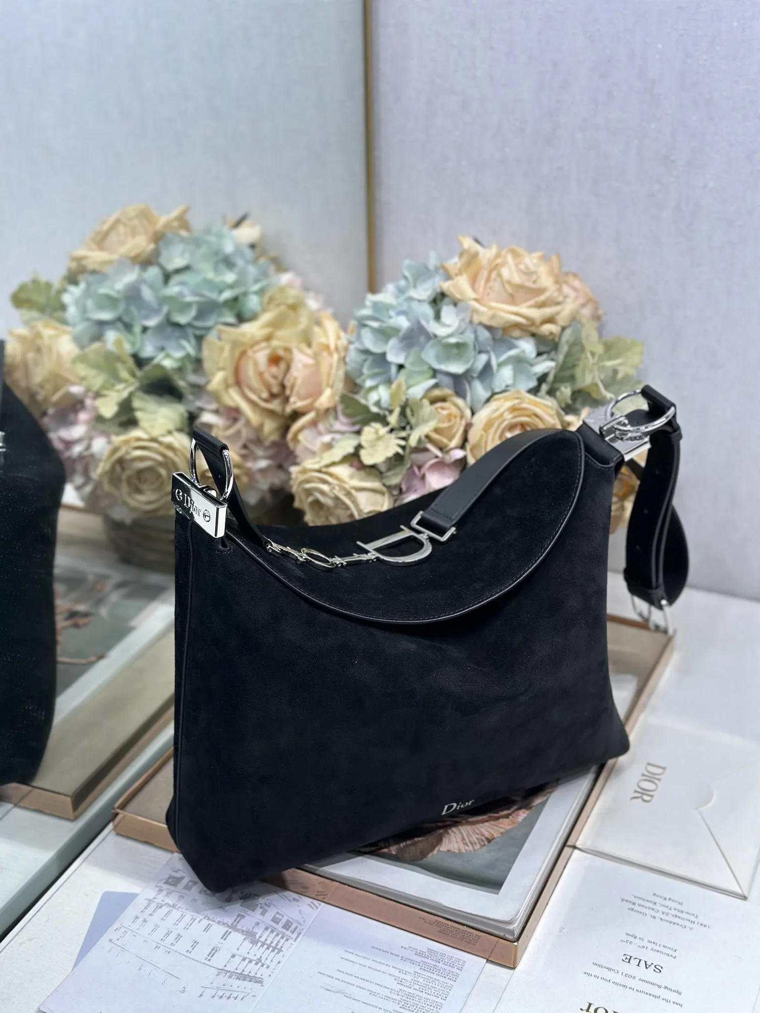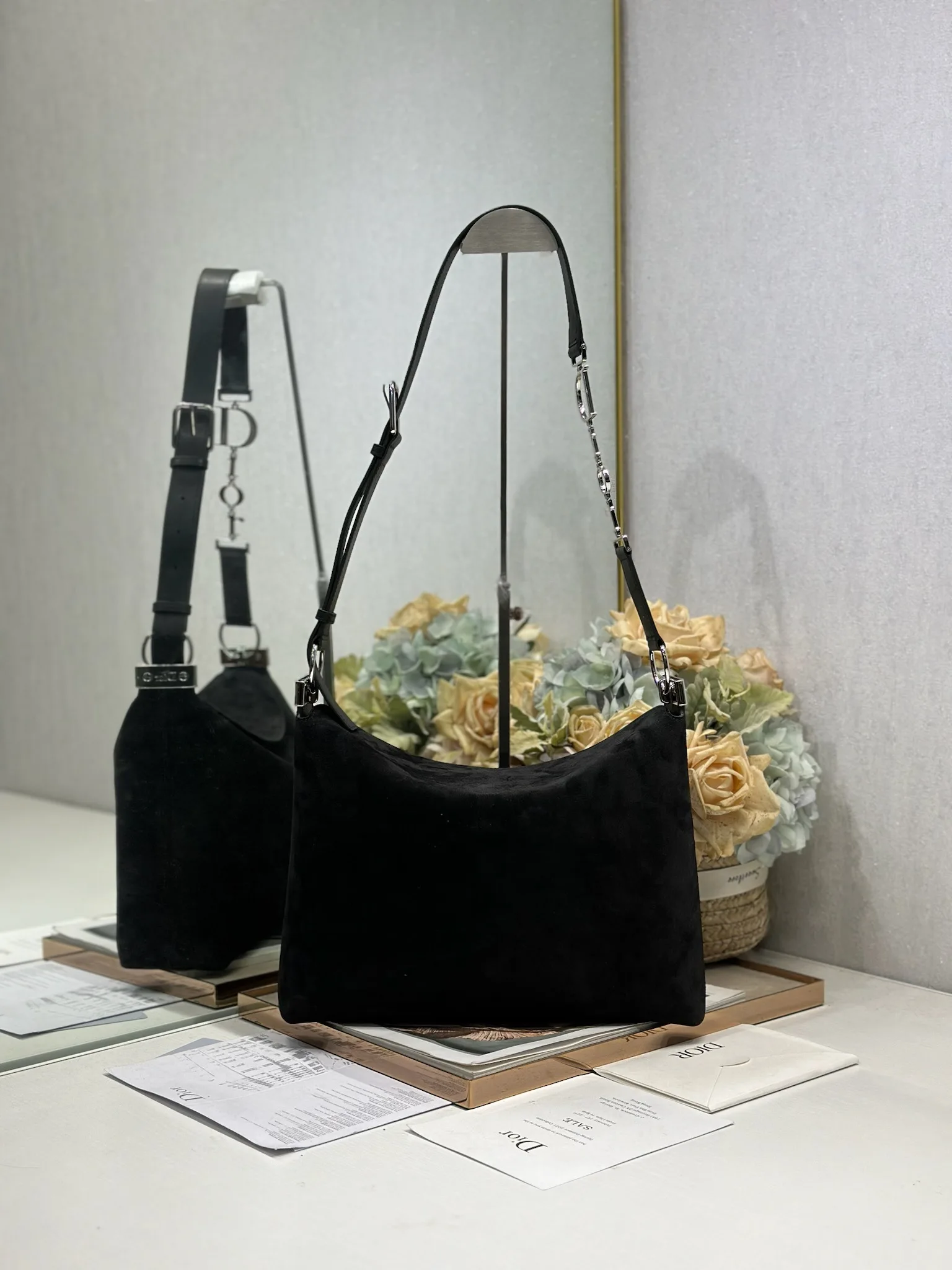 Christian Dior 2026春夏中号手袋系列 黑绒拼皮银扣