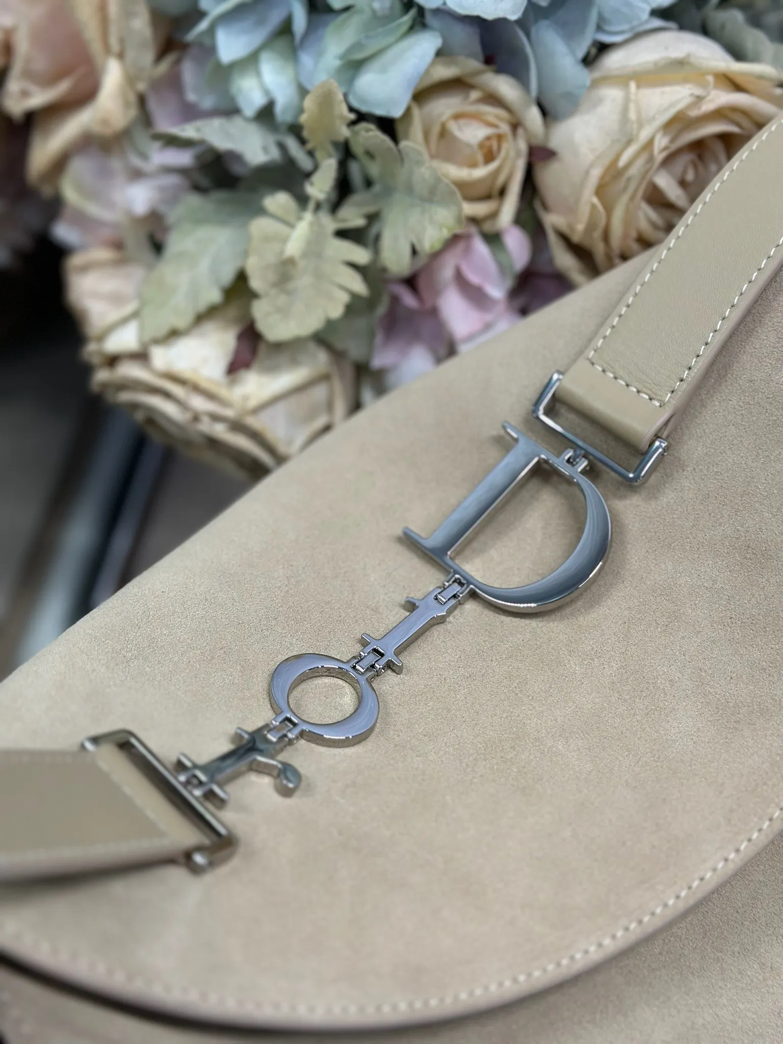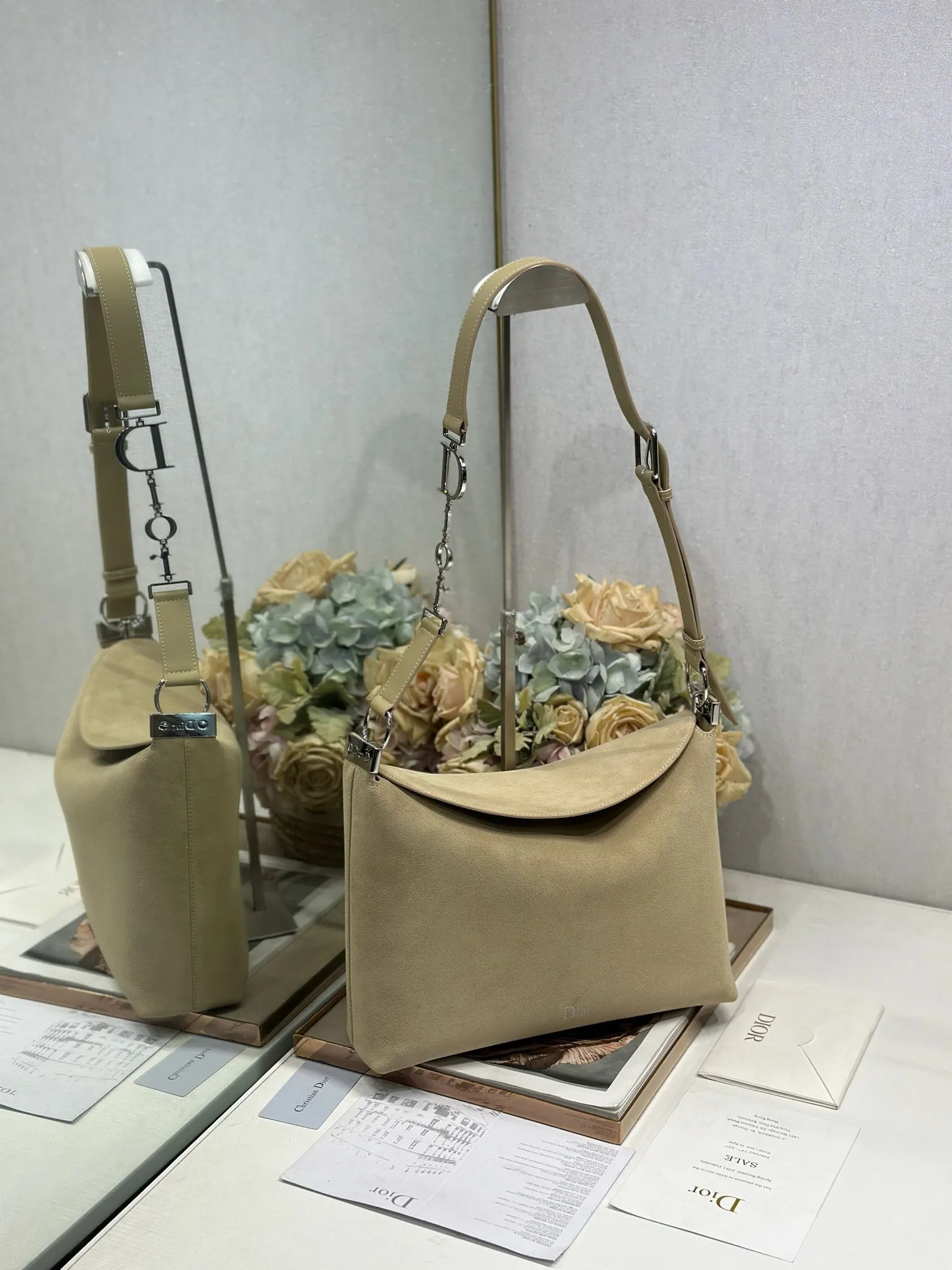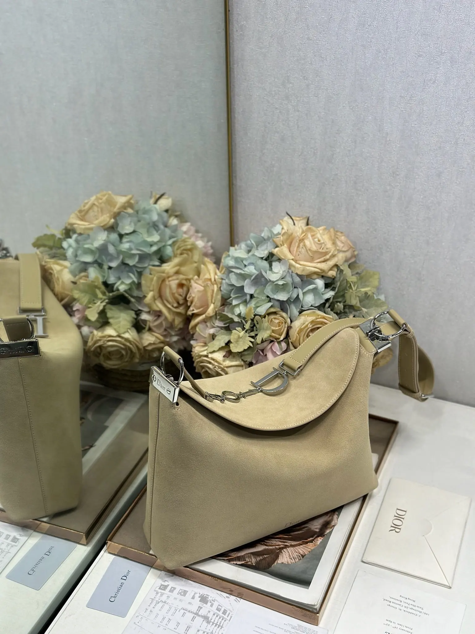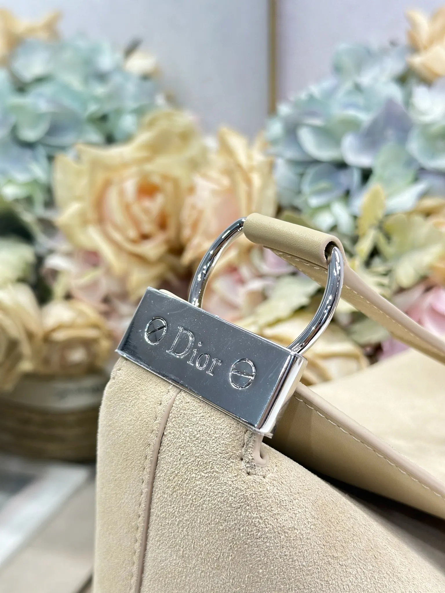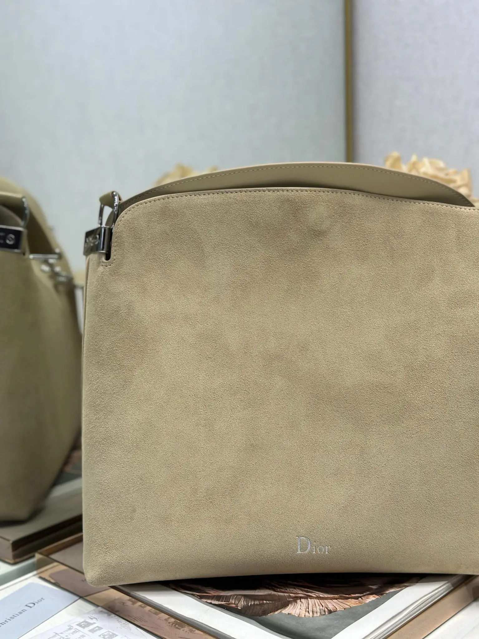 Christian Dior 2026春夏中号手袋系列 杏绒拼皮银扣