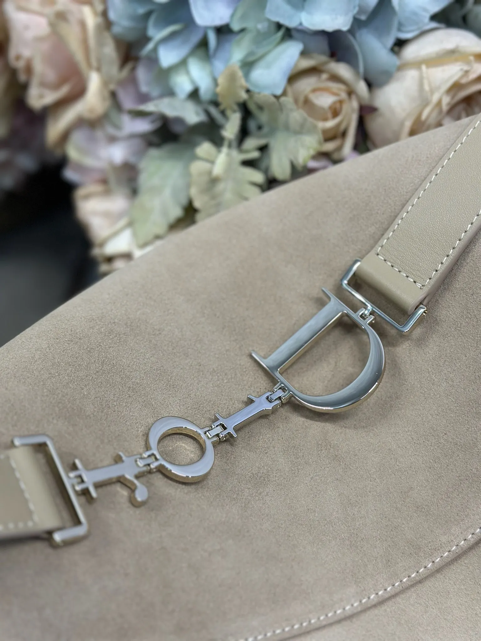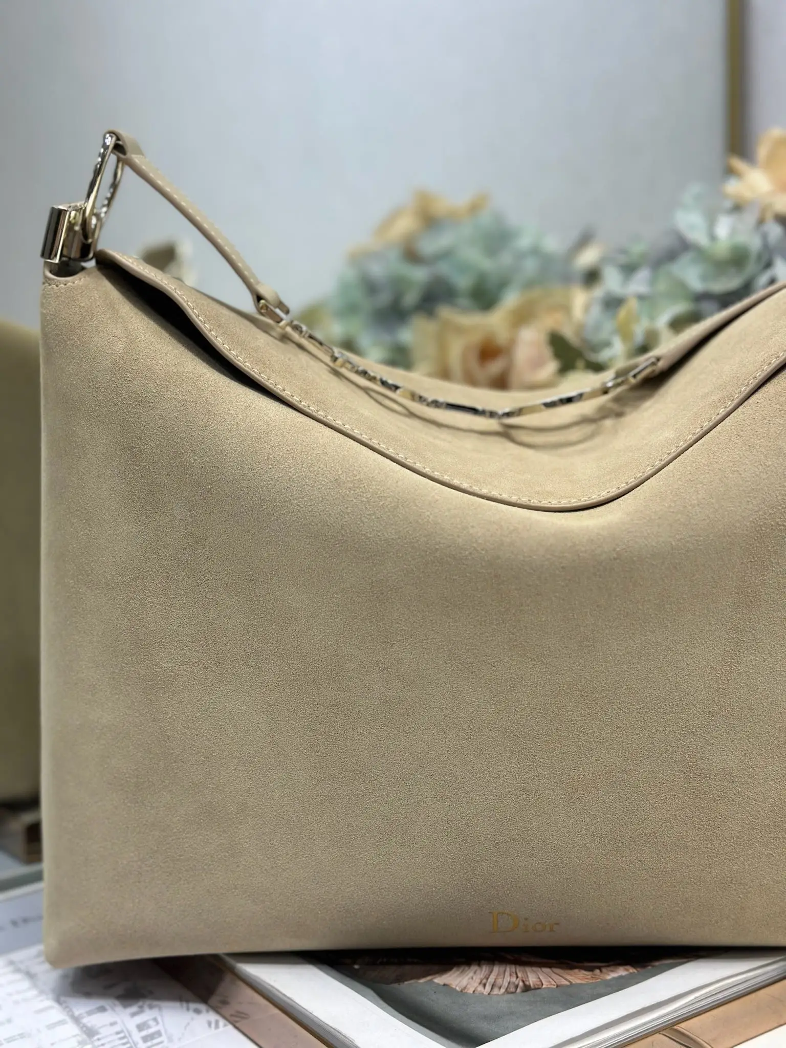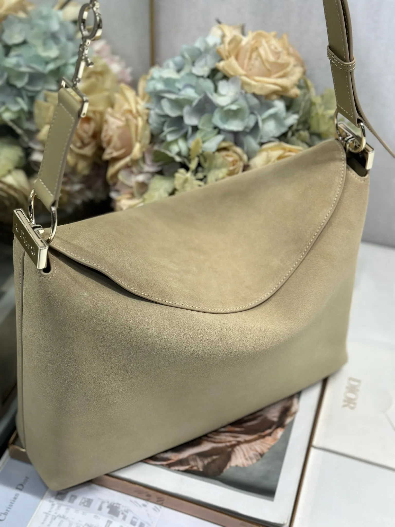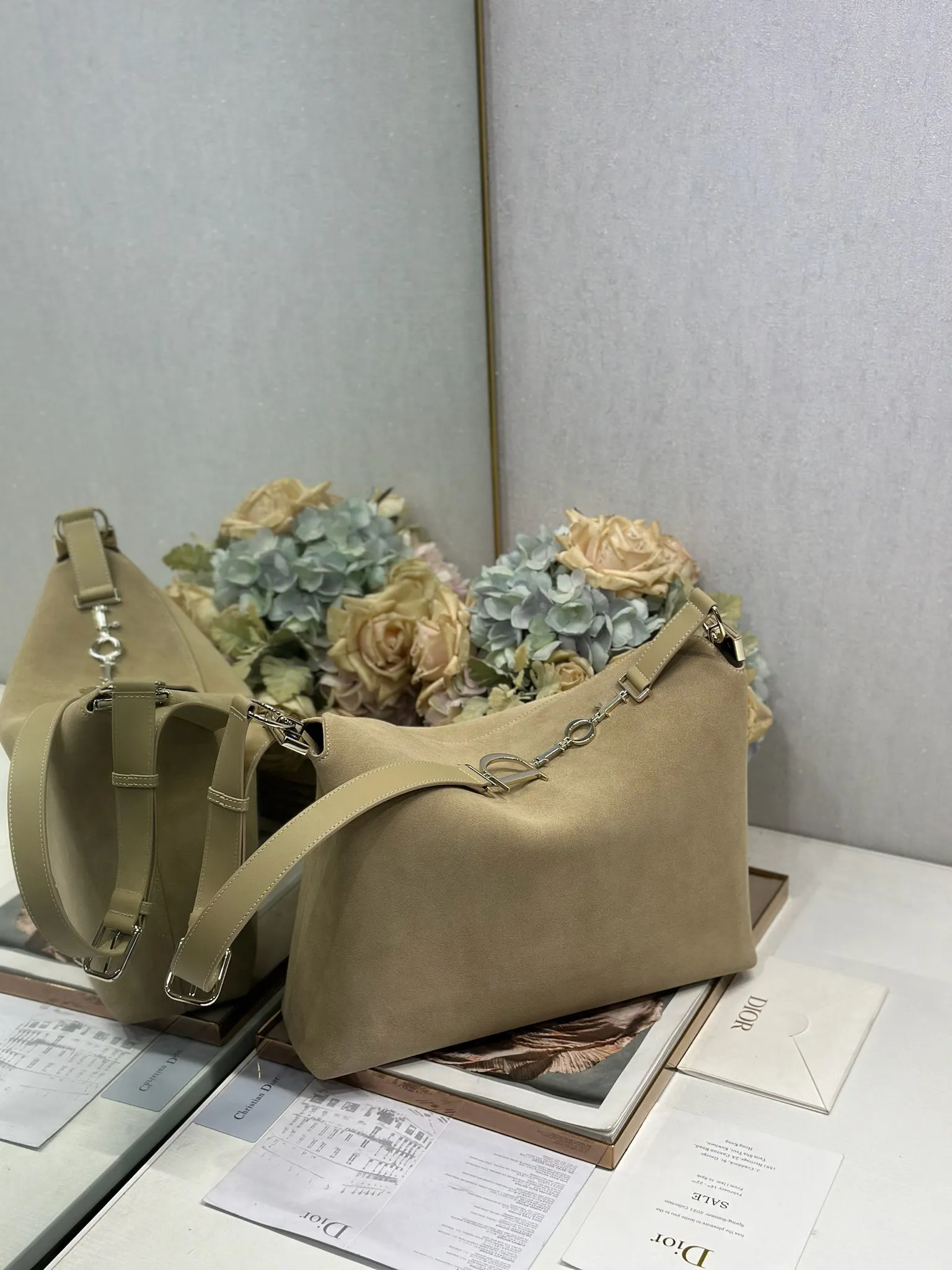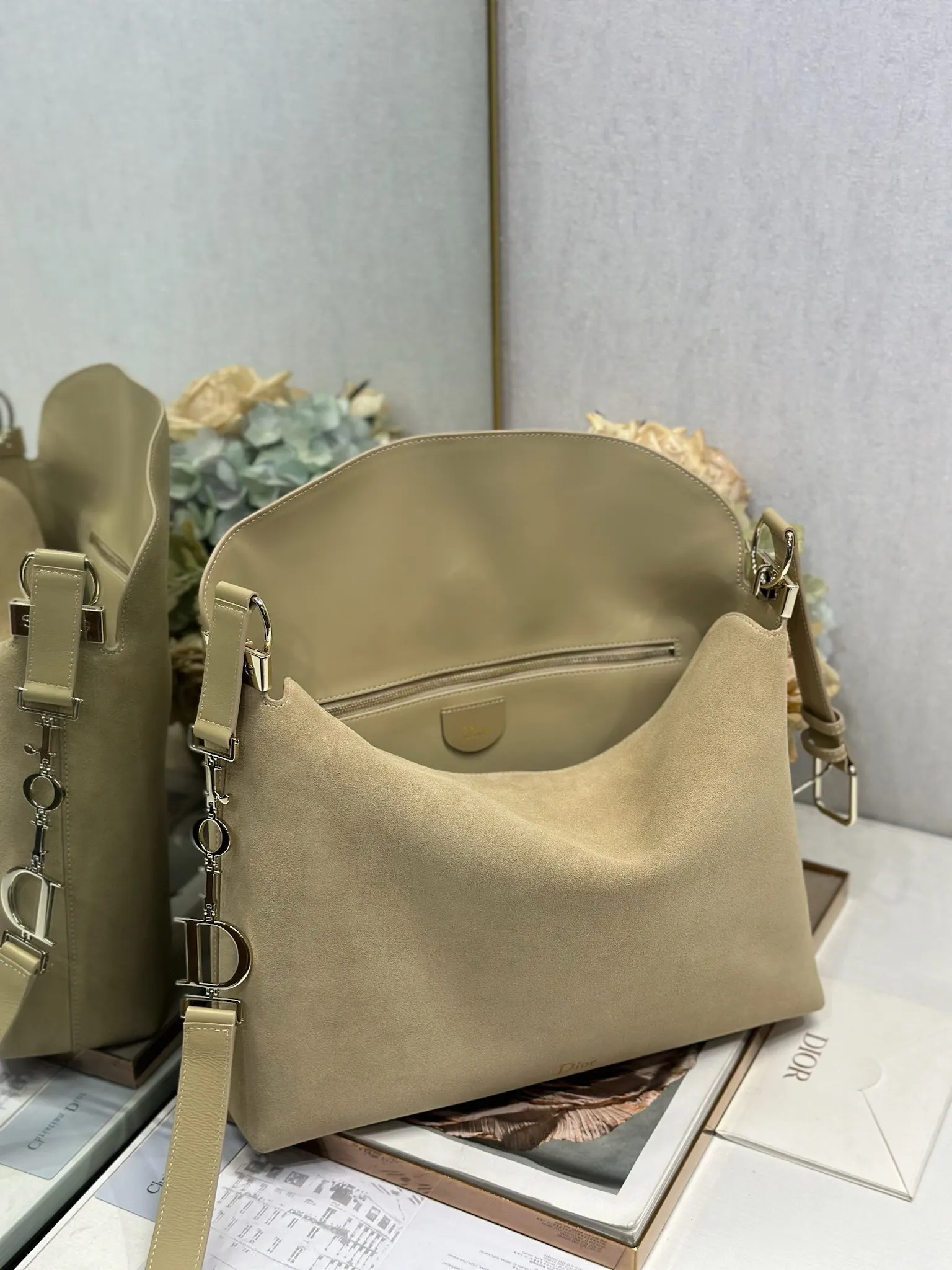Christian Dior 2026春夏大号手袋系列 杏绒拼皮浅金扣