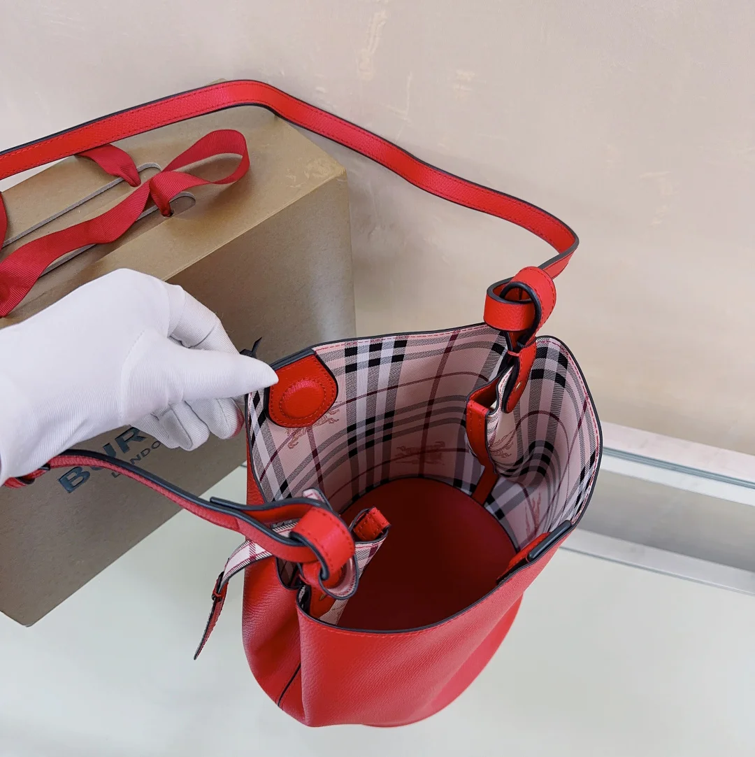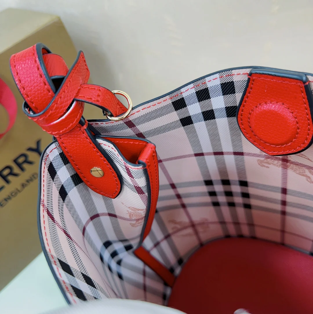 特级 B家简约风格的斜背水桶包 采用轻盈对版手掌纹皮革于意大利高级工匠制成并配有经典 Haymarket 格纹 精巧包身设计 适合放置随身物品可轻松斜挎或肩背 风格时髦而实用 是日夜造型皆宜的理想之选尺寸18.5 x 15 x 23.5cm型号1581