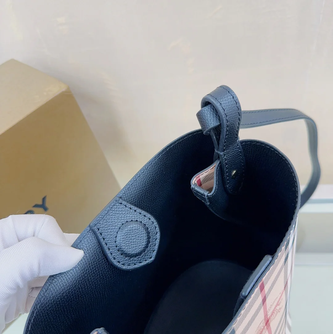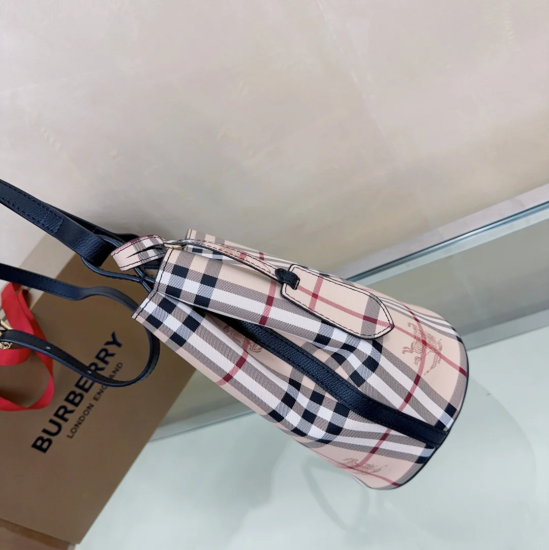 巴宝莉 1581 格纹斜背水桶包 女士斜挎包