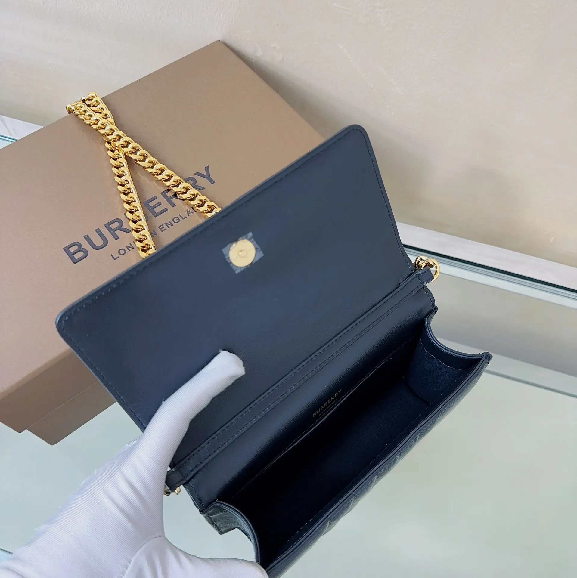 特级 B家最新小羊皮手拿包 斜跨包设计灵感源自品牌标志性格纹 装饰TB专属标识 20 × 5 x 12cm型号1761
