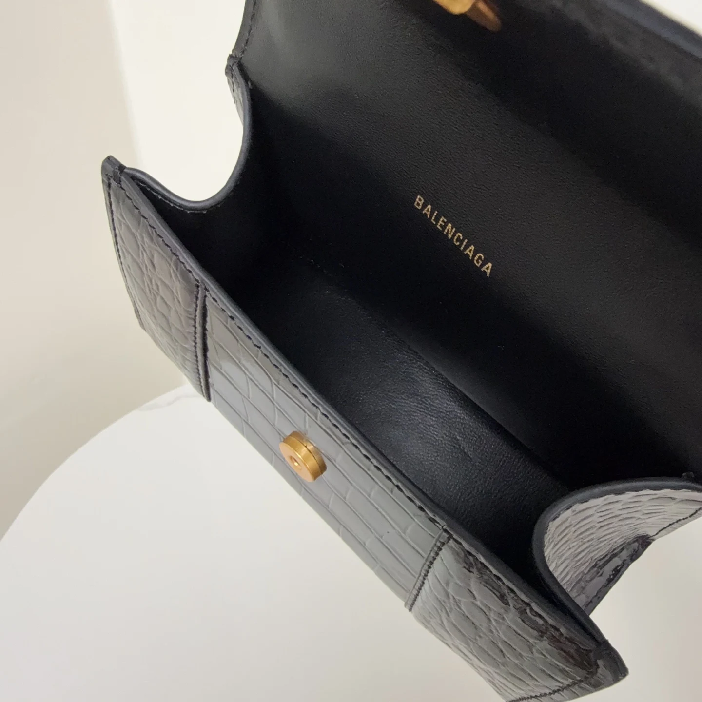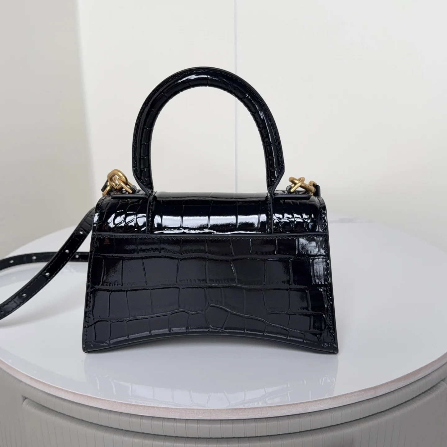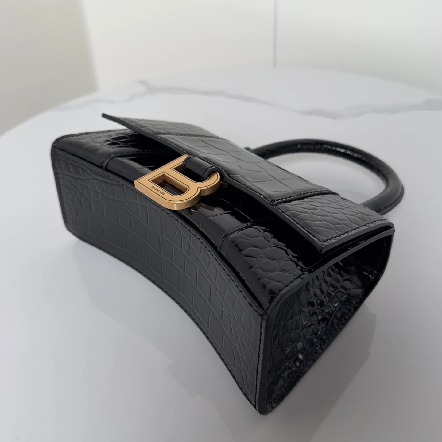 Xs小号19cm. 鳄鱼黑配金扣 只做好品质Balenciag* 巴黎.世家 经典款沙漏包.独特的标志性弧线形状造型极具辨识度 一眼就让人眼前一亮呀超炫酷 外观呈现一轮半月状上坠一个金属B形拉环牛皮质感也非常感人非常有腔调 内里进口羊皮细腻柔软的质感 手拎斜挎都好看到爆 货号188002