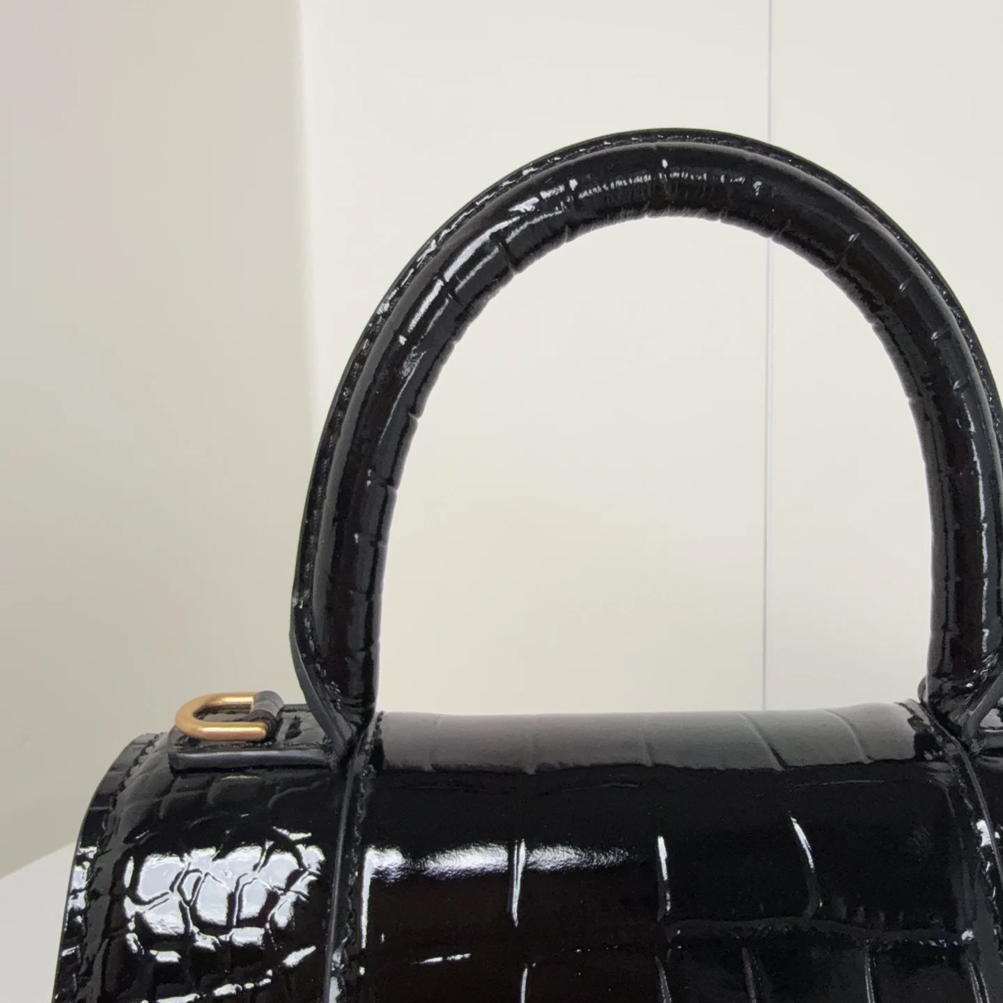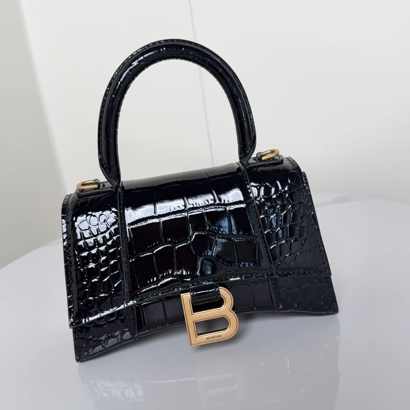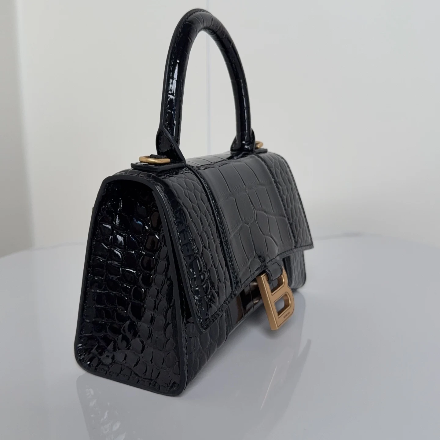 Xs小号19cm. 鳄鱼黑配金扣 只做好品质Balenciag* 巴黎.世家 经典款沙漏包.独特的标志性弧线形状造型极具辨识度 一眼就让人眼前一亮呀超炫酷 外观呈现一轮半月状上坠一个金属B形拉环牛皮质感也非常感人非常有腔调 内里进口羊皮细腻柔软的质感 手拎斜挎都好看到爆 货号188002