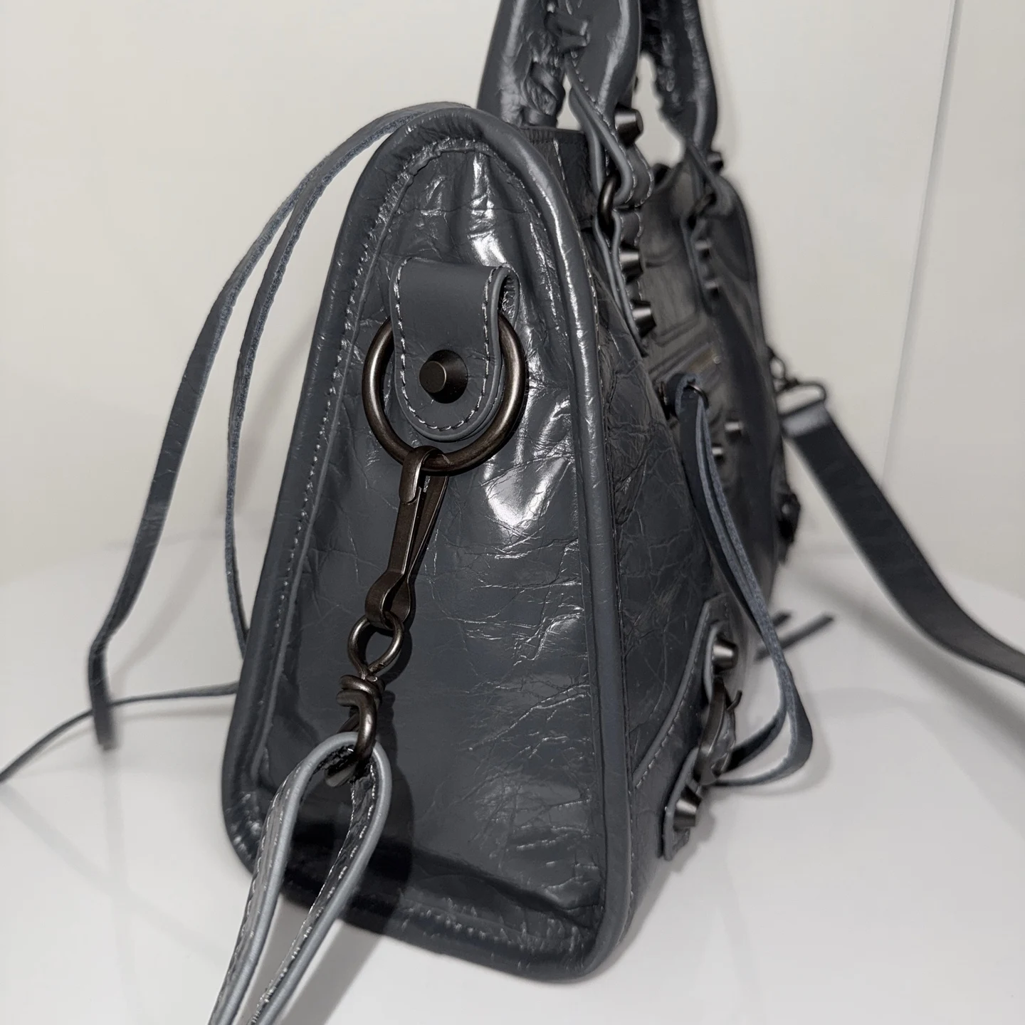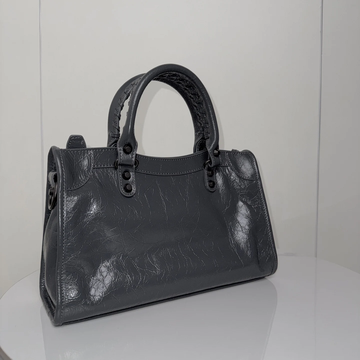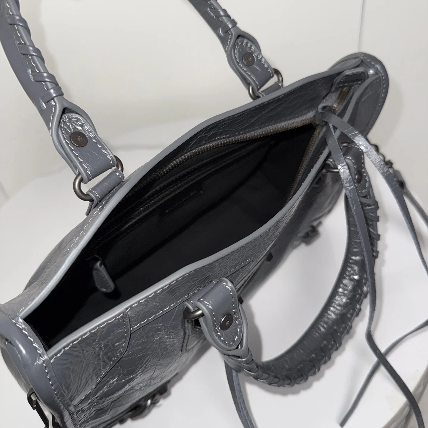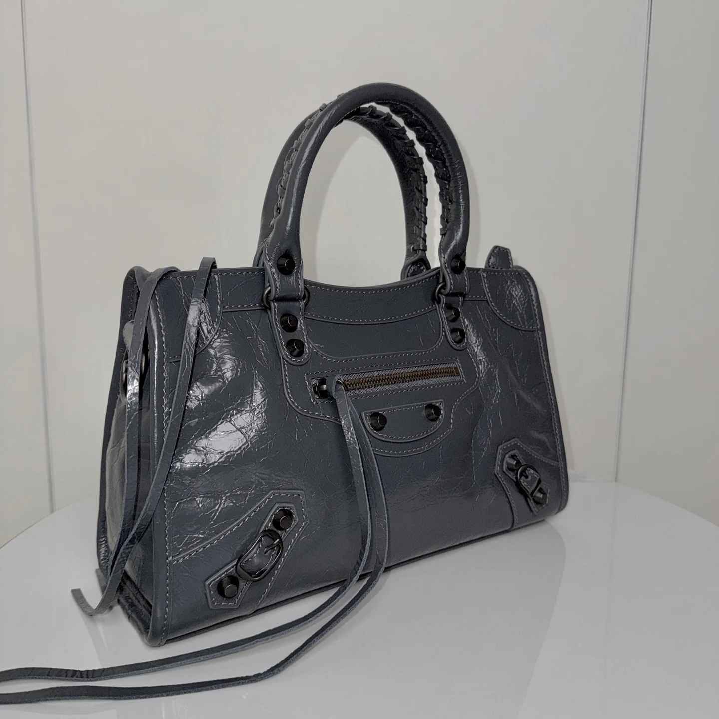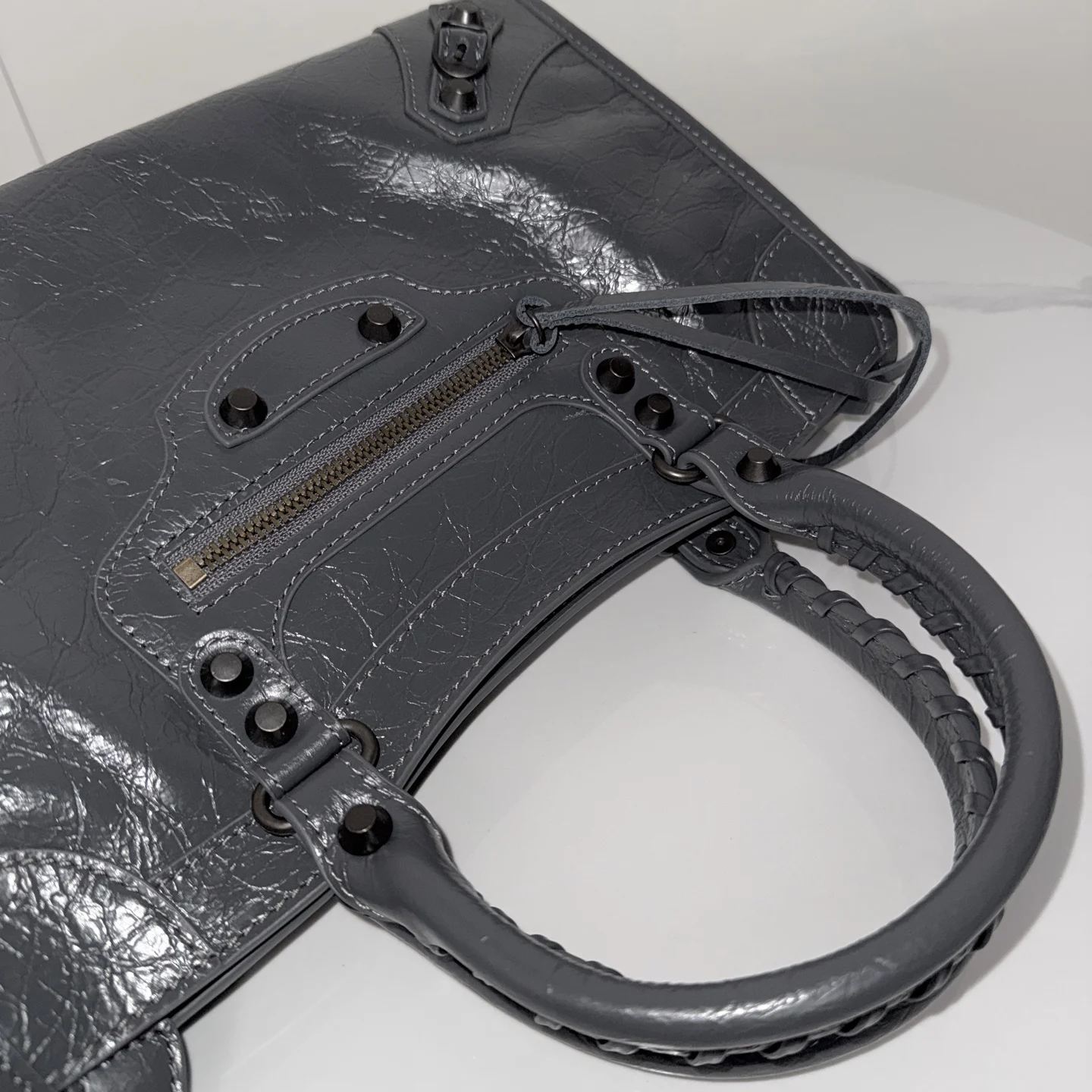 .𝗕𝗔𝗟𝗘𝗡𝗖𝗜𝗔𝗚*𝗟𝗘 𝗖𝗜𝗧Y.巴黎世家 20迭代新版机车包 city 深灰色中号 黑铜钉 . 铜色拉链)黑铜色铆钉闪着细碎光泽 自带故事感 中号尺寸size: 底长30x高20x宽13cm