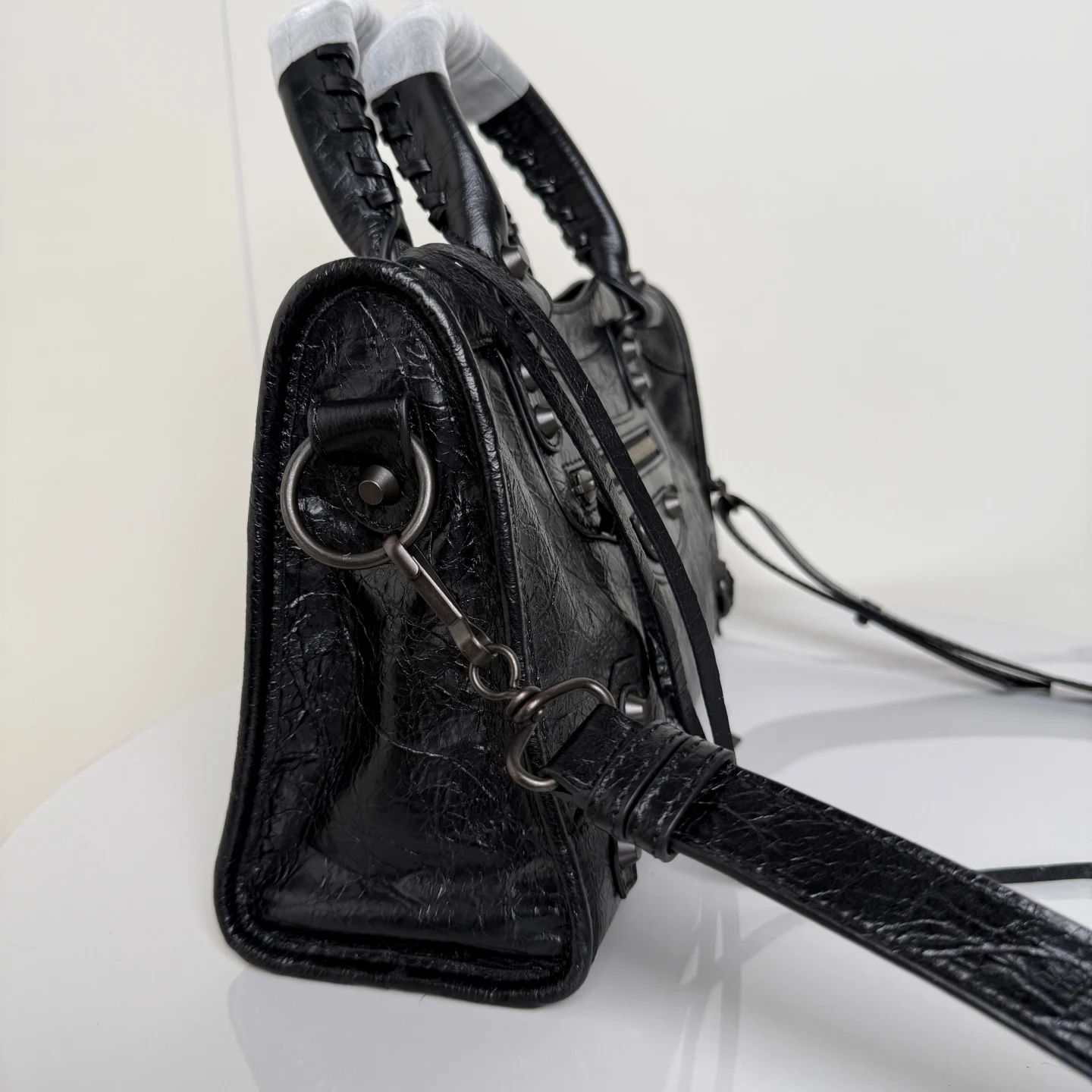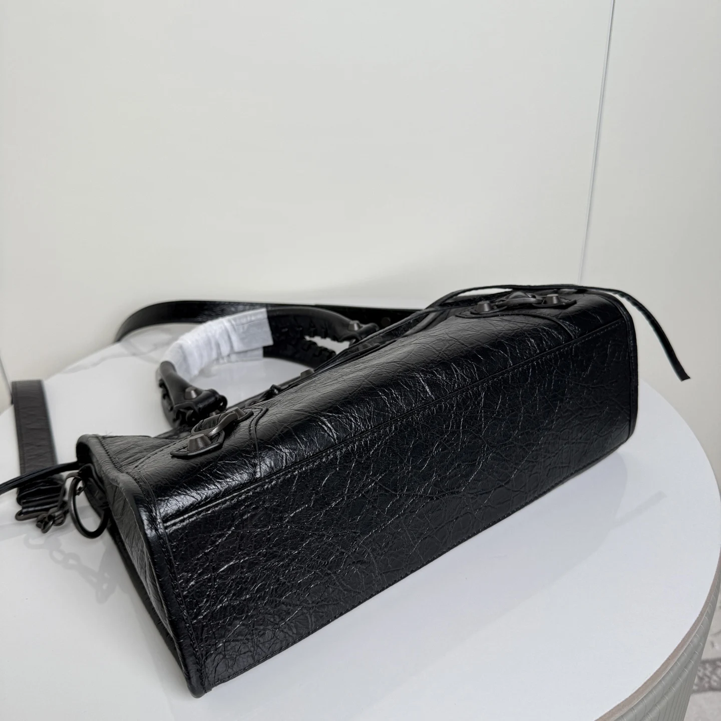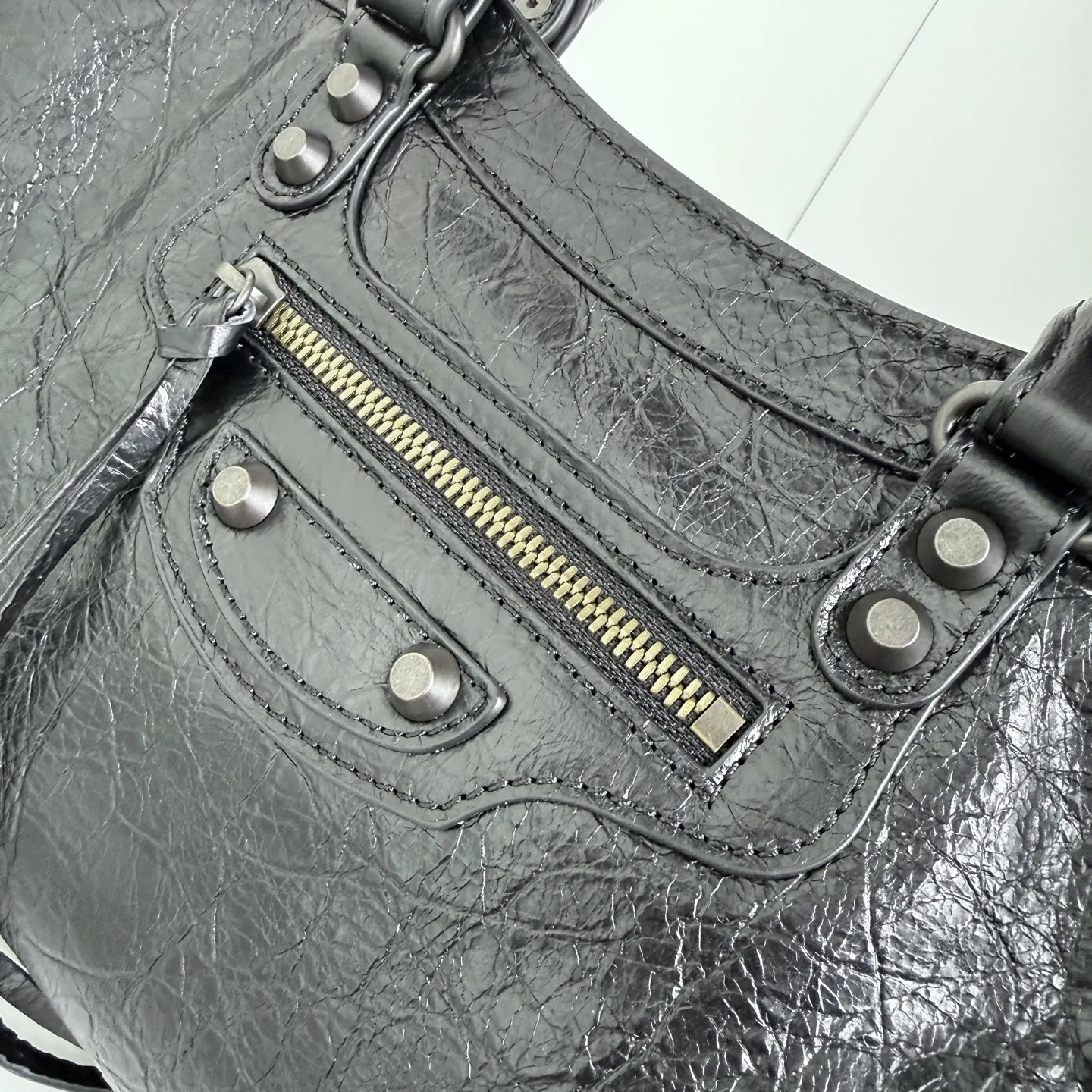 .𝗕𝗔𝗟𝗘𝗡𝗖𝗜𝗔𝗚*𝗟𝗘 𝗖𝗜𝗧Y.巴黎世家 20迭代新版机车包 city 黑色中号 黑铜钉 . 铜色拉链)黑铜色铆钉闪着细碎光泽 自带故事感 中号尺寸size: 底长30x高20x宽13cm