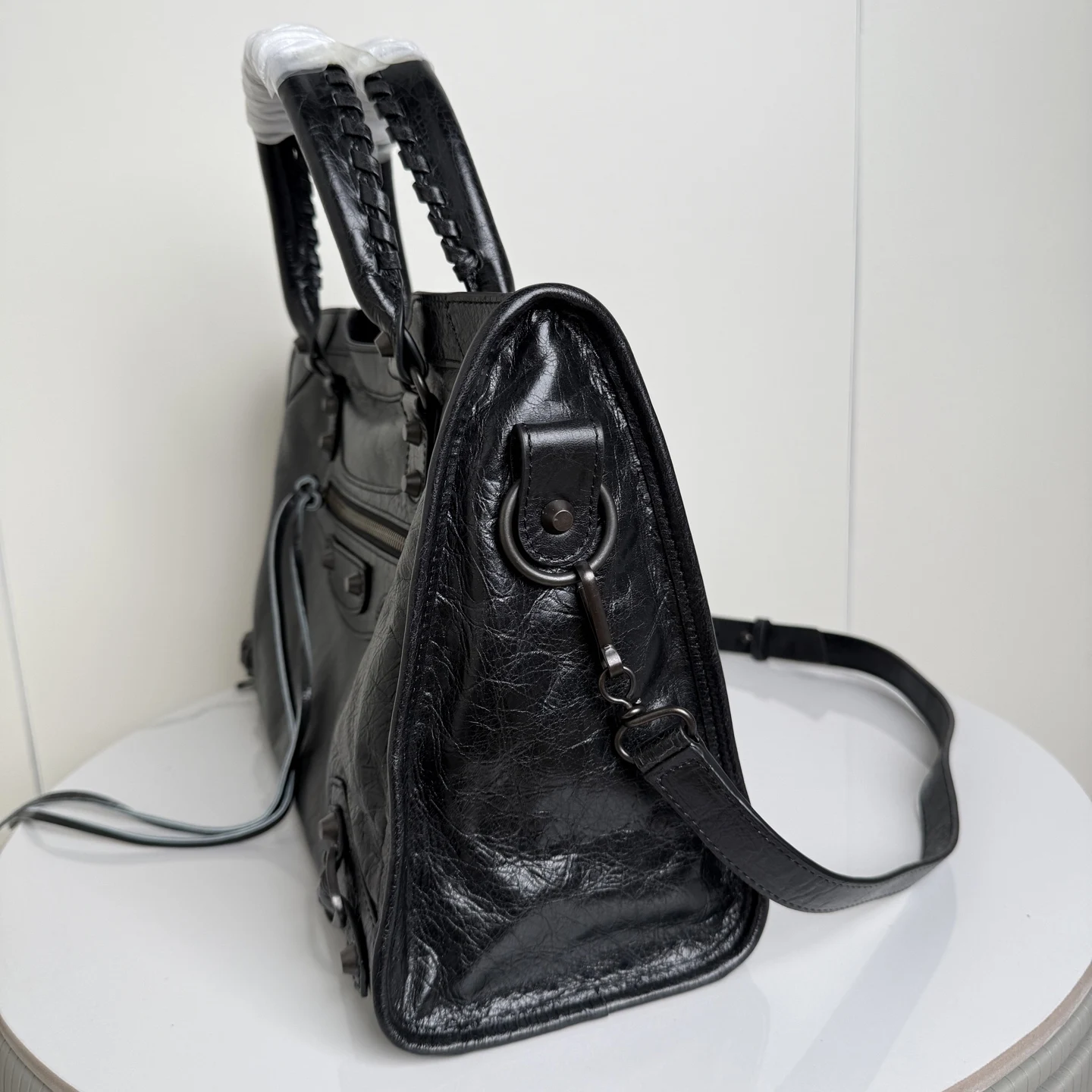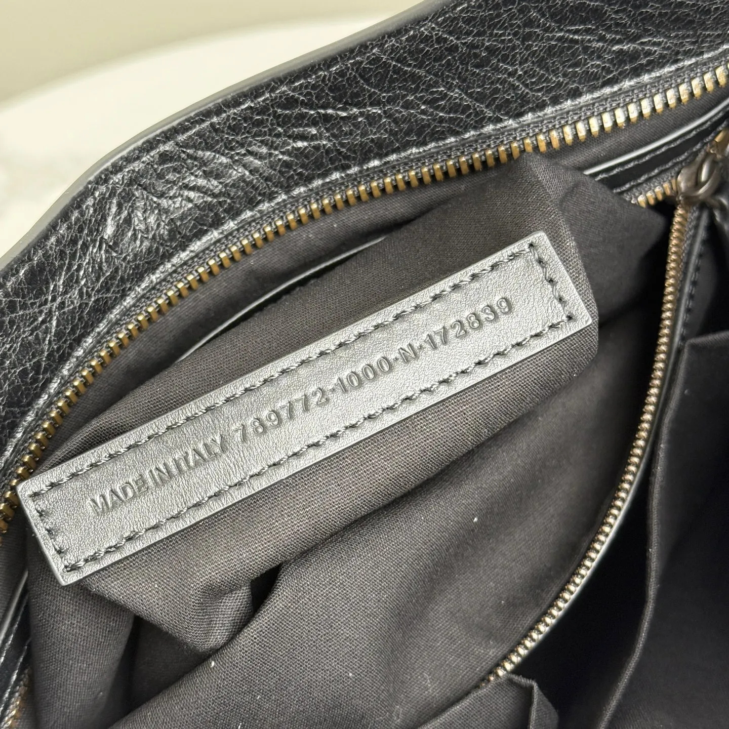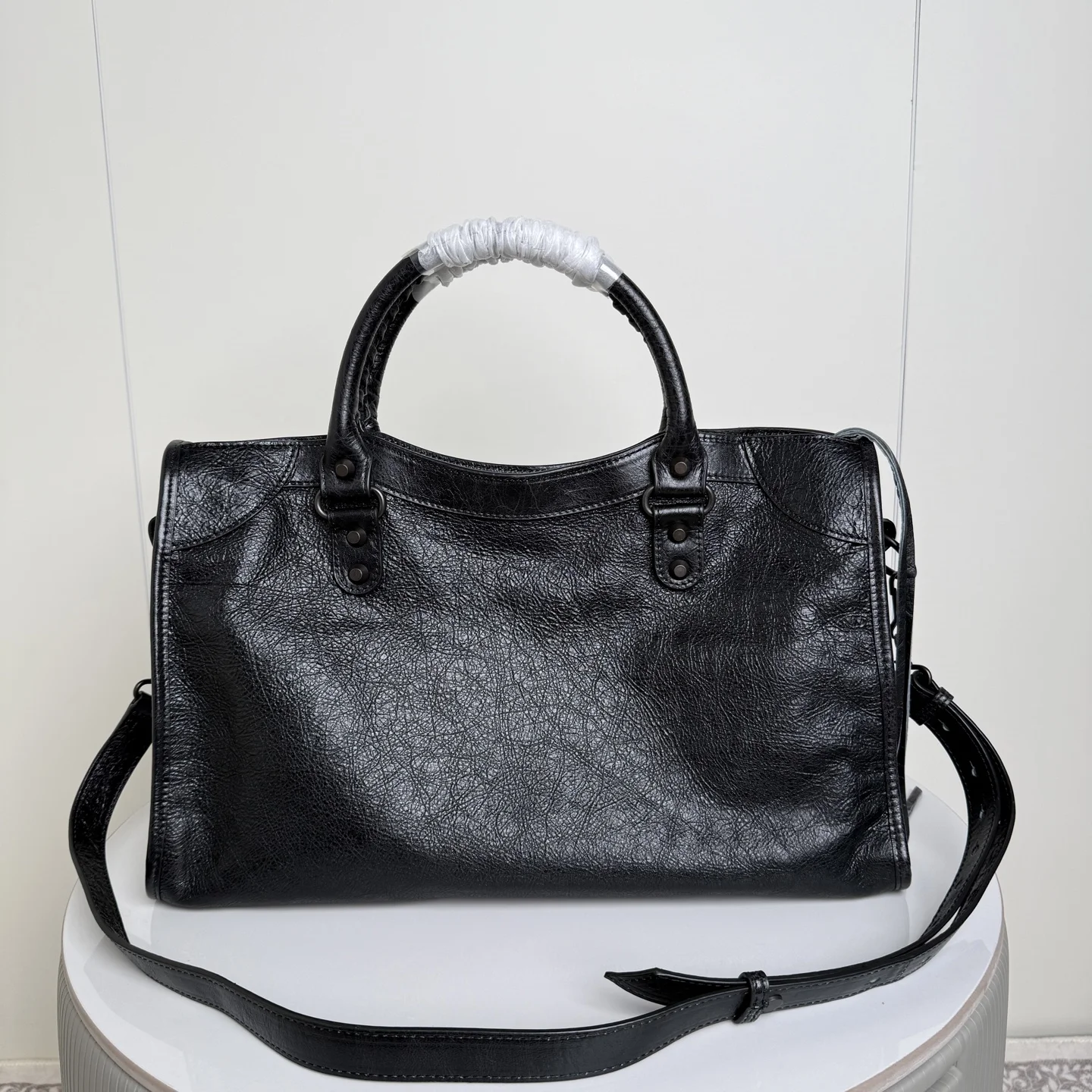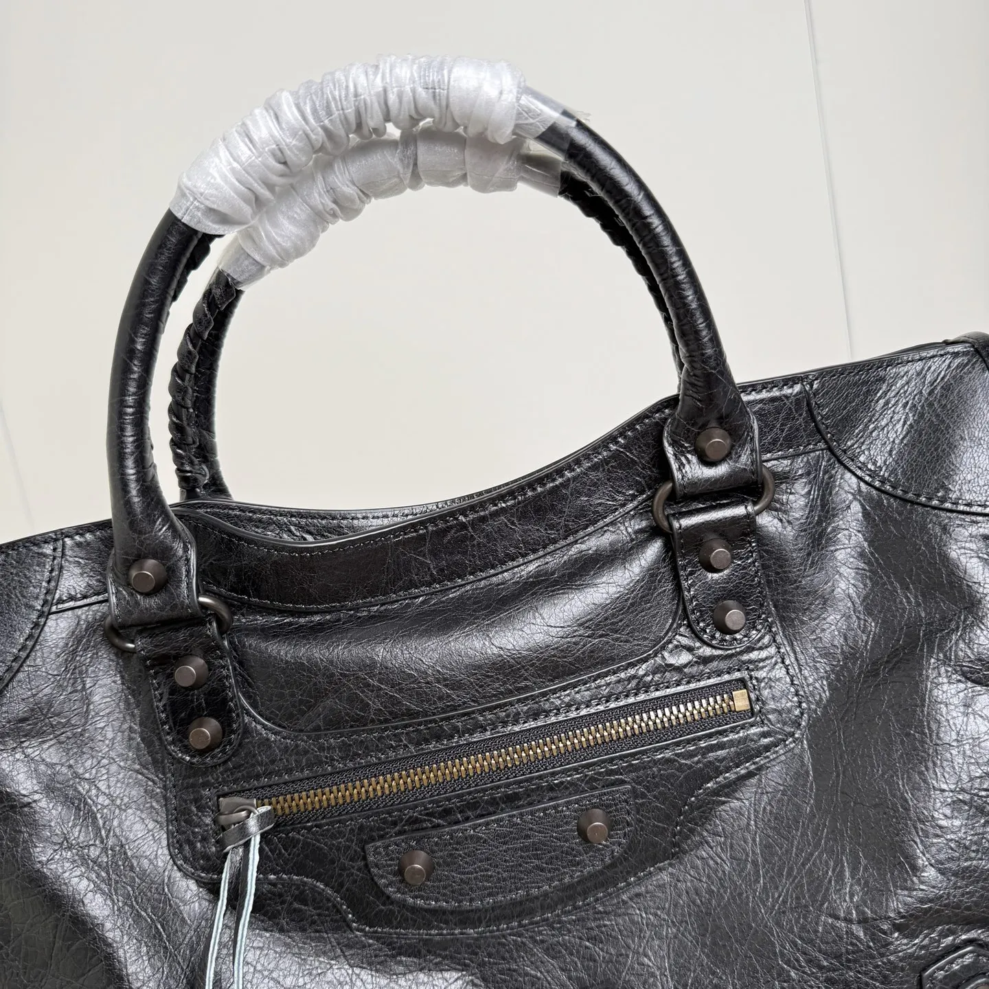 𝗕𝗔𝗟𝗘𝗡𝗖𝗜𝗔𝗚*𝗟𝗘 𝗖𝗜𝗧Y.巴黎世家 20迭代新版机车包 city 黑色大号 黑铜钉 . 铜色拉链)黑铜色铆钉闪着细碎光泽 自带故事感 大号尺寸满足出行实用满分 无论是通勤还是出街 一挎上就有了独属于自己的酷飒姿态.原厂品质 尺寸size: 底长38x高24x宽15cm