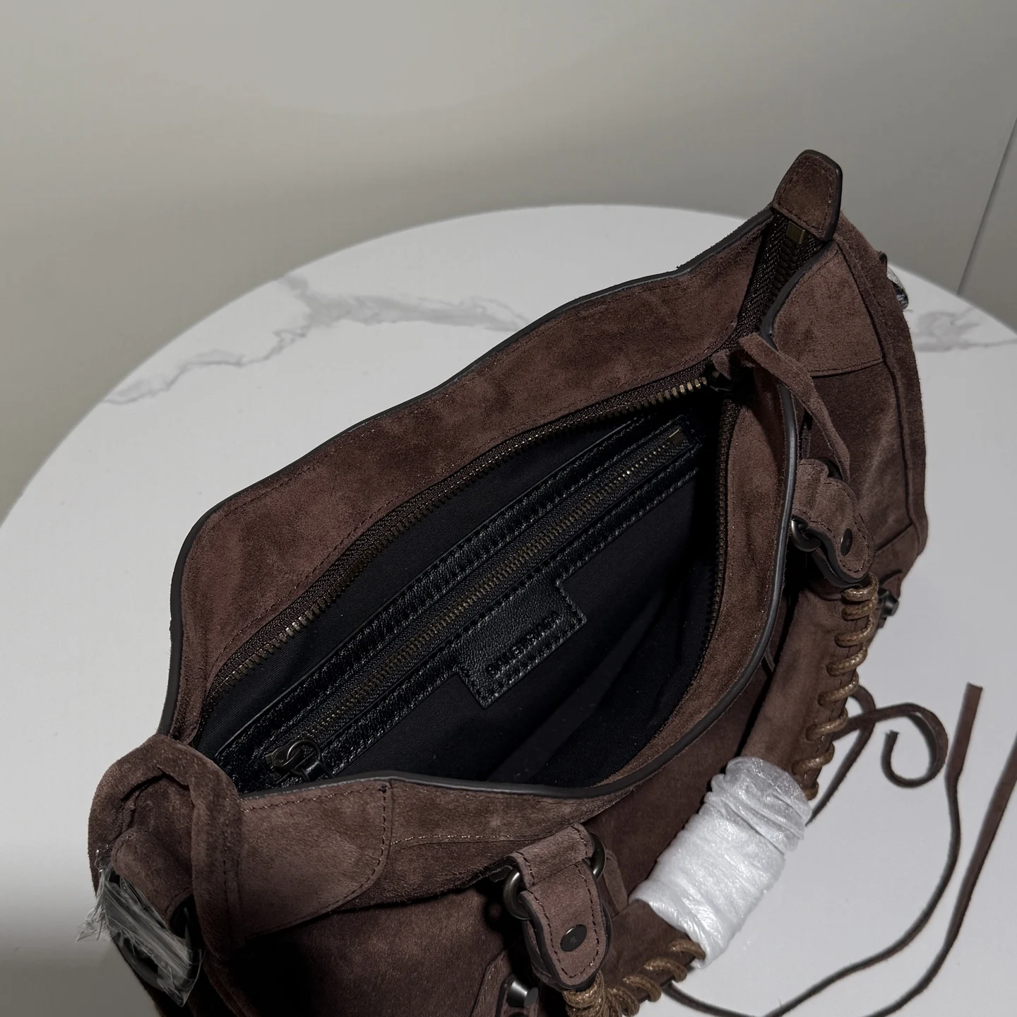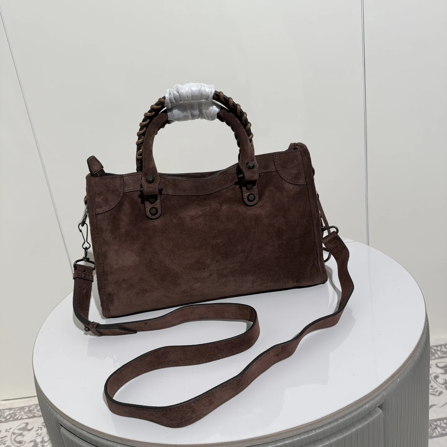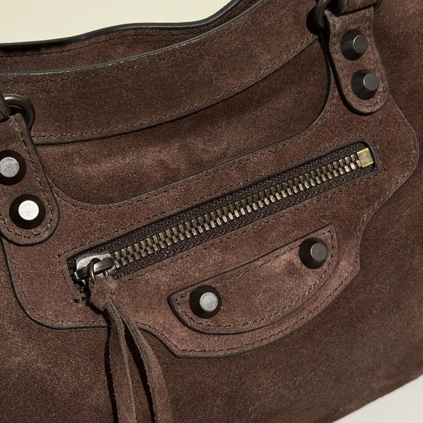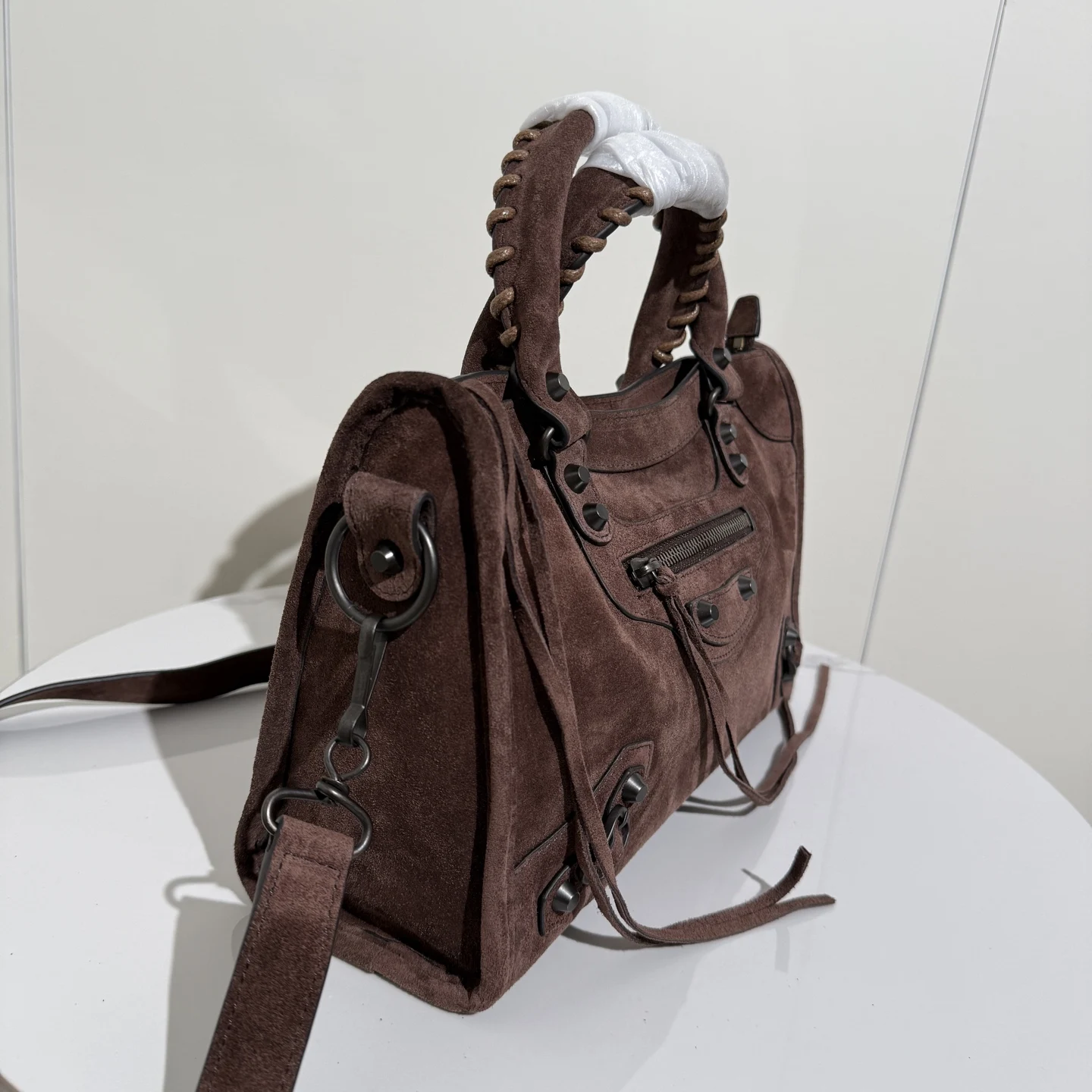 𝐁𝐚𝐥𝐞𝐧𝐜𝐢𝐚𝐠𝐚 Le City 新款 麂皮款磨砂驼色机车包挖到宝啦