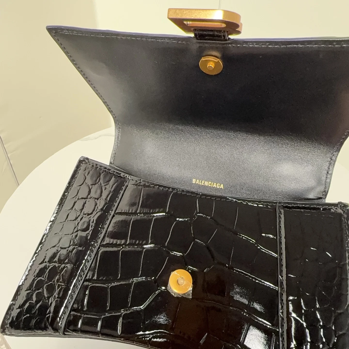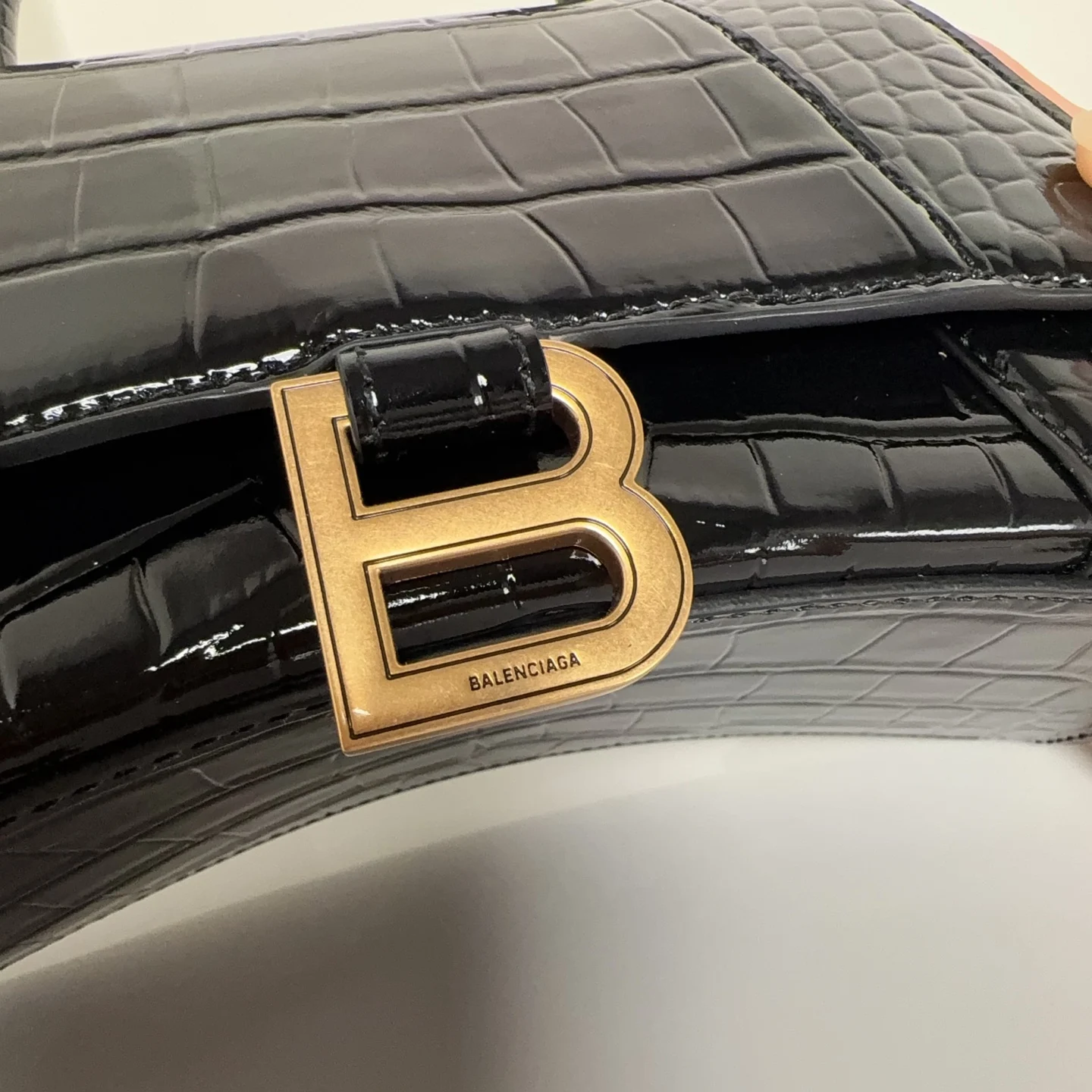 S码大号23cm 鳄鱼黑配金扣 只做好品质Balenciag* 巴黎.世家 经典款沙漏包.独特的标志性弧线形状造型极具辨识度 一眼就让人眼前一亮呀超炫酷 外观呈现一轮半月状上坠一个金属B形拉环牛皮质感也非常感人非常有腔调 内里进口羊皮细腻柔软的质感 手拎斜挎都好看到爆 绝对是女神们的最爱 容量亲测 手机 零包 粉饼 口红 充电宝 钥匙 小包纸巾 都是可以轻松装入.size.尺寸 23x10x24cm 货号188001