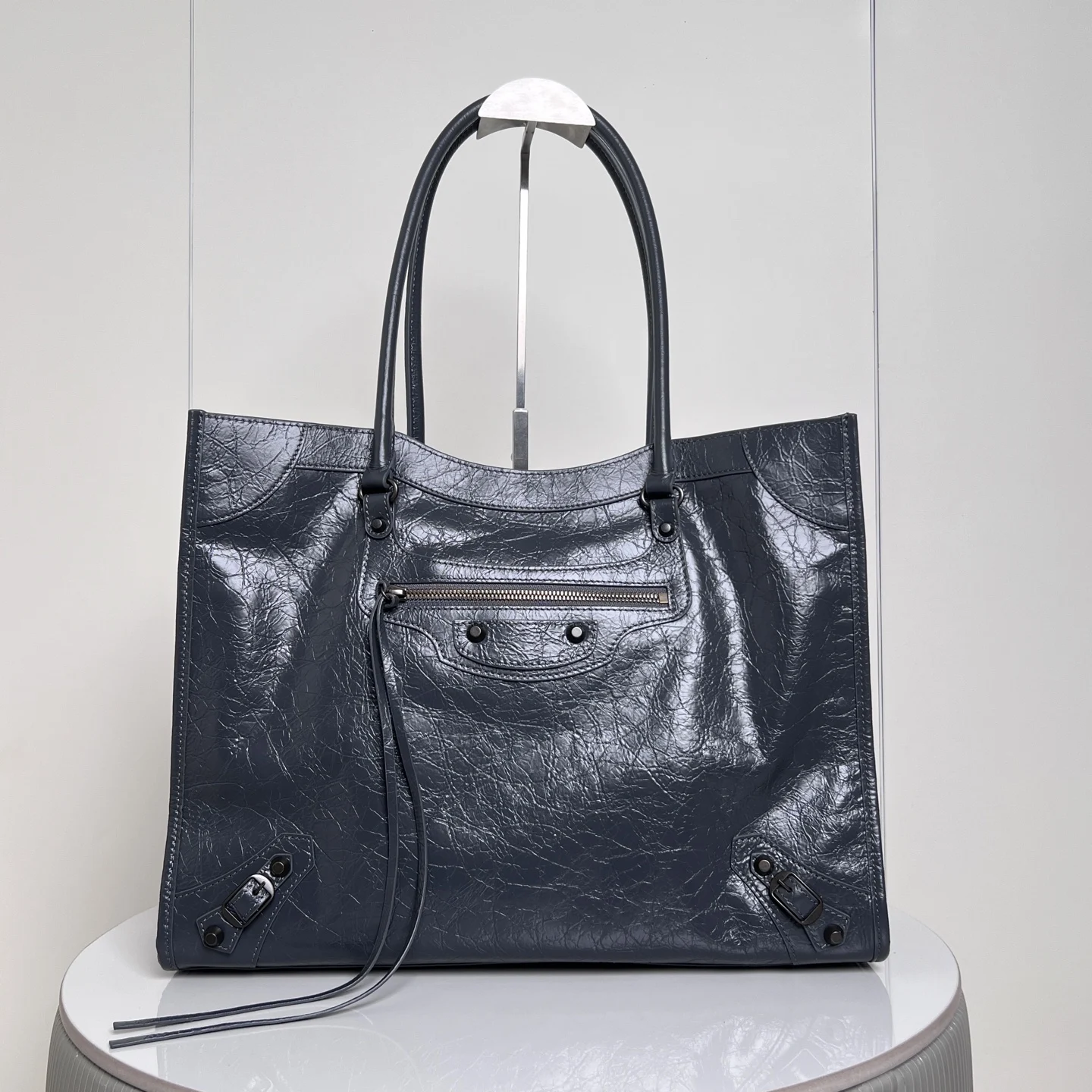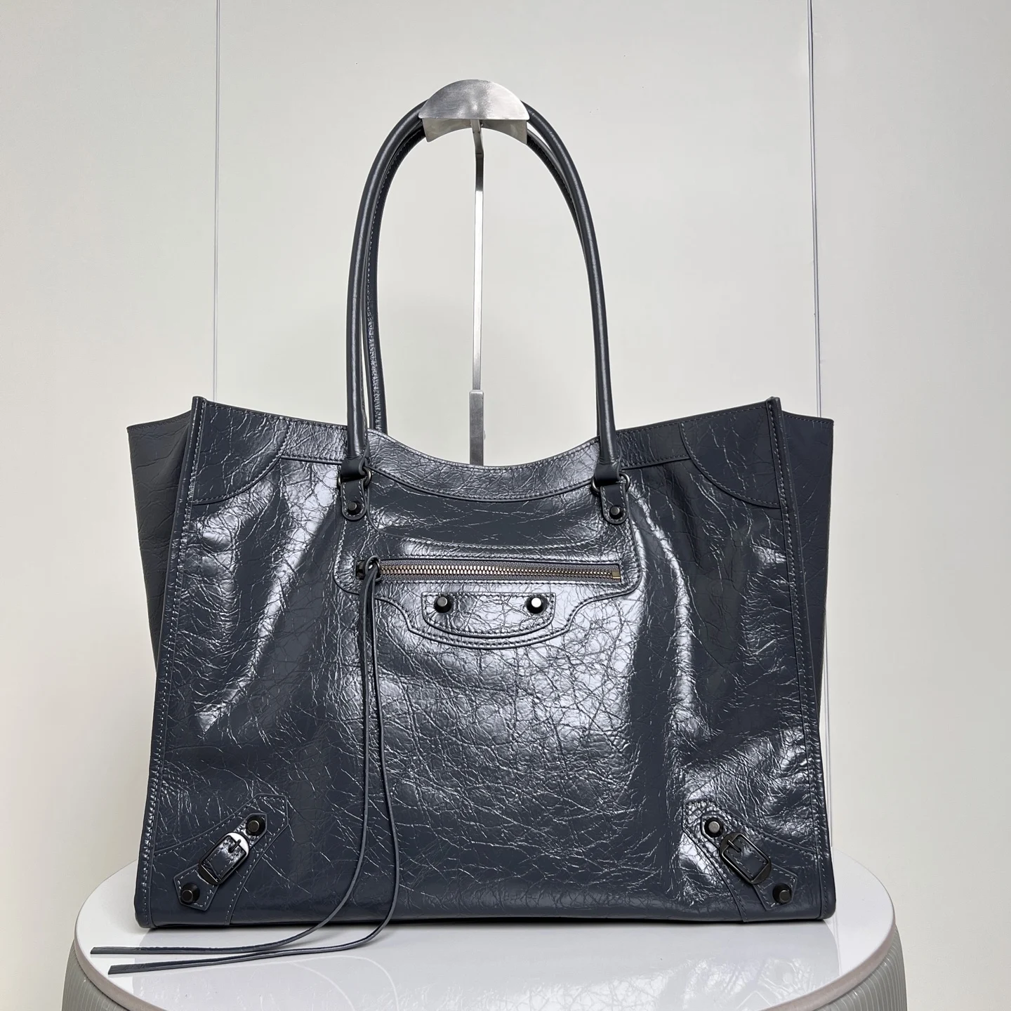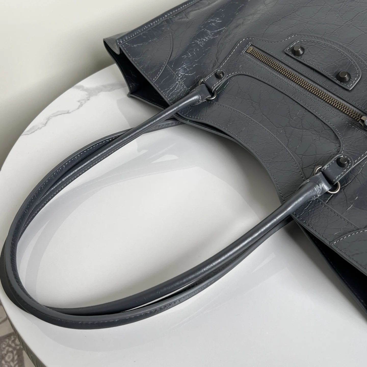 𝐁𝐚𝐥𝐞𝐧𝐜𝐢𝐚𝐠𝐚 Le City机车 竖版托特包 灰色