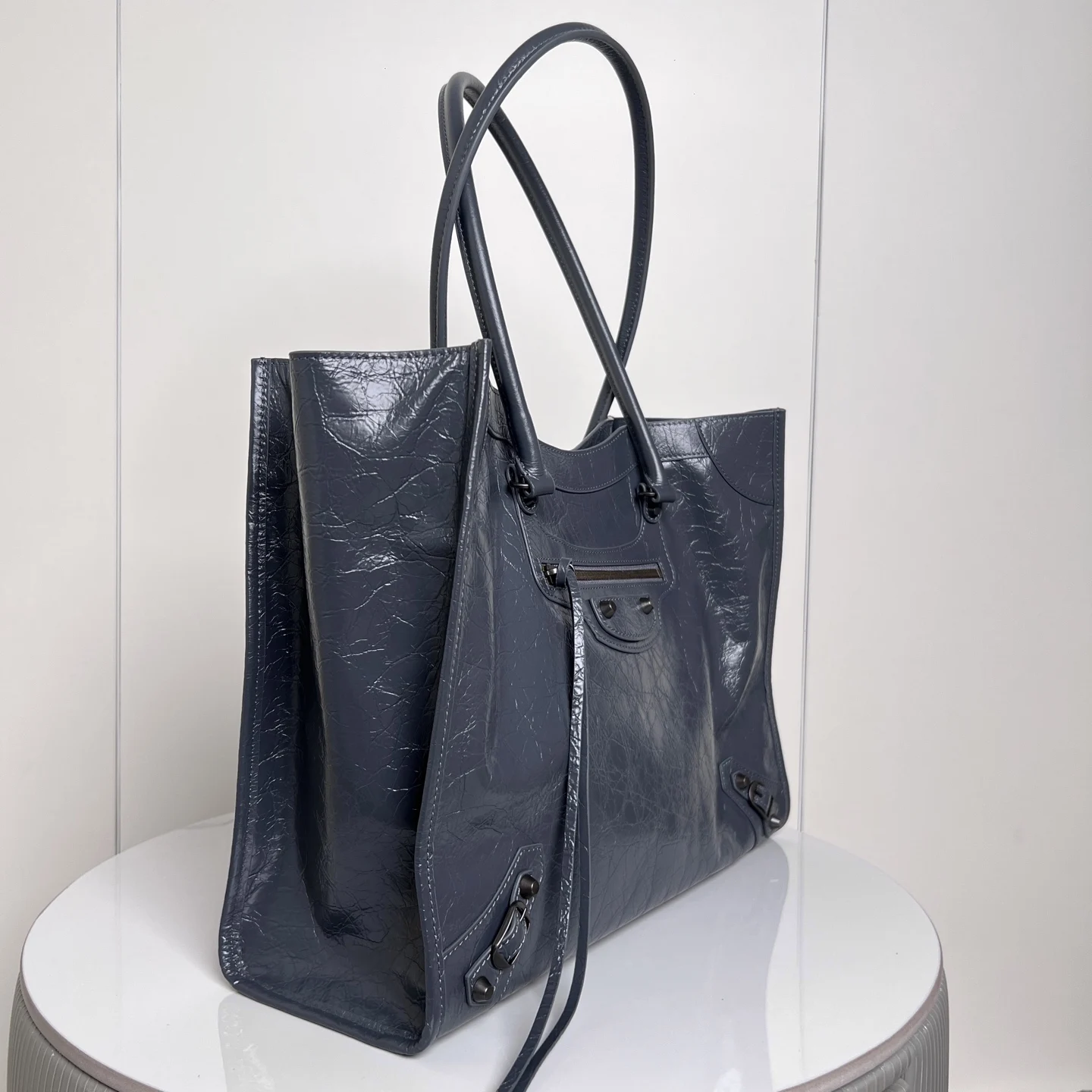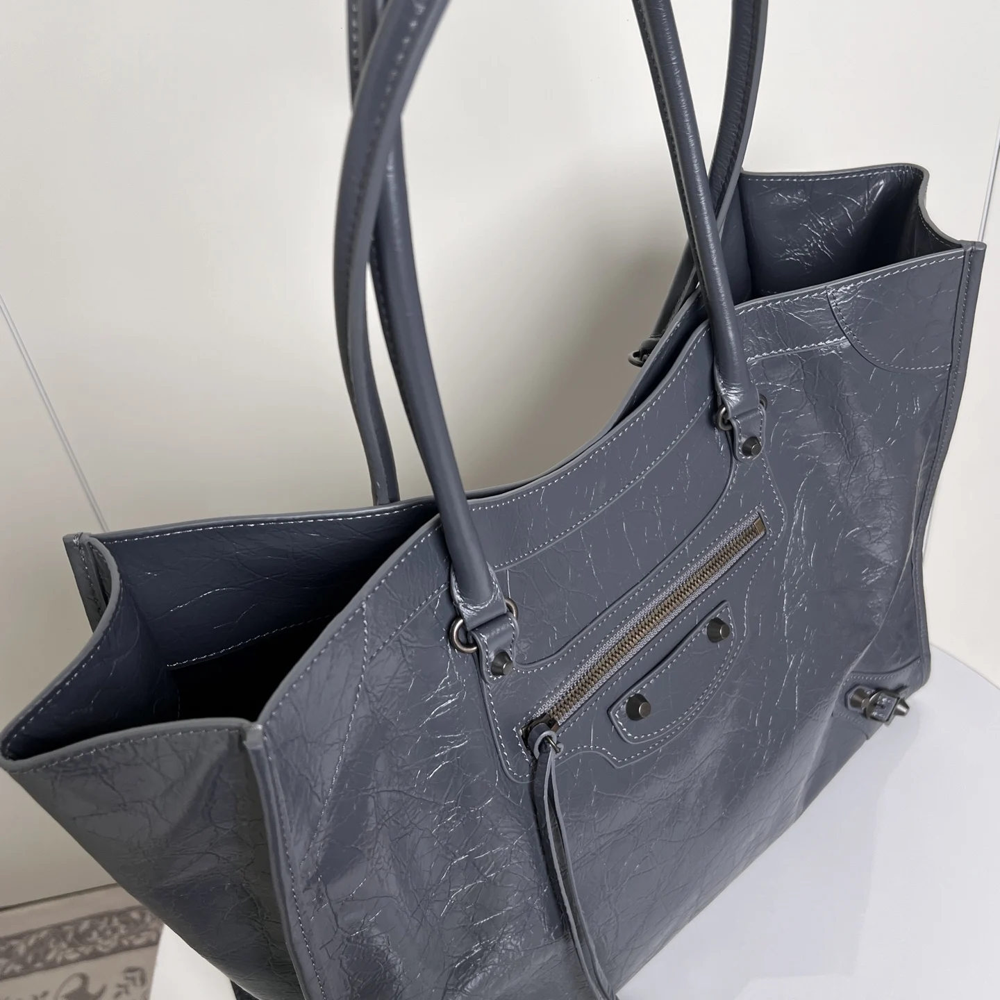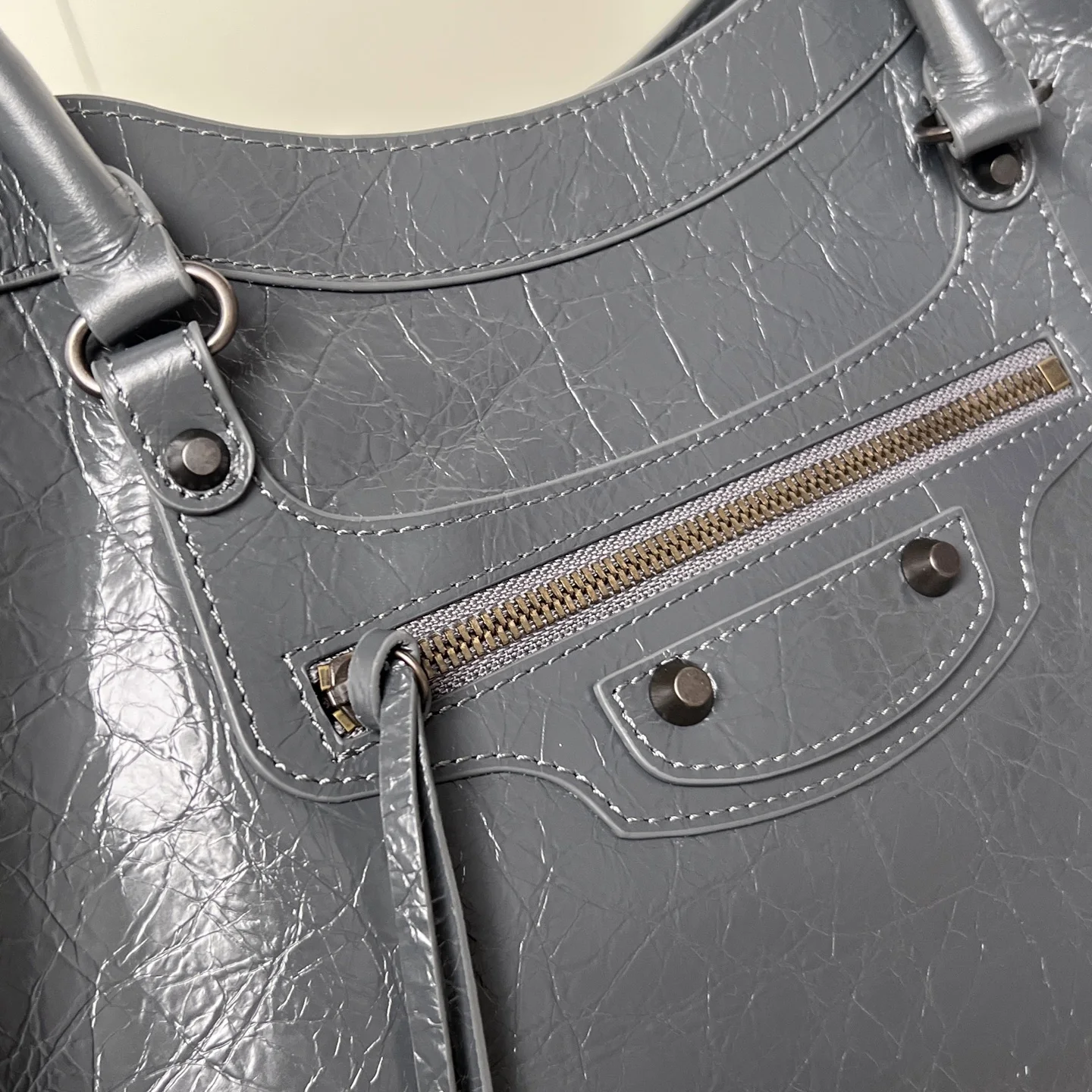 𝐁𝐚𝐥𝐞𝐧𝐜𝐢𝐚𝐠𝐚 Le City机车 竖版托特包 灰色