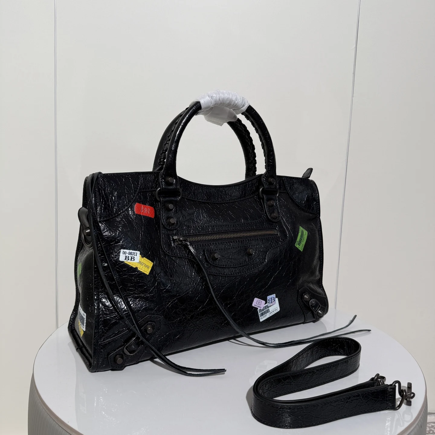 Balenciaga Le city20秋冬系列 贴饰标签印花经典机车风格搭配一起 真的太酷啦 时尚不撞款 非常个性的包包 大号尺寸满足出行实用满分