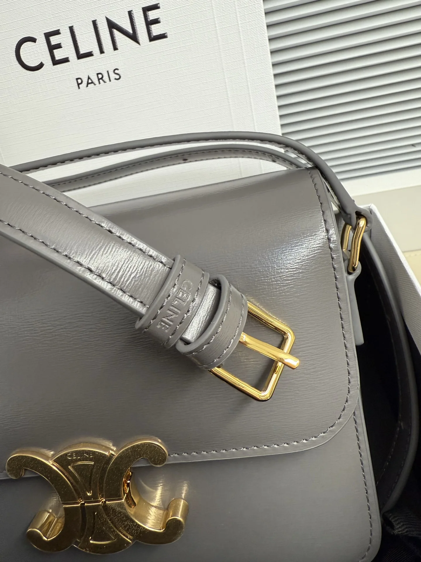 这款采用缎面小牛皮制成的TRIOMPHE小号手袋配有一条可调节的真皮肩带和TRIOMPHE专属搭扣TRIOMPHE 黄铜锁扣