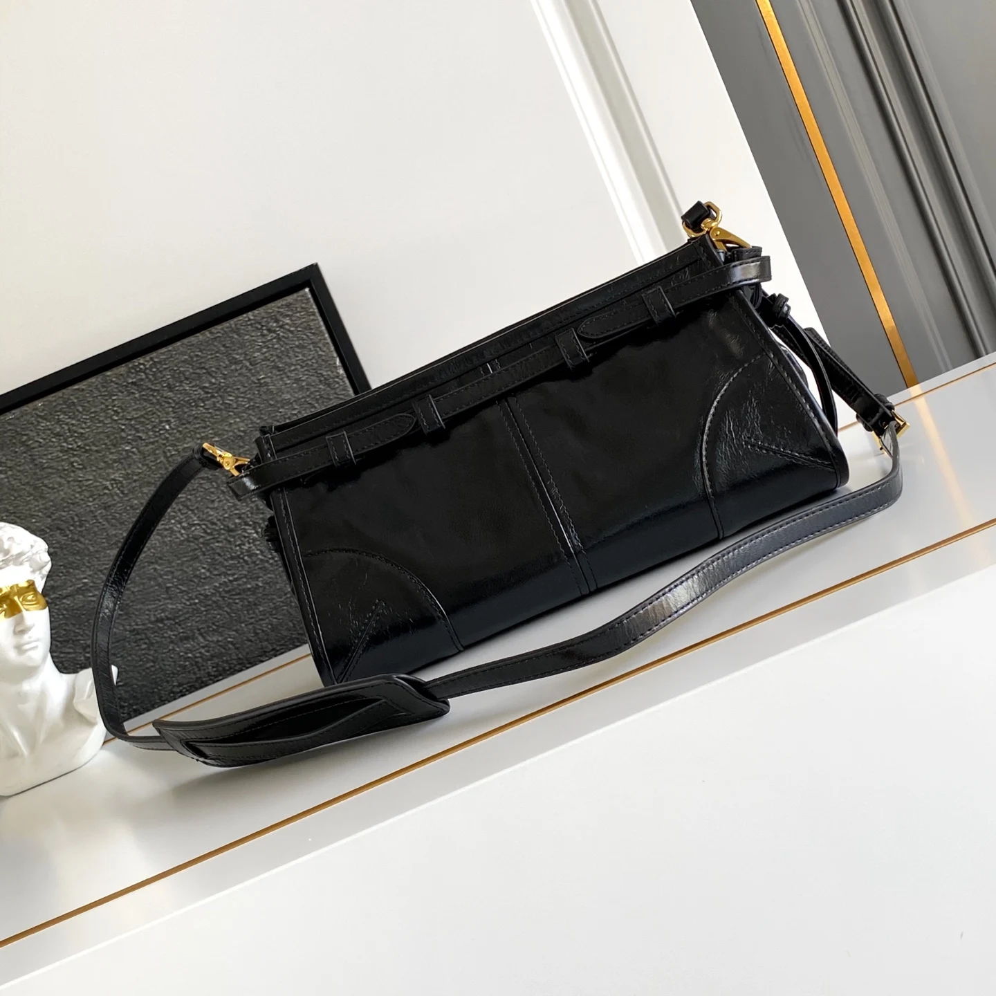 这款斜挎包采用进口油腊皮 油亮的色泽散发出古典气息 配有一条可拆卸调节的长肩带 方便肩背和斜跨 容量空间非常大 巨巨好用 绝对是时商达人们的必备款 赶紧把这款复古格调斜跨包带回家吧