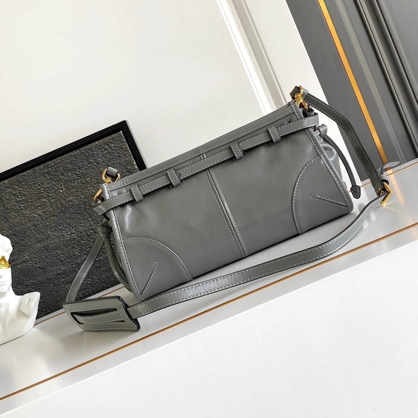这款斜挎包采用进口油腊皮 油亮的色泽散发出古典气息 配有一条可拆卸调节的长肩带 方便肩背和斜跨 容量空间非常大 巨巨好用 绝对是时商达人们的必备款 赶紧把这款复古格调斜跨包带回家吧