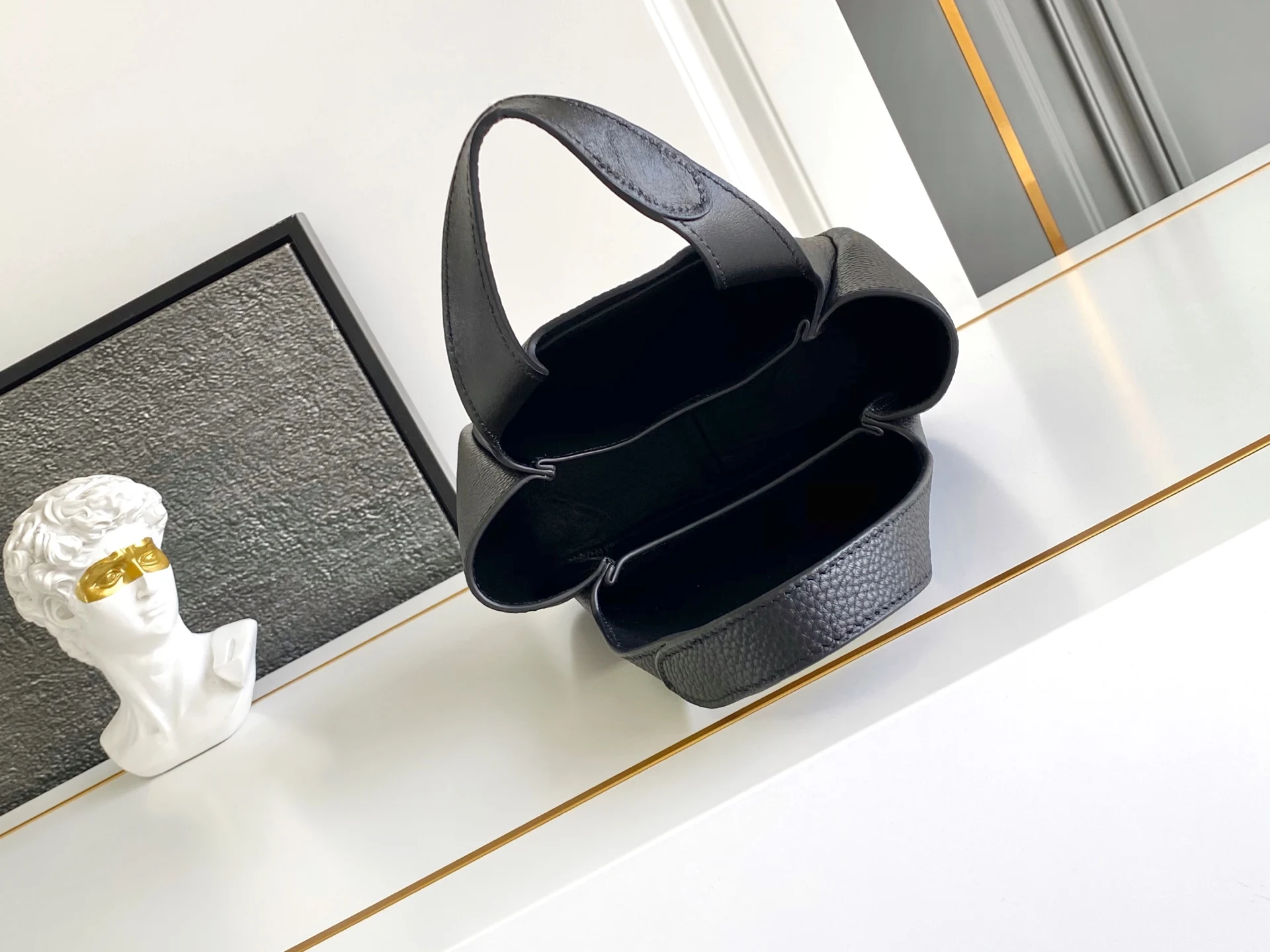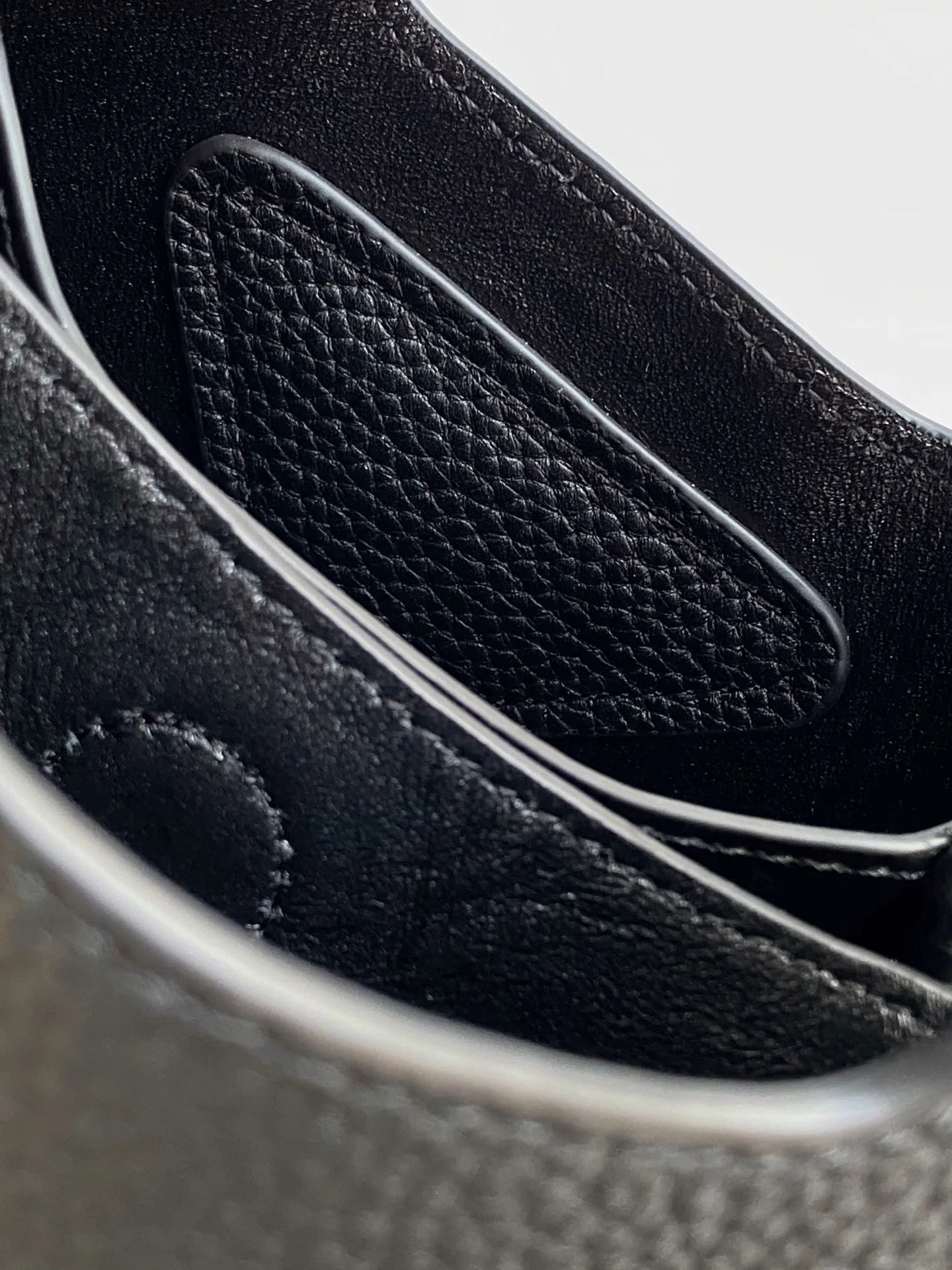 金色五金 这款皮革迷你手袋采用解构廓形 以反向缝线诠释精美设计 打造柔和圆润的时尚造型 正面饰有金属字母徽标 更添轻盈 现代和精致格调 可当腋下包经典传承与时代潮流完美融合的手袋 仙女必备