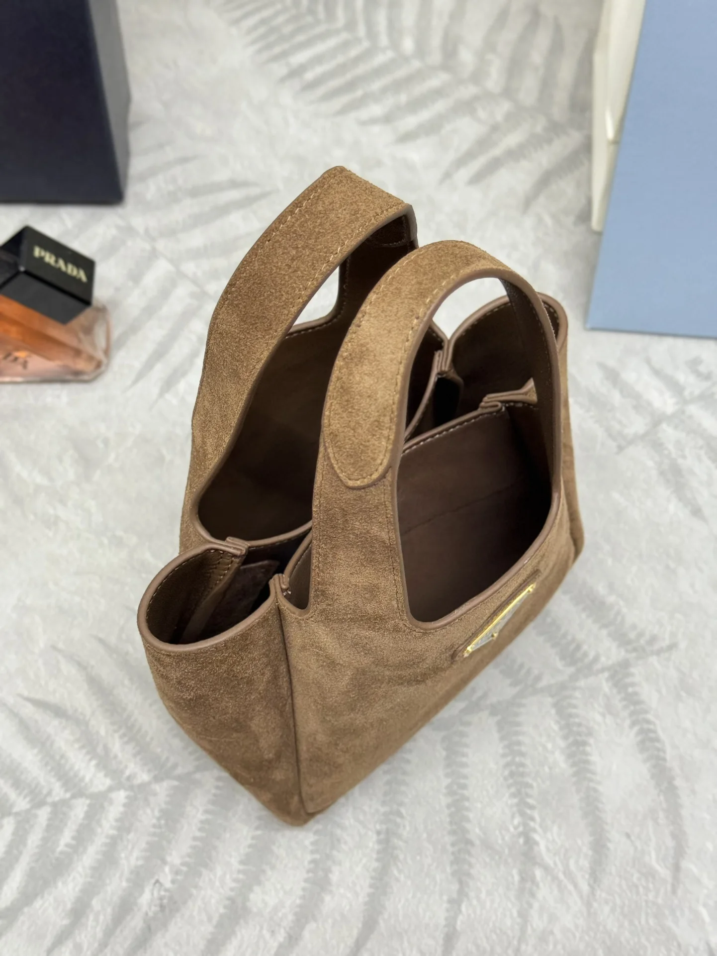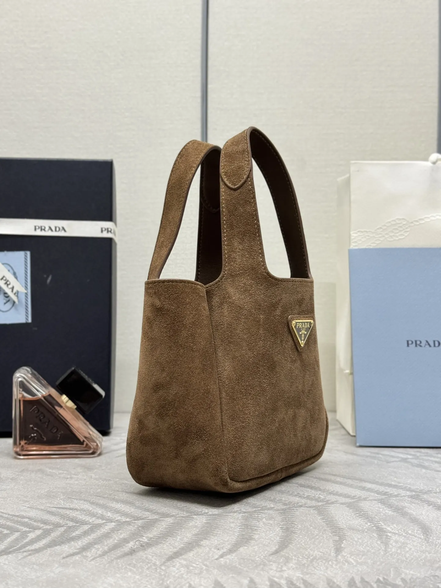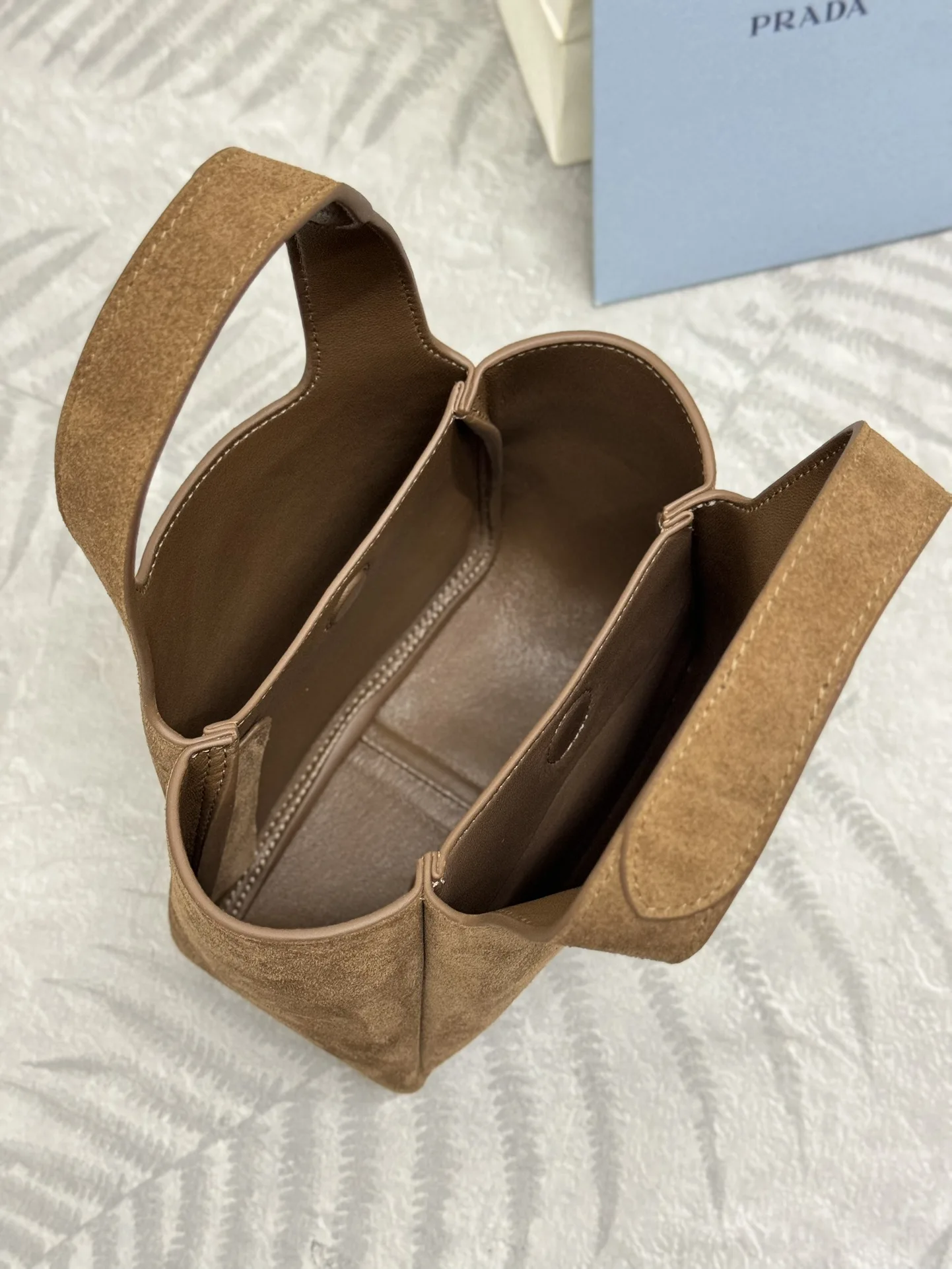 普拉达1BA349 绒面麂皮 mini菜篮子 水桶包 单肩背包