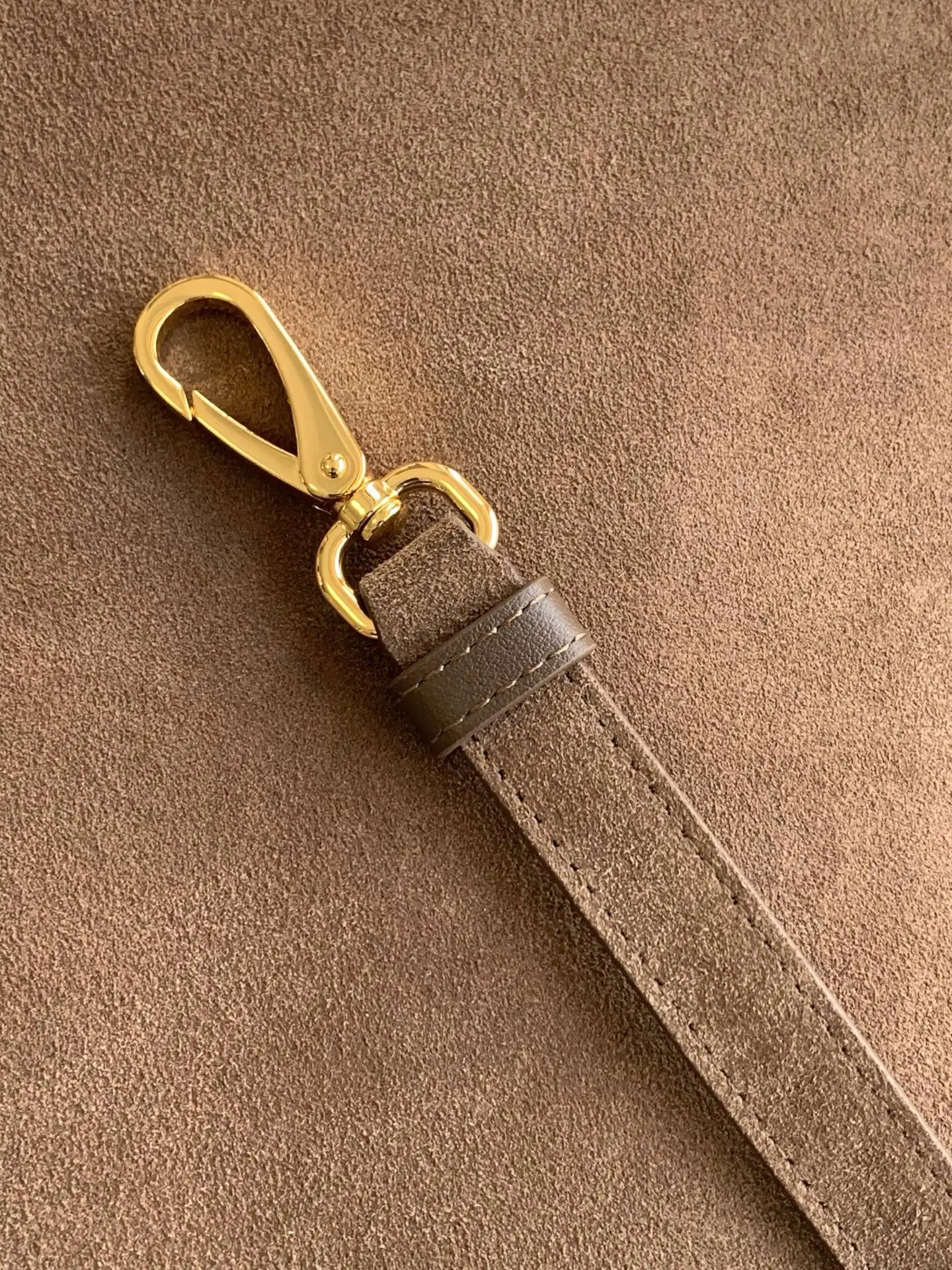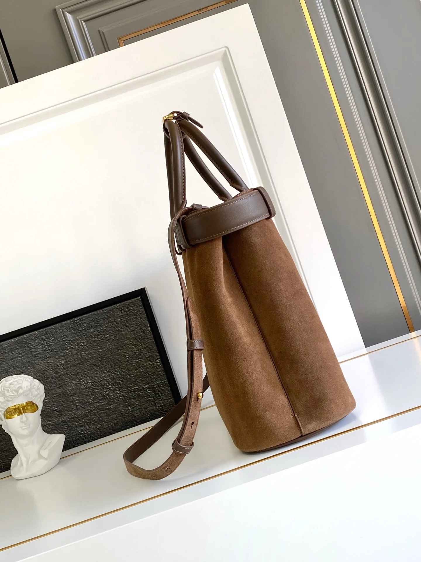 这款手提女包采用进口内配进口绒皮 磨砂皮 内配进口羊皮 简洁线条与精致素交织 诠释了优雅与功能兼备的设计美学 既体现了现代简约的风格 配以可替换束带和可拆卸可调节的长肩带 为整个造型增添独特的个性点缀 现代百搭 喜欢的宝宝们 赶紧入手吧