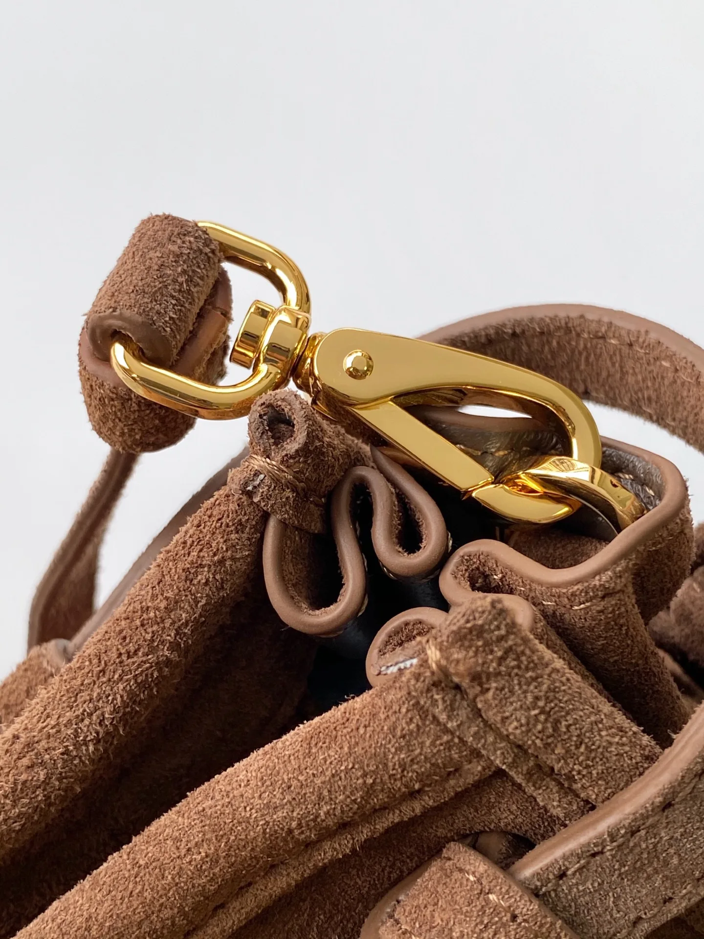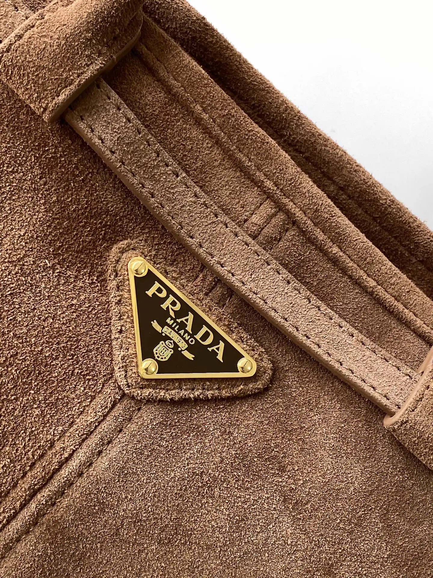高级麂皮配金色五金标志性三角徽标配有长肩带可手提单肩或者斜挎时髦感直接拉满设计随性简约且精致又实用一款复古风格包包合适日常出行上身真的又酷又飒复古时髦的即视感