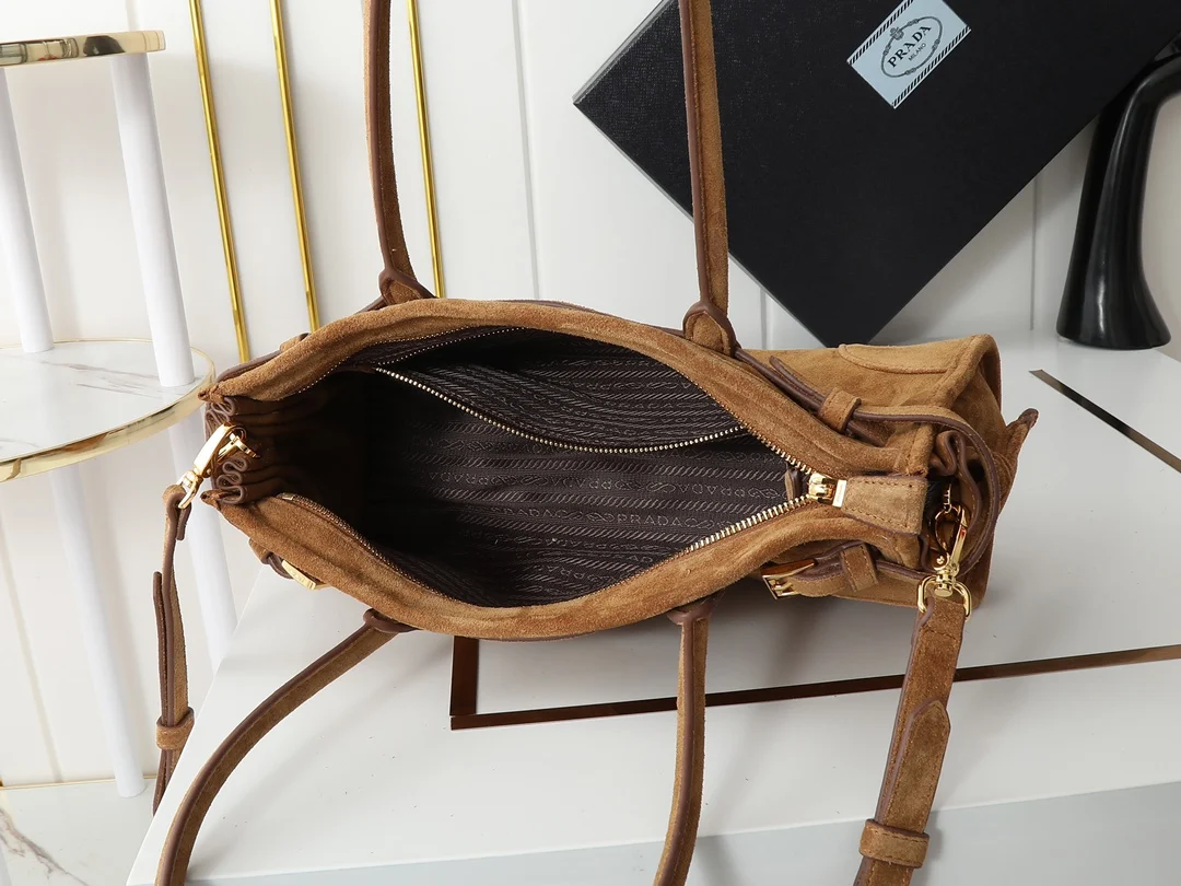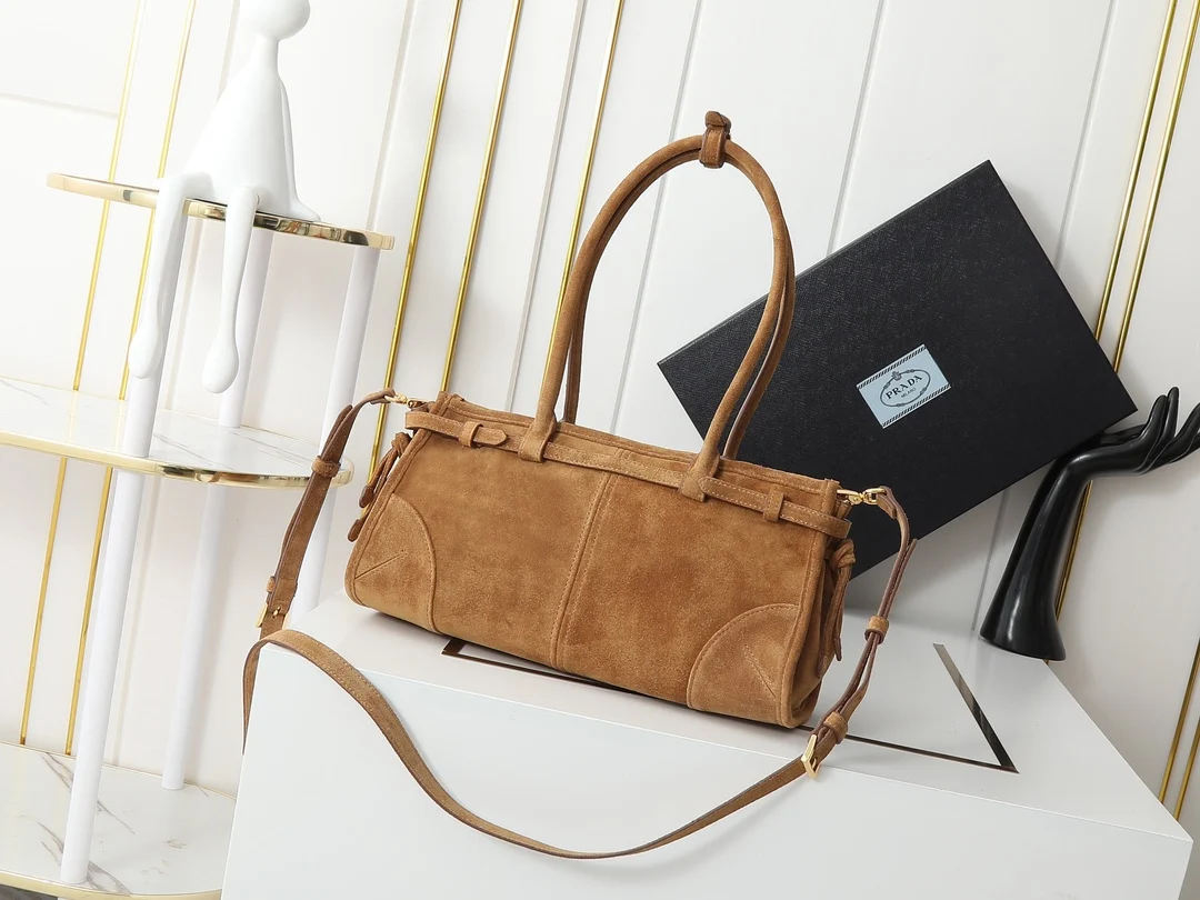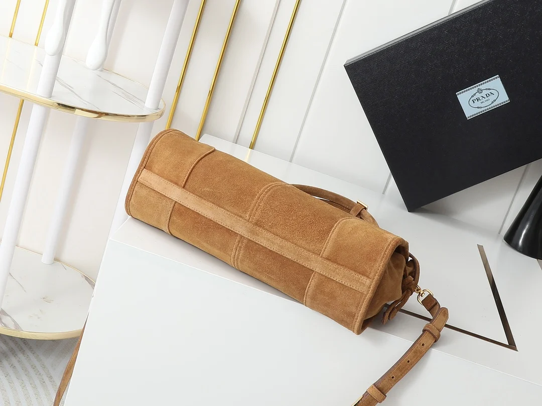 高级麂皮配金色五金标志性三角徽标配有长肩带可手提单肩或者斜挎时髦感直接拉满设计随性简约且精致又实用一款复古风格包包合适日常出行上身真的又酷又飒复古时髦的即视感